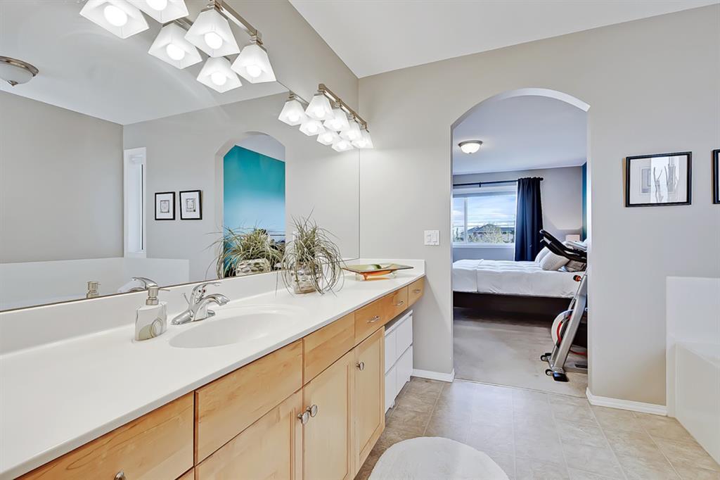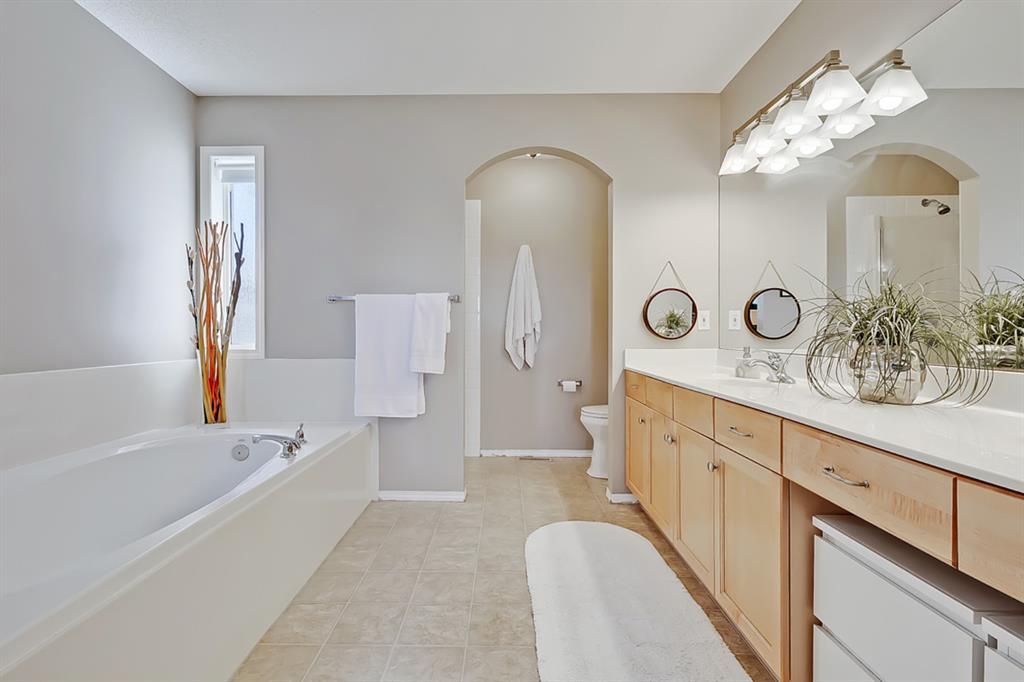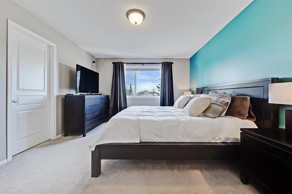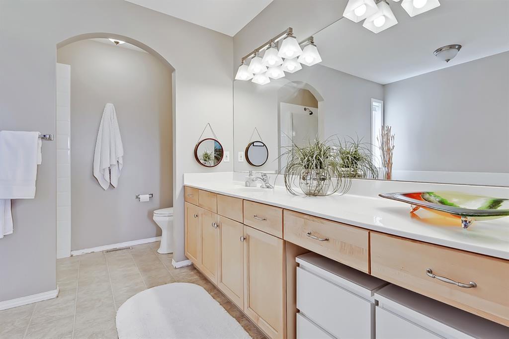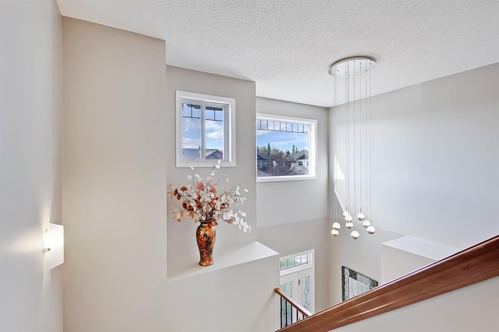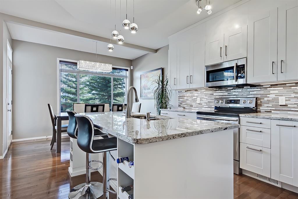 Gorgeous design by Crossley Custom Homes located in a CUL-DE SAC. Loads of upgrades done over the last 2 years including: NEW ROOF (8 month's ago), totally renovated stunning kitchen, NEW cabinets, pantry, premium GRANITE counter tops, glass back splash, huge island with eating bar, STAINLESS STEAL appliances, all of the main floor has HIGH end LIGHTING fixtures, WOOD window coverings, new SUMP PUMP, GARAGE DOOR, just installed. The spacious two- storey foyer and the wide contemporary open design - this home has some beautiful "estate" finishing. The main floor has gleaming hardwood floors. As a custom home, there's designed archways and art niches around. 9' foot ceilings, the main floor great room has a phenomenal fireplace feature detailed with stone and a custom built book case around it with windows above to allow for maximum natural light. Large dining area has a garden door leading to a fabulous large sunny deck with NEW METAL RAILING, overlooking a patio & beautiful yard with fire pit and enclosed dog run. On the second storey there are THREE generous sized bedrooms with a master bedroom and a 5 piece ensuite with large soaker tub and stand up shower. The basement is also finished with NEW Carpet and renovated 3 piece Bathroom, family room and a 4th bedroom, also a convenient DEN in a quiet corner, ideally for working from home. Ready to move in and enjoy knowing the large maintenance items have already been taken care of. Steps away from the C-TRain, walking paths the huge YMCA, shoppings, restaurants and a REC facility offering tennis courts, splash park, lake access and more. Check out the 3D walk-through, and book your private tour today. (id:22211)