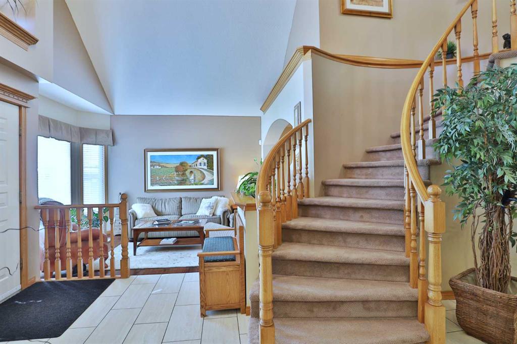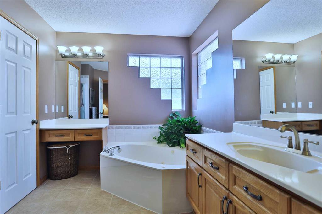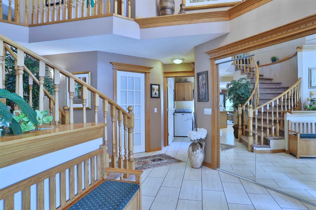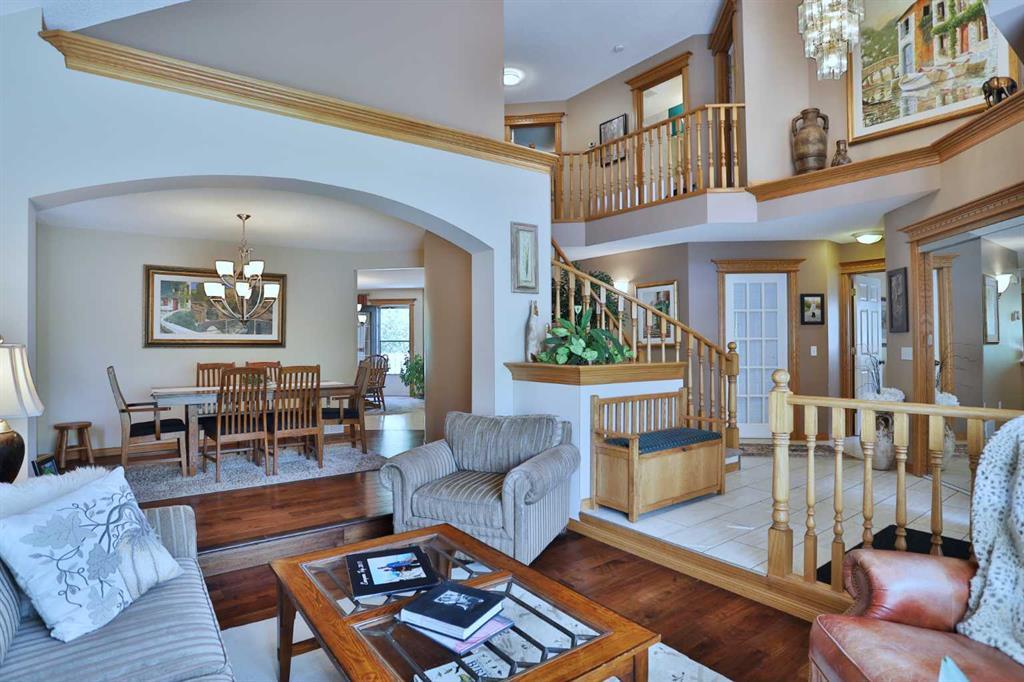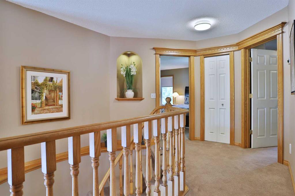 All you have to do is move in & enjoy now that you've found this lovingly maintained home in the highly sought-after golf course community of Hamptons in Calgary's great Northwest. Original owners of this custom-built Sundance Homes two storey walkout, this beautiful 3 bedroom + den home enjoys handscraped hardwood floors & extensive built-ins, oak kitchen with granite counters, rubber roof with 50year warranty & wonderful outdoor living in the private backyard shaded by leafy mature trees. Perfectly designed for both family living & entertaining, you'll love the free-flowing feel of the main floor with its gracious living room with vaulted ceilings & bay window, elegant formal dining room with space for your china hutch, inviting family room with fireplace accented by built-in bookcases & updated kitchen with centre island & tile floors, walk-in pantry & Frigidaire stainless steel appliances including stove with convection oven. Total of 3 bedrooms up - all with walk-in closets, highlighted by the private owners' retreat with built-in cabinets & jetted tub ensuite with glass block windows & separate shower. The unspoiled walkout level - with roughed-in plumbing for another bathroom, offers tremendous potential for future living space...primed & ready for a 4th bedroom, storage & games/rec room. The main floor den has a wall of built-in cabinets & desk making it the ideal space for your home office or study for the kids. Main floor laundry complete with built-in cabinets & Maytag Pet Pro washer & dryer. Backyard is fully landscaped & has a covered patio & dog run. A truly outstanding home in this prime location within walking distance to bus stops & the golf course clubhouse, just minutes to the Hamptons School & community tennis courts, plus quick easy access to all area schools, shopping, Nose Hill Park & downtown. (id:22211)