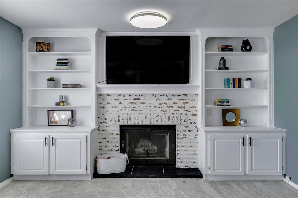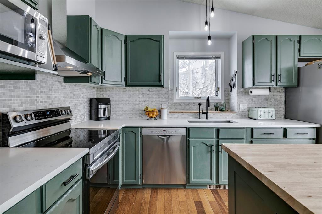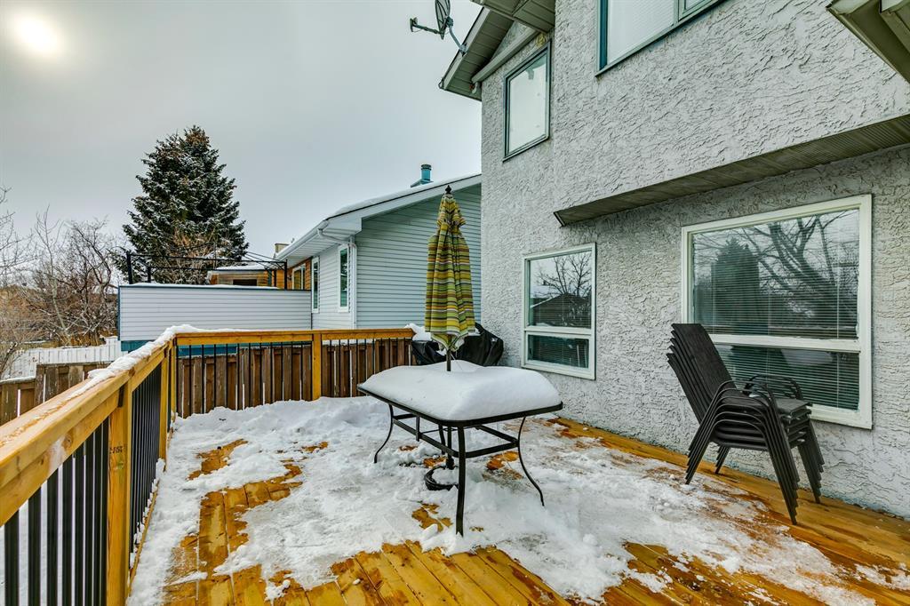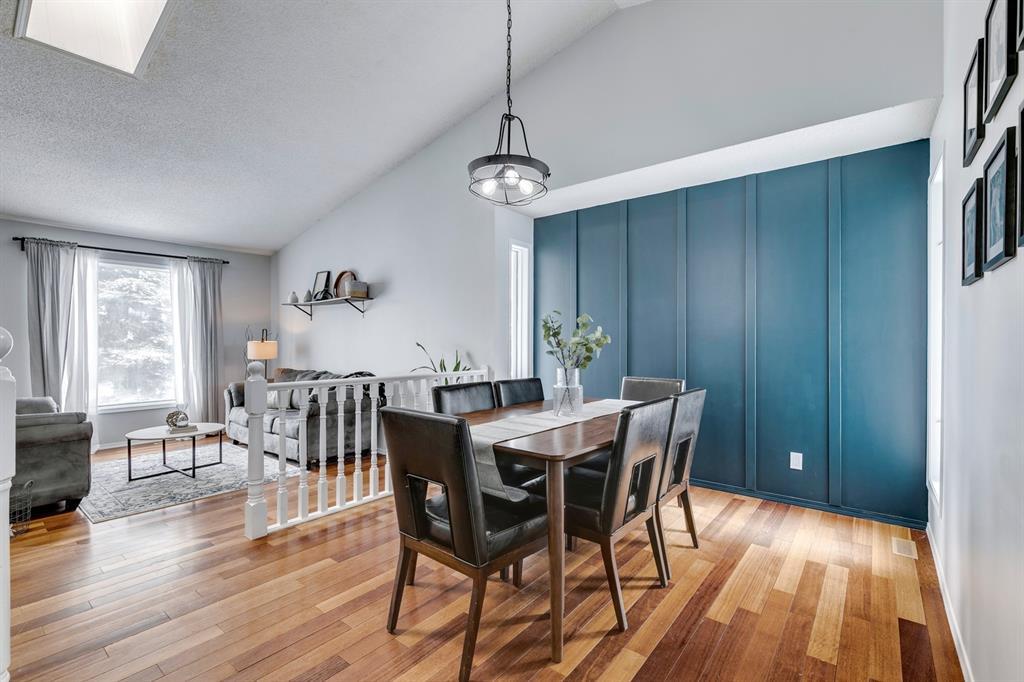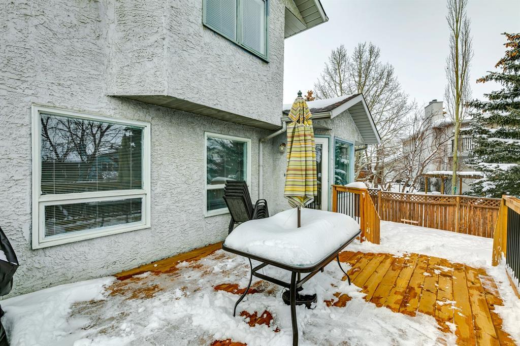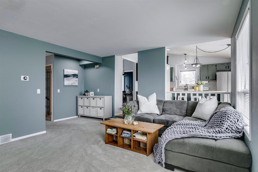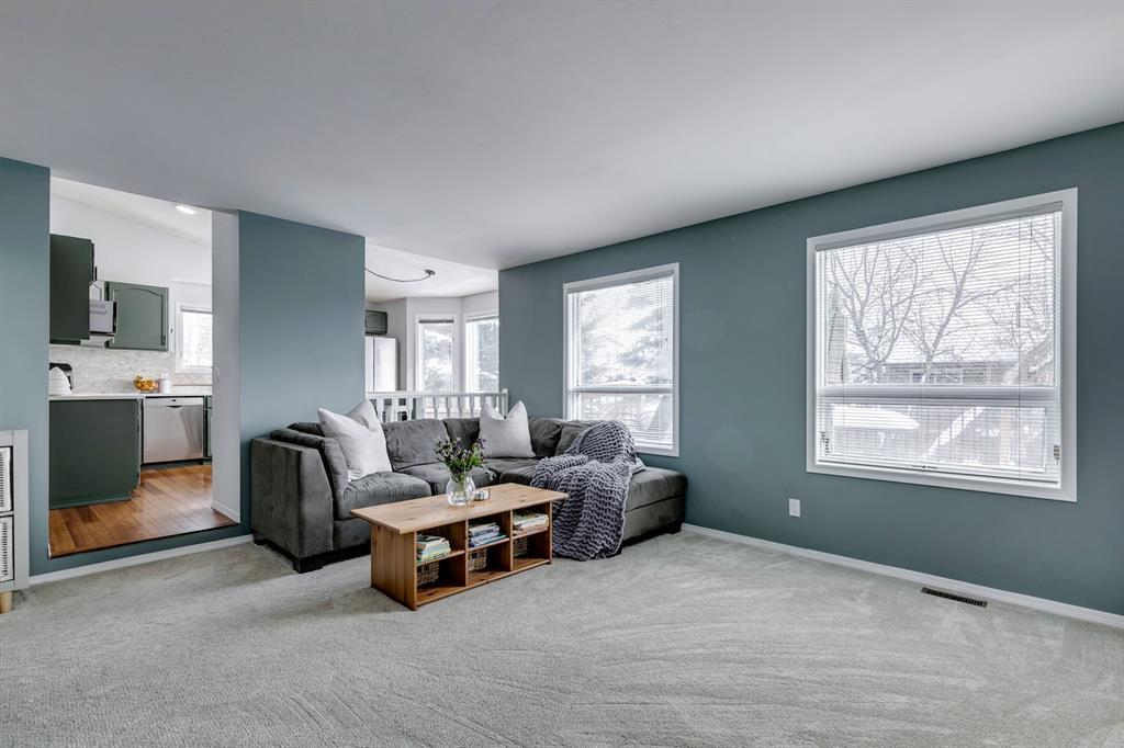 Fantastic, updated move in ready home in a quiet family-friendly location in the northwest community of Hawkwood. The main floor showcases a front living room with a large window that sits adjacent to the dining room. Enjoy the rear kitchen that boasts a fresh look, new appliances, loads of cabinets, custom island and a patio door leading out onto the large new rear deck (2022) with southeast-facing yard. Large family room is highlighted by custom-built ins, large windows and wood burning fireplace. There is a main floor den/bedroom with Jack and Jill door to a four-piece bathroom, laundry/mud room complete the main floor. There is hardwood flooring, numerous windows allowing for loads of natural light. The upper level offers two bedrooms, updated main four-piece bathroom (2022), primary bedroom with updated en-suite and finished off with walk-in closet. The fully finished basement has a fourth bedroom, three-piece bathroom, 2 large recreation rooms and plenty of additional storage area. Home has been newly painted (2022), new carpet on upper and partial main floor, all new contemporary lighting fixtures (2022) and air conditioning (2022). Great news roof(2016), hot water tanks (2019), high efficiency furnace (2017). This home is located steps from transit and Hawkstone Field with its various offerings and only minutes from schools, parks, all amenities and shopping. (id:22211)