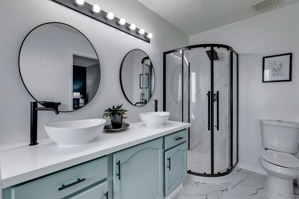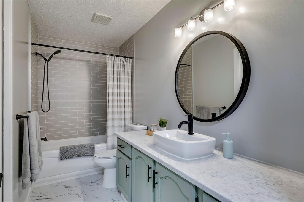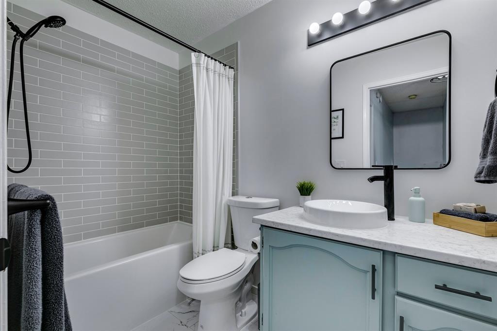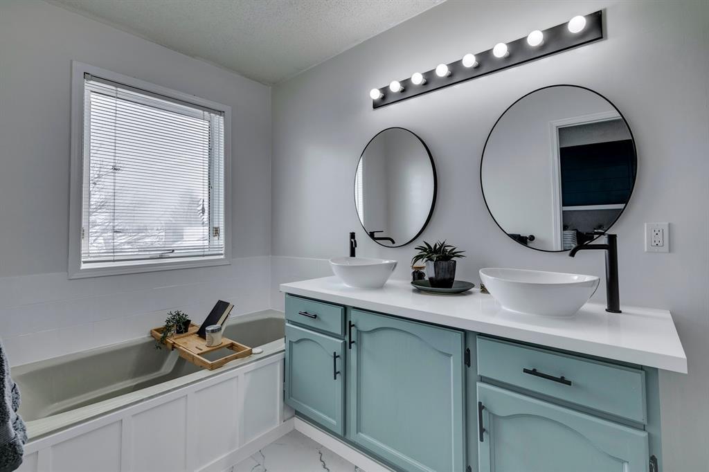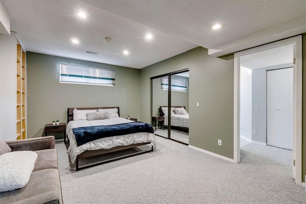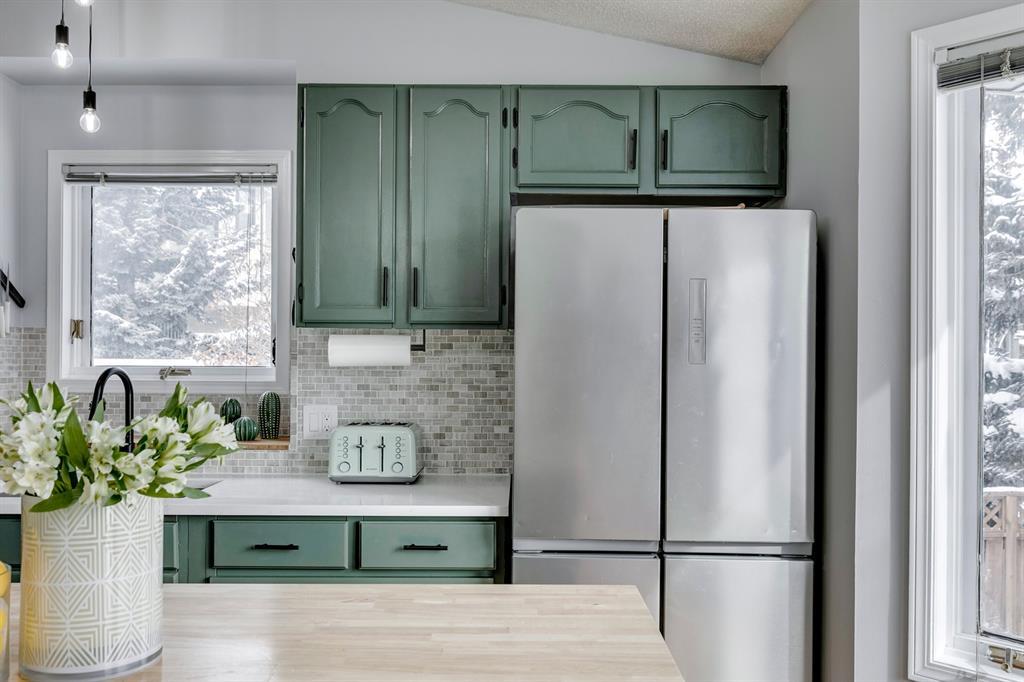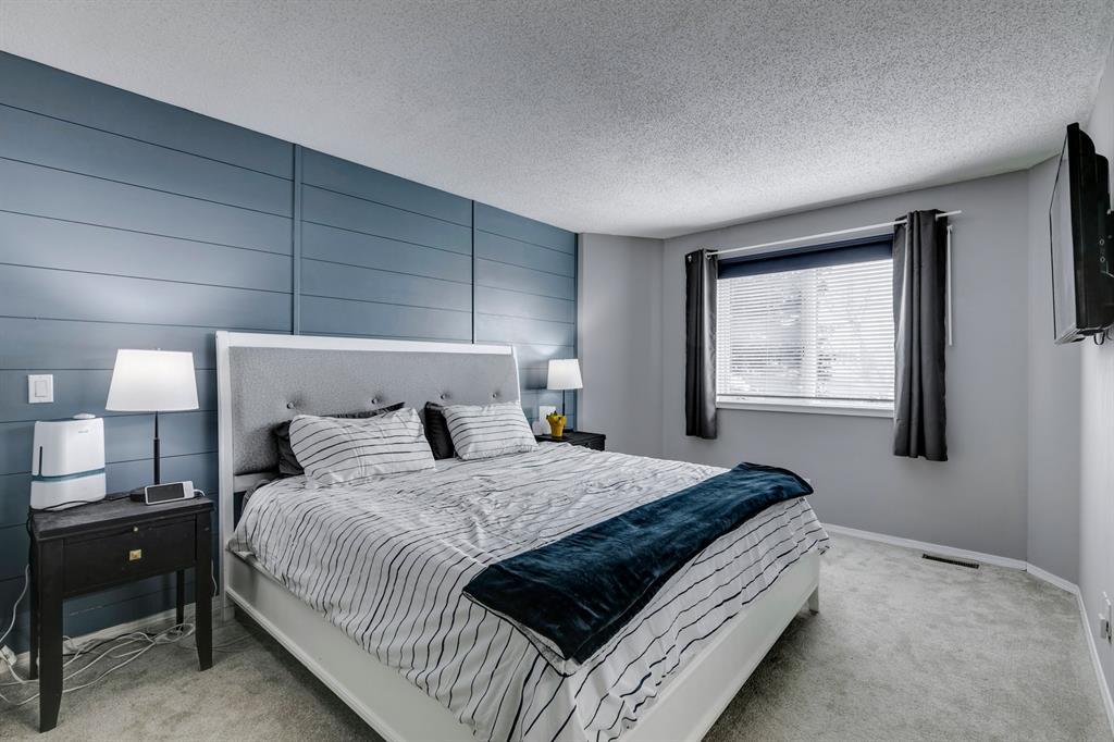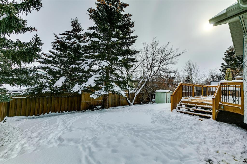 Fantastic, updated move in ready home in a quiet family-friendly location in the northwest community of Hawkwood. The main floor showcases a front living room with a large window that sits adjacent to the dining room. Enjoy the rear kitchen that boasts a fresh look, new appliances, loads of cabinets, custom island and a patio door leading out onto the large new rear deck (2022) with southeast-facing yard. Large family room is highlighted by custom-built ins, large windows and wood burning fireplace. There is a main floor den/bedroom with Jack and Jill door to a four-piece bathroom, laundry/mud room complete the main floor. There is hardwood flooring, numerous windows allowing for loads of natural light. The upper level offers two bedrooms, updated main four-piece bathroom (2022), primary bedroom with updated en-suite and finished off with walk-in closet. The fully finished basement has a fourth bedroom, three-piece bathroom, 2 large recreation rooms and plenty of additional storage area. Home has been newly painted (2022), new carpet on upper and partial main floor, all new contemporary lighting fixtures (2022) and air conditioning (2022). Great news roof(2016), hot water tanks (2019), high efficiency furnace (2017). This home is located steps from transit and Hawkstone Field with its various offerings and only minutes from schools, parks, all amenities and shopping. (id:22211)