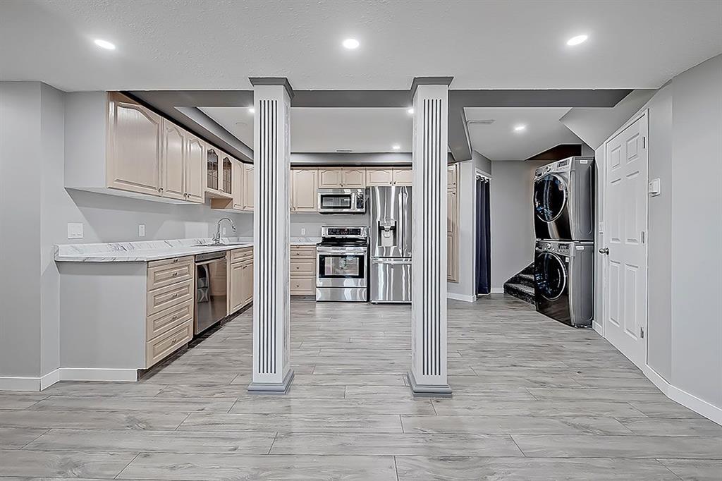 Properties like this do not come along often! Fully developed walkout basement is suited (illegal) & the lot is huge as well as RV & boat parking off the alley. Upstairs you will find a large primary bedroom with vaulted ceilings, 4 piece ensuite with granite counters & walk-in closet. There are 2 more good sized bedrooms, another 4 piece bathroom with granite counters & a bonus room. The main level has beautiful hardwood floors, newer s/s appliances in the kitchen as well as granite countertops & a walk-through pantry, gas fireplace in the living room & a 2 piece bath just down the hall from the laundry/mud room off the double heated (radiant) garage. The huge south facing deck will be a place to spend lots of time with family & friends this summer & if it gets too hot just step inside to enjoy the A/C. The walkout basement was just recently developed & has a full kitchen with newer s/s appliances, a large bedroom, full bath, living room with a 85% efficient gas fireplace & its own stacked washer/dryer. There is lots of additional parking off the alley if needed. Newer shingles, h/w tank, carpet & laminate in basement & the furnace & upstairs carpet have just been professionally cleaned. Excellent location is walking distance to 6 schools. Easy access to Deerfoot, Stoney Trail & the airport. Close by are Vivo recreation centre which is close to completing their 62 million dollar expansion, movie theatre, Superstore, Sobeys, restaurants & shops. (id:22211)