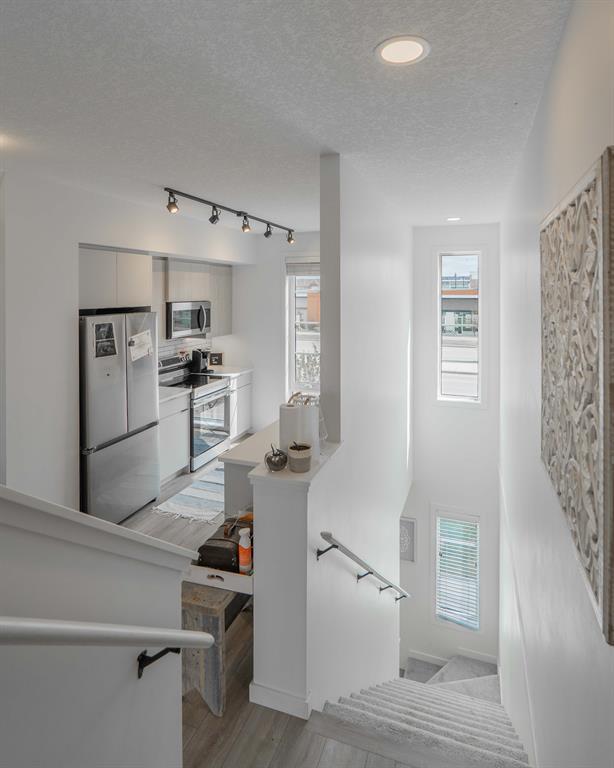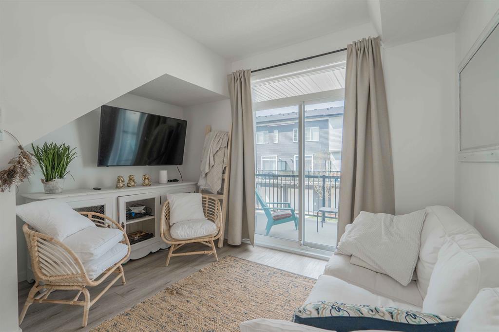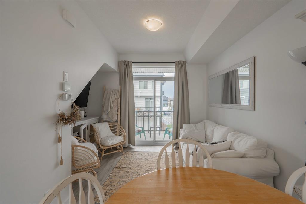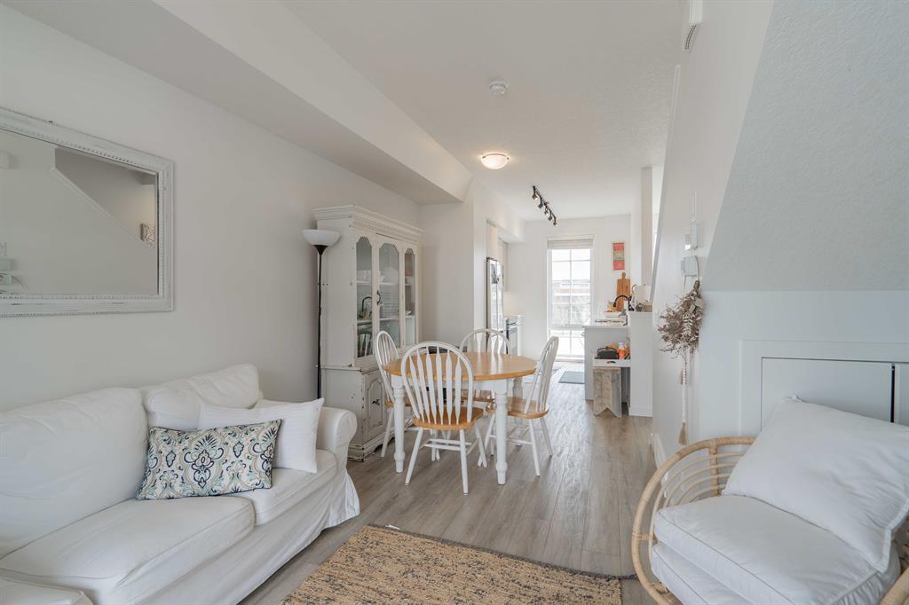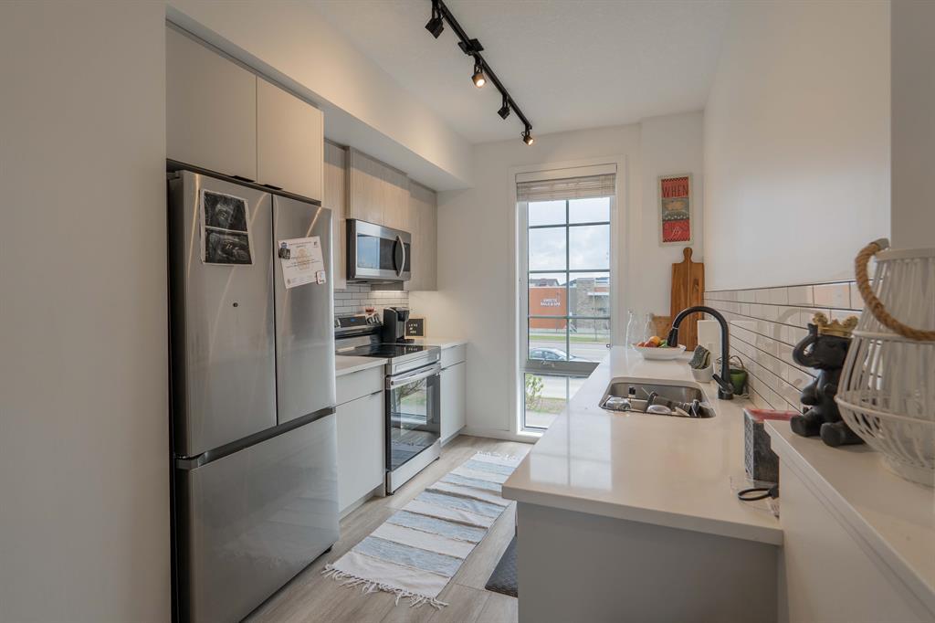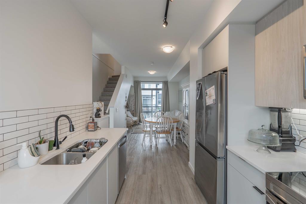 Back on the Market: Buyer was not able to sell home in order to purchase . Condo docs condition was waived. Built in 2022 This 2 bedroom townhouse promotes a convenient, low-maintenance lifestyle! Pull right into your attached, garage and proceed into the above grade entry level. The bright and open main floor is basked in natural light with 9’ ceilings, upgraded Vinyl Plank flooring throughout the upper two levels and a stylish design that is modern and sophisticated yet practical. Clear sightlines allow for easy interaction between all the main rooms, perfect for entertaining. Inviting relaxation, the living room bathed in natural light encourages a seamless indoor/outdoor lifestyle featuring patio sliders that lead to the expansive balcony. The gorgeous kitchen encourages culinary explorations with timeless subway tile backsplash, an abundance of full-height cabinetry, stainless steel appliances and a large breakfast bar island for everyone to gather around. Adjacently the casually elegant dining room offers plenty of room for family meals as well as hosting larger gatherings. Conveniently a handy powder room completes this level. Laundry is ideally found on the upper level along with the 2 spacious bedrooms. The primary is a calming oasis boasting dual closets and a luxuriously private 4-piece ensuite, no more sharing! Both bedrooms are very generously sized. Parking will never be an issue with additional driveway parking for guests while your vehicles stay out of the elements in the garage. All this and an unbeatable location in this family-oriented community chocked full of pathways that wind around the ponds and parks. Within walking distance is every amenity including the numerous shops and restaurants (with more on the way!) at the Township Shopping District. Simply a phenomenal, new home with stylish European influences in a great complex with low condo fees and an outstanding location (id:22211)