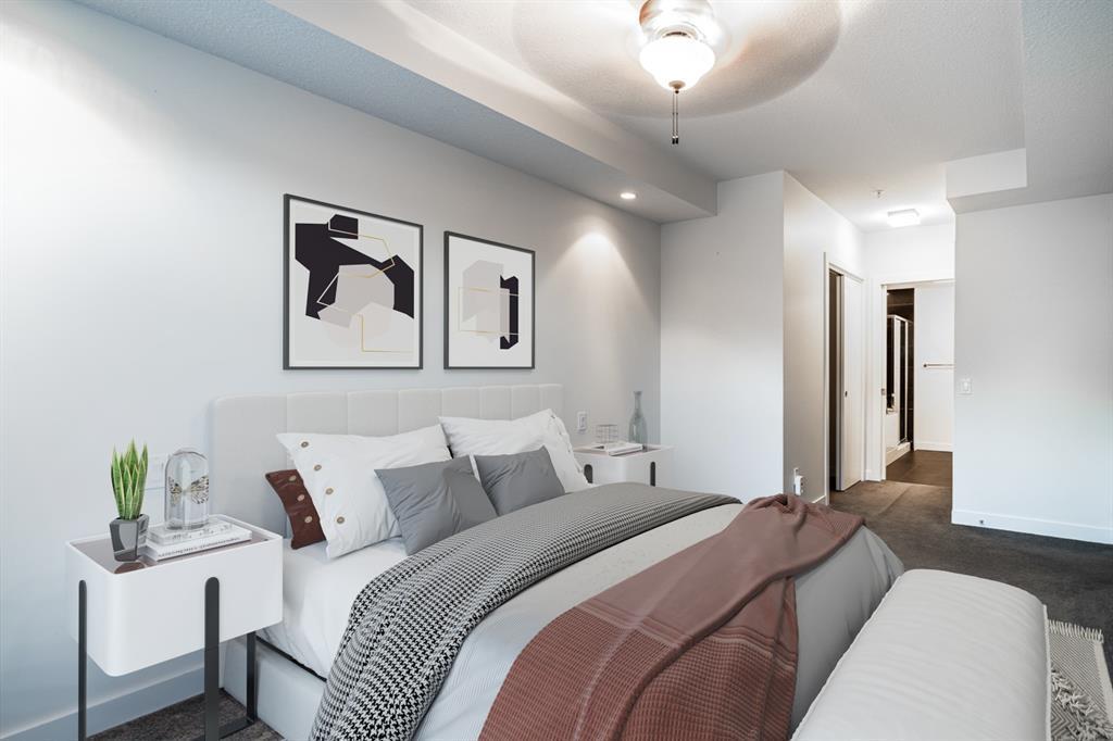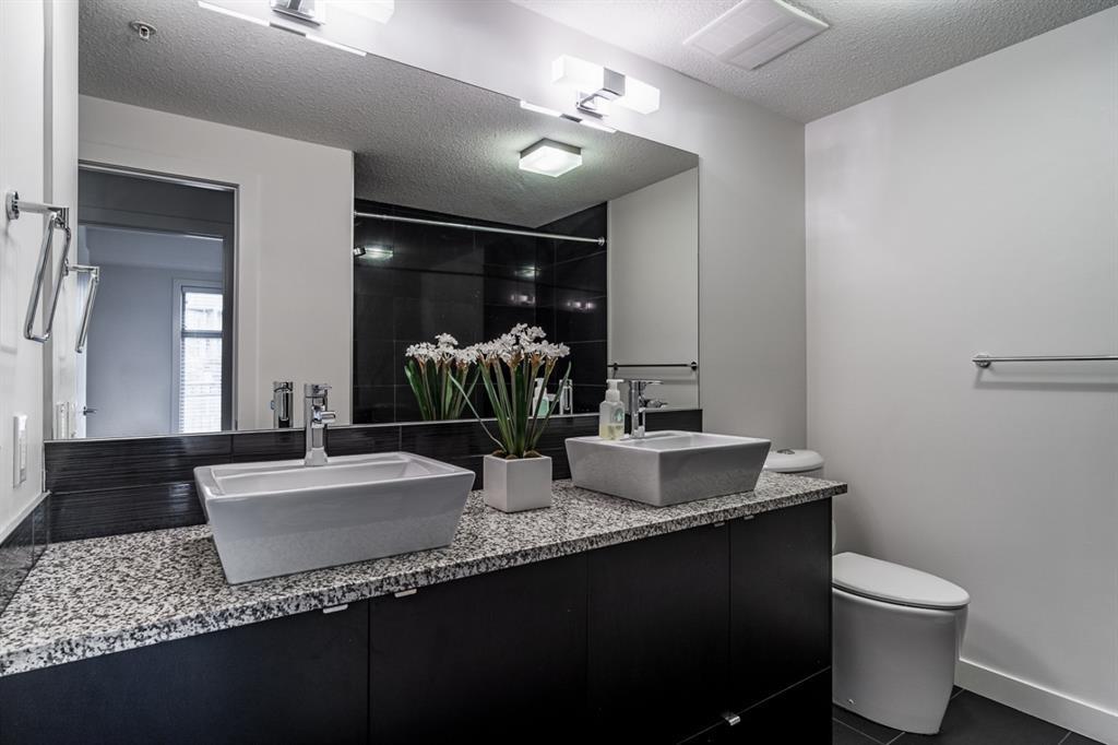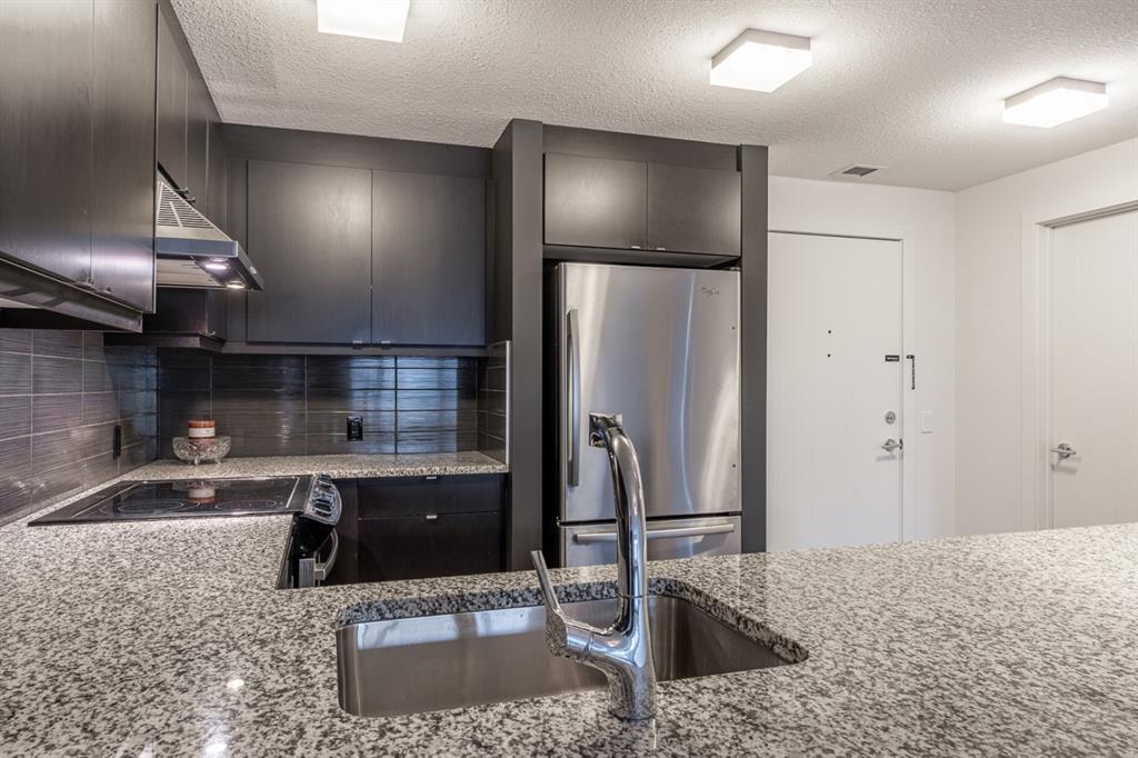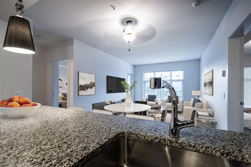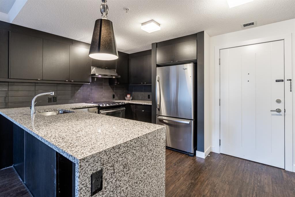 Welcome to the DESIRABLE community of ASPEN WOODS!! Here is an amazing opportunity to get into one of Calgary's most prestigious communities in Calgary! This 2-bedroom, 2-bathroom property has the highest upgraded unit and MOVE IN READY. It is upgraded with GRANITE counters, laminate floors, STUNNING bathrooms with vessel sinks, in-suite laundry, an In-floor heating system, auto shut-off valves in laundry & sinks + so much more, All New LED lighting and new Island light fixtures!! Step into an OPEN CONCEPT design with a stylish kitchen complete with waterfall granite counters, stainless steel appliances, pendant lighting, tile backsplash, and full-height expresso and slow closing mechanism cabinetry! Off the kitchen is a nice-sized living room perfect for entertaining with access to the large patio. Both bedrooms are large enough for all your bedroom furniture and the master features a walk-in closet and UPGRADED 5-piece ENSUITE with dual vanities, gorgeous granite counters, and modern tile. This unit has NO NEIGHBOURS on either side and No one belew as it is parking, so only one common wall. Also steps away from the TITLED HEATED underground parking stall 135 and separate storage locker 204. Complete with its own fitness center, guest suite, and loads of visitor parking, plus take advantage of the walking paths and forest behind the building or everything that Aspen Landing has to offer! Listing Realtor is related to the owner. (id:22211)