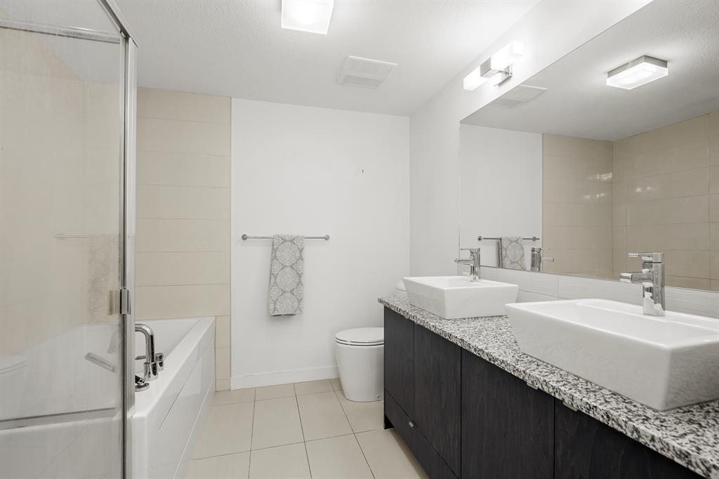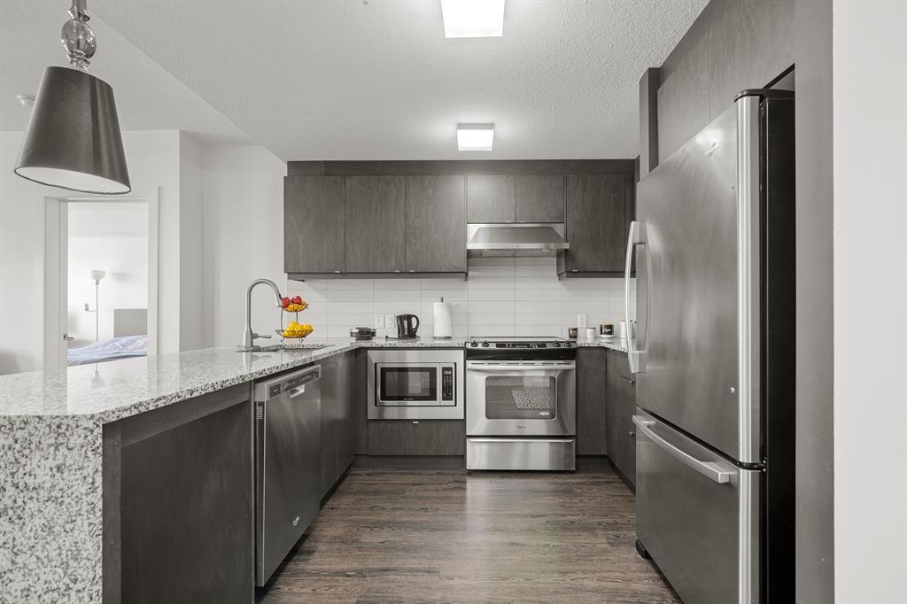 STUNNING 2 BEDROOM, 2 BATHROOM condo in the AMENITY-RICH Valmont at Aspen Stone complex. This bright and open unit has a HIGH-END DESIGN and a perfect layout with the main living spaces separating the bedrooms for ultimate privacy. Culinary adventures are inspired in the gorgeous kitchen featuring GRANITE COUNTERTOPS, A WATERFALL EDGE PENINSULA ISLAND with a built-in eating area, STAINLESS STEEL APPLIANCES and rich full-height cabinetry. The gleaming laminate flooring is continued into the living room with a relaxing atmosphere that is bathed in NATURAL LIGHT. Host casual barbeques or simply unwind enjoying the fresh air on the GLASS RAILED BALCONY. The primary bedroom is a true oasis with dual closets that lead to the LAVISH ENSUITE boasting DUAL SINKS, A DEEP SOAKER TUB and a SEPARATE SHOWER. IDEALLY LOCATED ON THE OTHER SIDE OF THE UNIT IS THE SECOND SPACIOUS BEDROOM and the LUXURIOUS 5-PIECE MAIN BATHROOM which is also equipped with dual sinks! IN-SUITE LAUNDRY, UNDERGROUND PARKING, SEPARATE storage and bike storage add to your comfort and convenience. A well-equipped FITNESS ROOM and GUEST SUITES are also part of the package in this well-run building nestled amongst nature. Within walking distance to great schools, the extensive pathway that winds around Aspen Lake and to the numerous amenities at Aspen Landing Shopping Centre. Also close is the LRT Station and the always popular Westside Rec Centre. Combining style with function in an unbeatable location this home has it all! (id:22211)