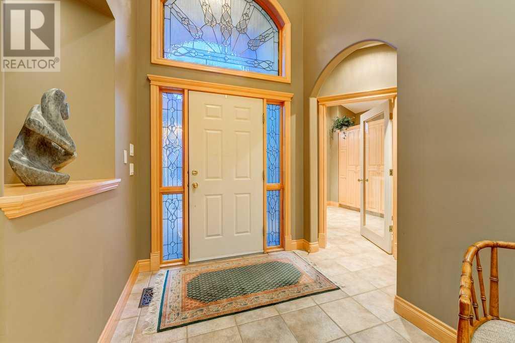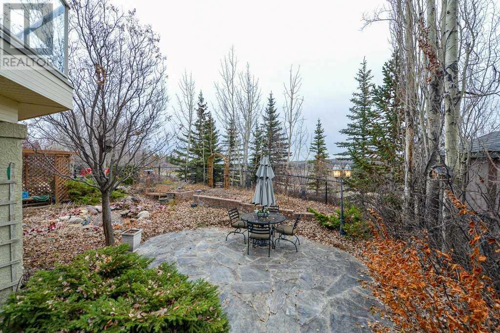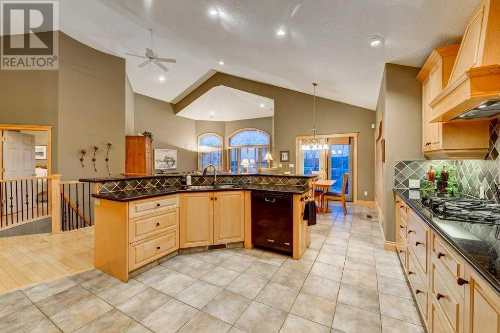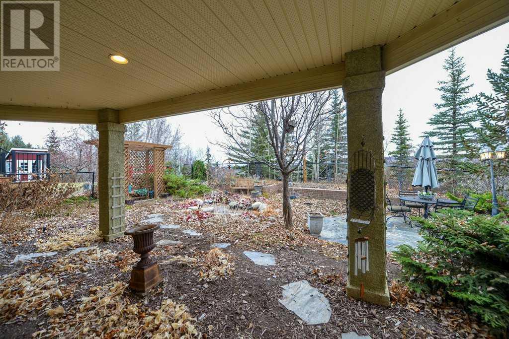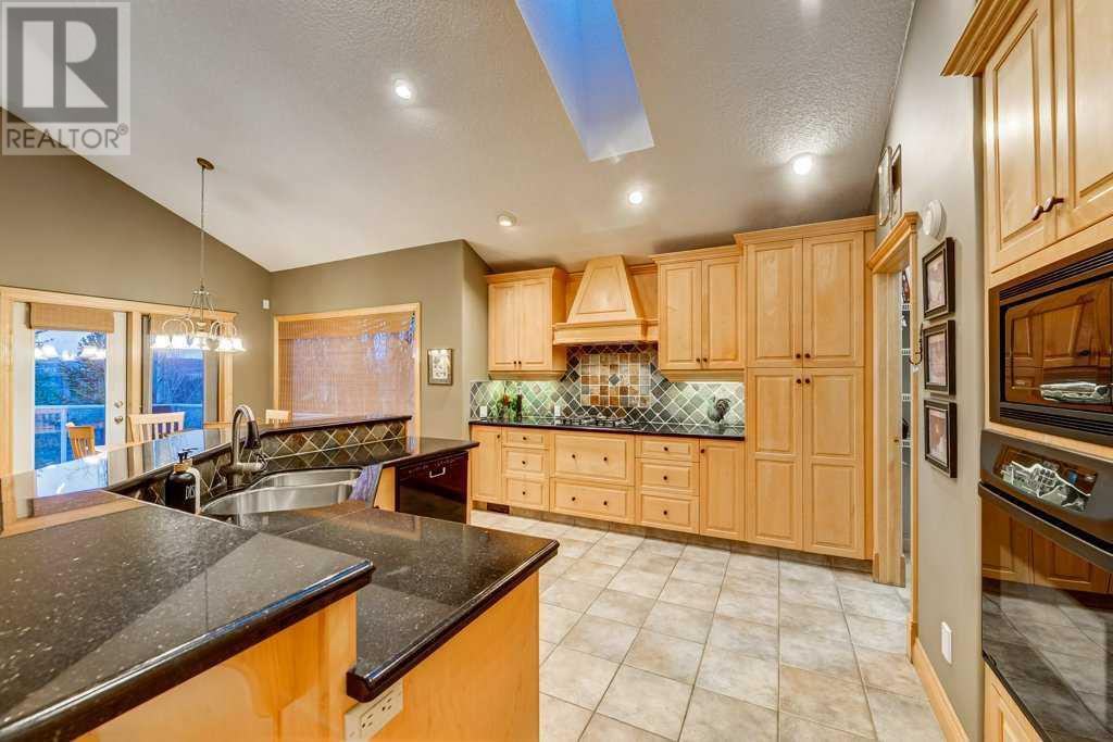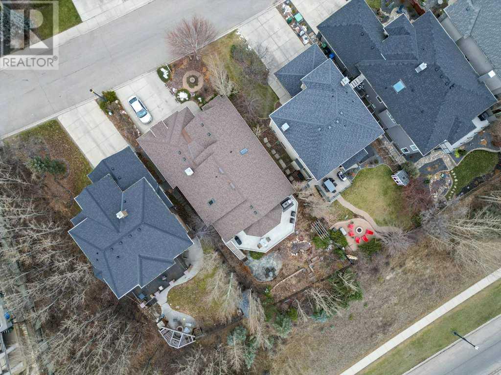 Stunning walk-out bungalow themed with bright and spacious functionality sits perched on a ridge in a private cul-de-sac with sunny south facing views, situated on a green belt. This custom-built home by Maillot Homes offers 2,950 square feet of developed living space, beautiful curb appeal with estate exterior finishes and an impressive high-pitch roof line. Enjoy an over-size double car garage measuring 23x24 ft with natural light from large stained-glass windows paired with an extended front driveway and extra parking. The garage extension and overhead lights would make a great workshop. Step into a spacious receiving area and be greeted with a bright and open floor plan, and experience soaring geometric vaulted ceilings/sky lights. Off the entry sits a massive custom designed laundry area with windows and cabinetry (formerly a den but would easily be converted back with the laundry moved back to the pantry). The formal dining room is definitely "family sized" and capable of hosting those large special occasions and is complimented by a recessed hutch/art niche area. The kitchen is genuinely amazing and features rich generous maple cabinetry, an abundance of raised granite counter space, and sits surrounded by lighter contrasting maple hardwood floor. Look up anytime to 16' full height vaulted ceilings. Groceries are easy with a walk-through pantry to the kitchen. A full high-end appliance package (gas stove-top), slate tile backsplash, and a handcrafted wood hood fan are all an added touch suited to every gourmet chef. The back of the main level opens to an extra-large outdoor living space where the deck runs the entire width of the home and the whole back exterior bathes in the sunny south exposure! Living room area, as with all the space on the main floor offers towering, vaulted ceilings and customized stained glass accented windows with arched tops. The primary bedroom is enormous and is positioned at the back of the home to take advantage of the both the v iews and sunlight and has an adjoining 5-piece bathroom (with soaker tub and separate shower) and a walk-in closet. Getting ready is easy with an extended vanity featuring two sinks, and a separate toilet location. The lower level comes with no detail overlooked and has a walk-out to a magnificent award wining garden area and covered patio. Accessed by an elegant open staircase into a games room area with vast space for entertaining, and is large enough for billiards, or foosball, or to make a large family area to cozy up in front of the fireplace and relax. No cold feet here. The walk-out level is multi-zoned with in-floor heat throughout. Equipped with a second large bedroom, a 4-piece bath, den, and storage space, this plan is fully utilized and perfect for guests or your older teenager. The utility area is quite large, and if more finished space is desired, there is an opportunity to add more here. This home is truly a stunner, and worth a look. Easy access for your appointment! (id:22211)