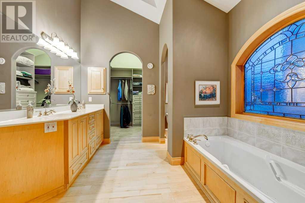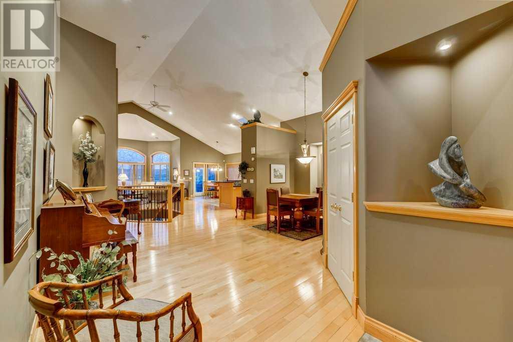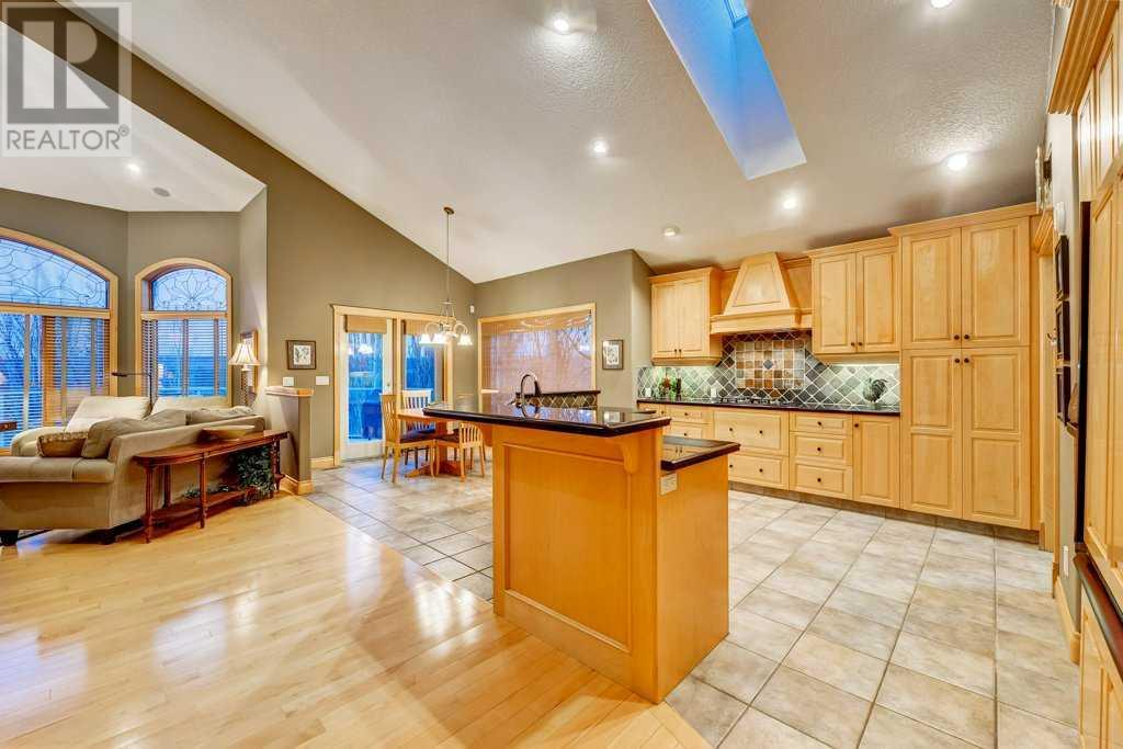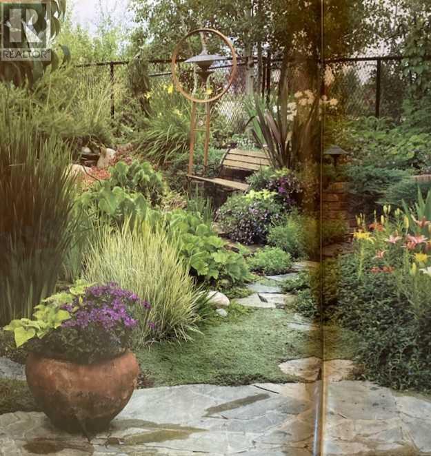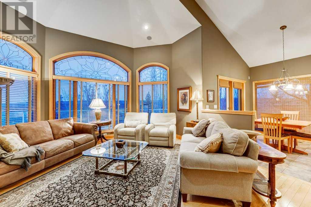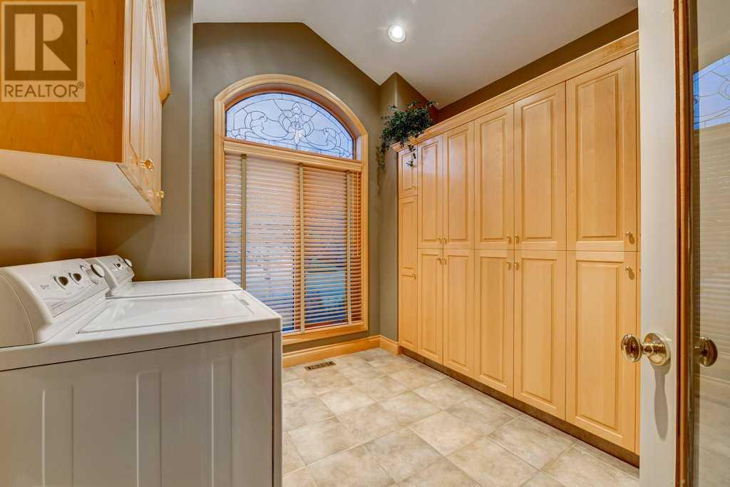Stunning walk-out bungalow themed with bright and spacious functionality sits perched on a ridge in a private cul-de-sac with sunny south facing views, situated on a green belt. This custom-built home by Maillot Homes offers 2,950 square feet of developed living space, beautiful curb appeal with estate exterior finishes and an impressive high-pitch roof line. Enjoy an over-size double car garage measuring 23x24 ft with natural light from large stained-glass windows paired with an extended front driveway and extra parking. The garage extension and overhead lights would make a great workshop. Step into a spacious receiving area and be greeted with a bright and open floor plan, and experience soaring geometric vaulted ceilings/sky lights. Off the entry sits a massive custom designed laundry area with windows and cabinetry (formerly a den but would easily be converted back with the laundry moved back to the pantry). The formal dining room is definitely "family sized" and capable of hosting those large special occasions and is complimented by a recessed hutch/art niche area. The kitchen is genuinely amazing and features rich generous maple cabinetry, an abundance of raised granite counter space, and sits surrounded by lighter contrasting maple hardwood floor. Look up anytime to 16' full height vaulted ceilings. Groceries are easy with a walk-through pantry to the kitchen. A full high-end appliance package (gas stove-top), slate tile backsplash, and a handcrafted wood hood fan are all an added touch suited to every gourmet chef. The back of the main level opens to an extra-large outdoor living space where the deck runs the entire width of the home and the whole back exterior bathes in the sunny south exposure! Living room area, as with all the space on the main floor offers towering, vaulted ceilings and customized stained glass accented windows with arched tops. The primary bedroom is enormous and is positioned at the back of the home to take advantage of the both the v iews and sunlight and has an adjoining 5-piece bathroom (with soaker tub and separate shower) and a walk-in closet. Getting ready is easy with an extended vanity featuring two sinks, and a separate toilet location. The lower level comes with no detail overlooked and has a walk-out to a magnificent award wining garden area and covered patio. Accessed by an elegant open staircase into a games room area with vast space for entertaining, and is large enough for billiards, or foosball, or to make a large family area to cozy up in front of the fireplace and relax. No cold feet here. The walk-out level is multi-zoned with in-floor heat throughout. Equipped with a second large bedroom, a 4-piece bath, den, and storage space, this plan is fully utilized and perfect for guests or your older teenager. The utility area is quite large, and if more finished space is desired, there is an opportunity to add more here. This home is truly a stunner, and worth a look. Easy access for your appointment! (id:22211)