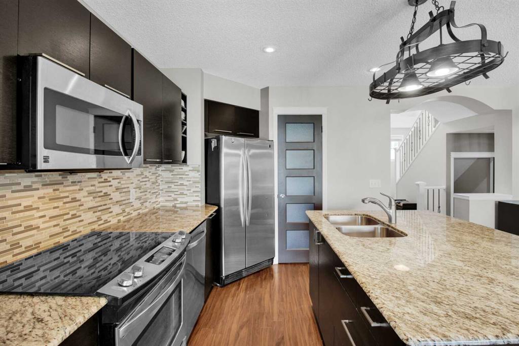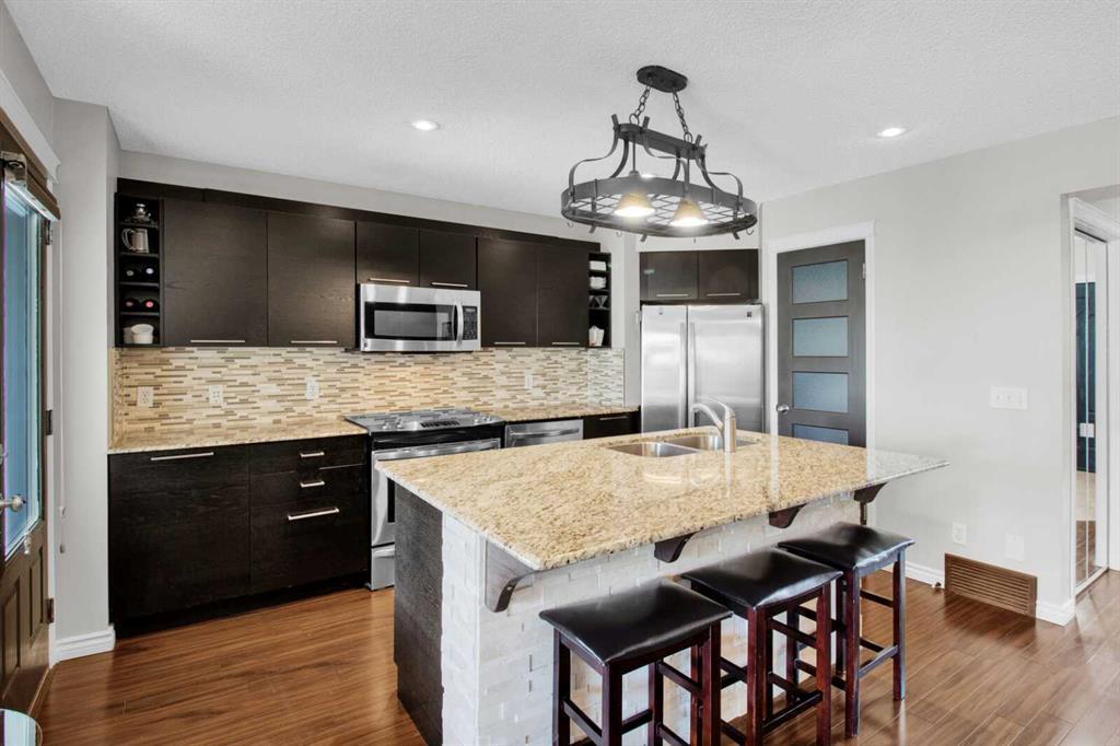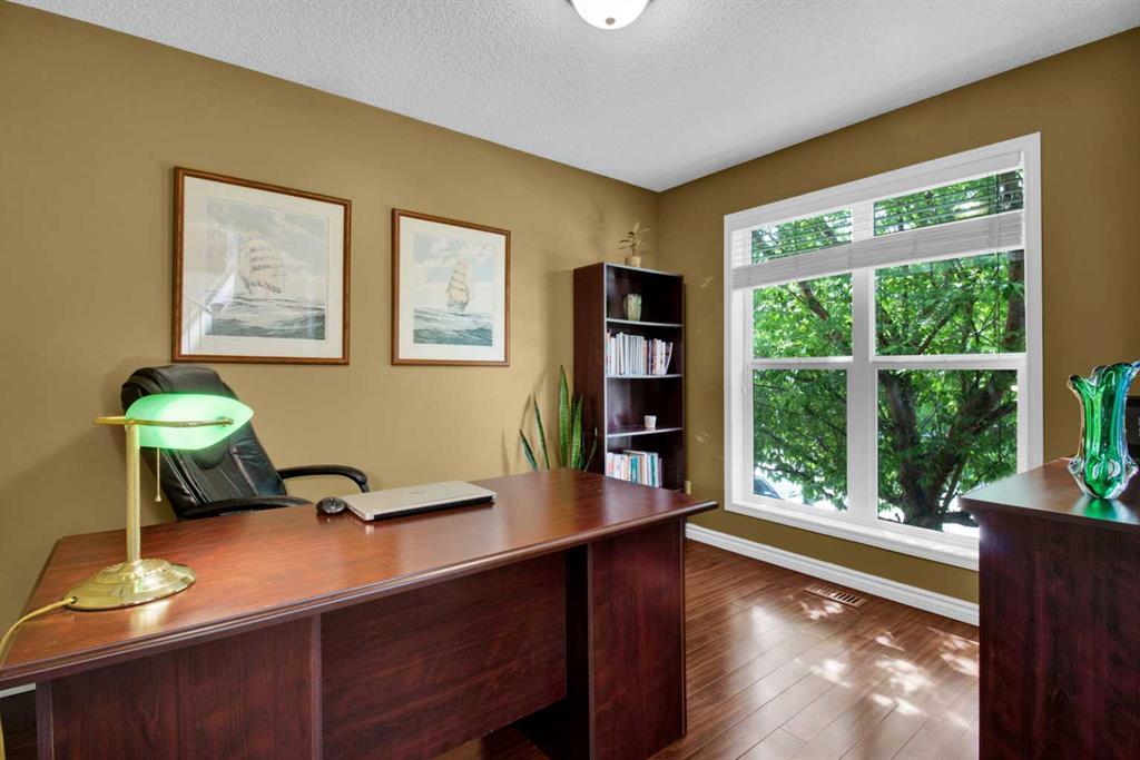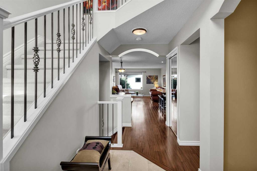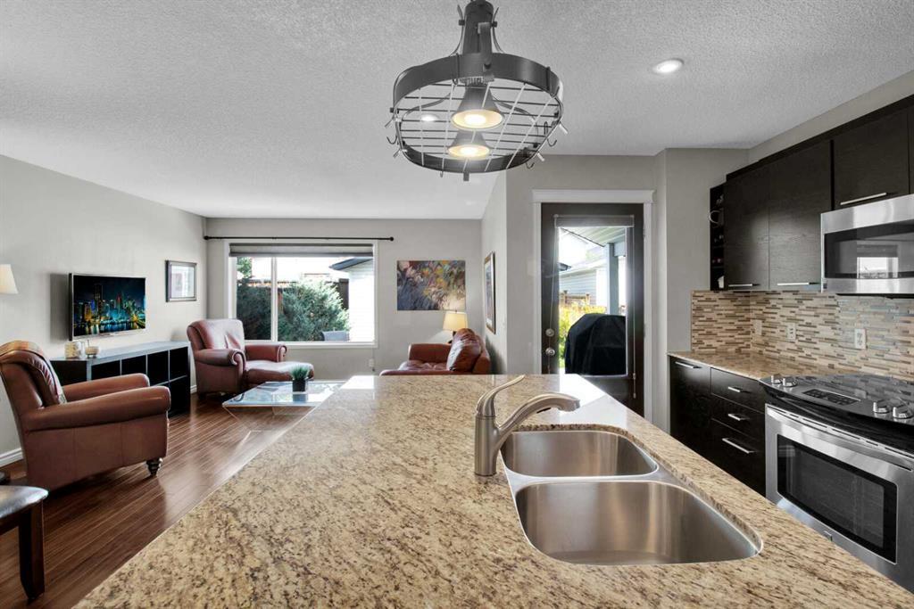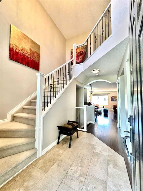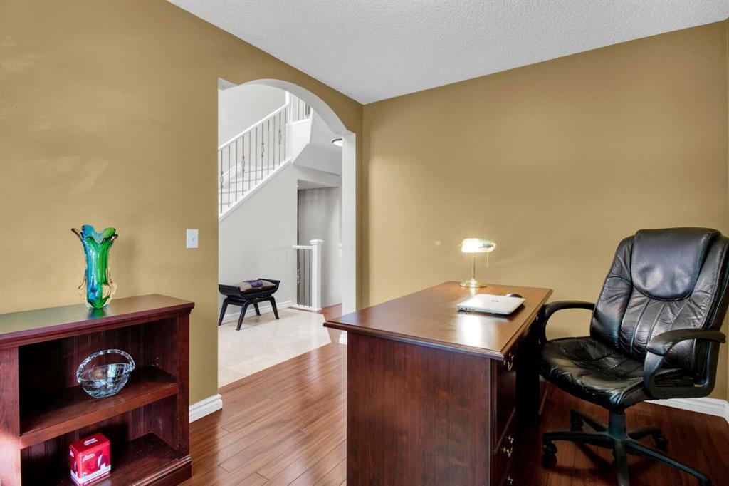 What will 'wow' you more? The rare, 25' DEEP double garage or the striking, light-filled VAULTED foyer with commanding Iron spindle staircase? This home with over 2100 square feet of living space and NEW ROOF 2021 blooms from the moment you enter. Across from the staircase is a comfortably-sized den for your home office or cozy library-you decide. The open concept plan is perfect for family life and entertaining - the upgraded kitchen features granite countertops and stainless steel appliances, including a slide-in range and opens to the dining, living area with guest bath down the hall. Up the beautiful staircase you'll discover the Primary bedroom with walk-in closet built-ins, a 4 pc bathroom with Granite counters, full tile shower/soaker tub and a Special Retreat area to curl up with a book or park your Pelaton. Two more bedrooms and 4 pc family bath with granite counters completes this floor. The fully finished with Permit basement has a 2 pc bath, another Office with window and a 36 foot long media area for movie nights or your gym equipment. A Samsung washer and dryer are located in the basement laundry room. The fully fenced yard reveals a RARE 25 foot Deep double garage. This home is well maintained and cared for (furnace gets cleaned every two years). Minutes to the C-Train Station , Tuscany is home to walking paths, several schools, parks, Community activities and also minutes to the to the YMCA, shopping, restaurants, and many amenities with quick access to the mountains. Enjoy the Video Tour and Call to view today. (id:22211)