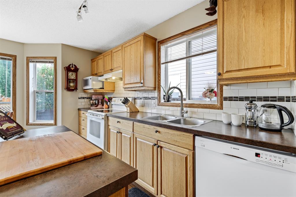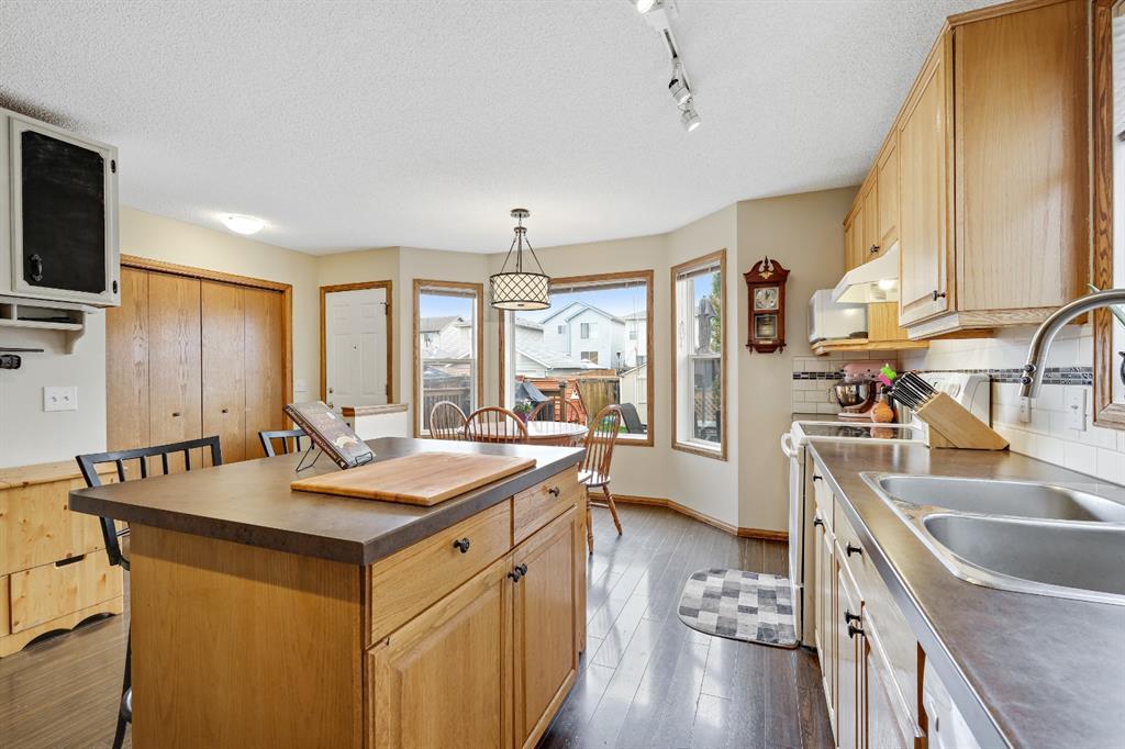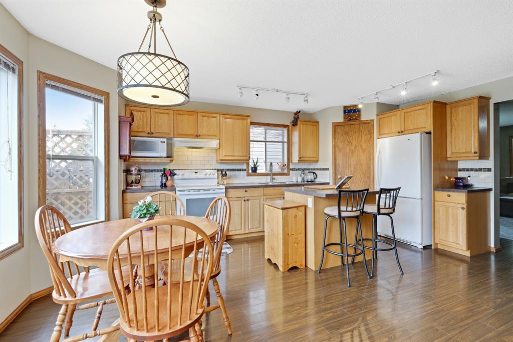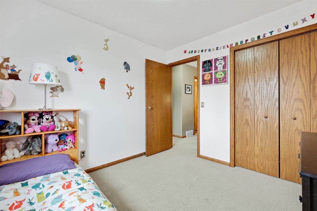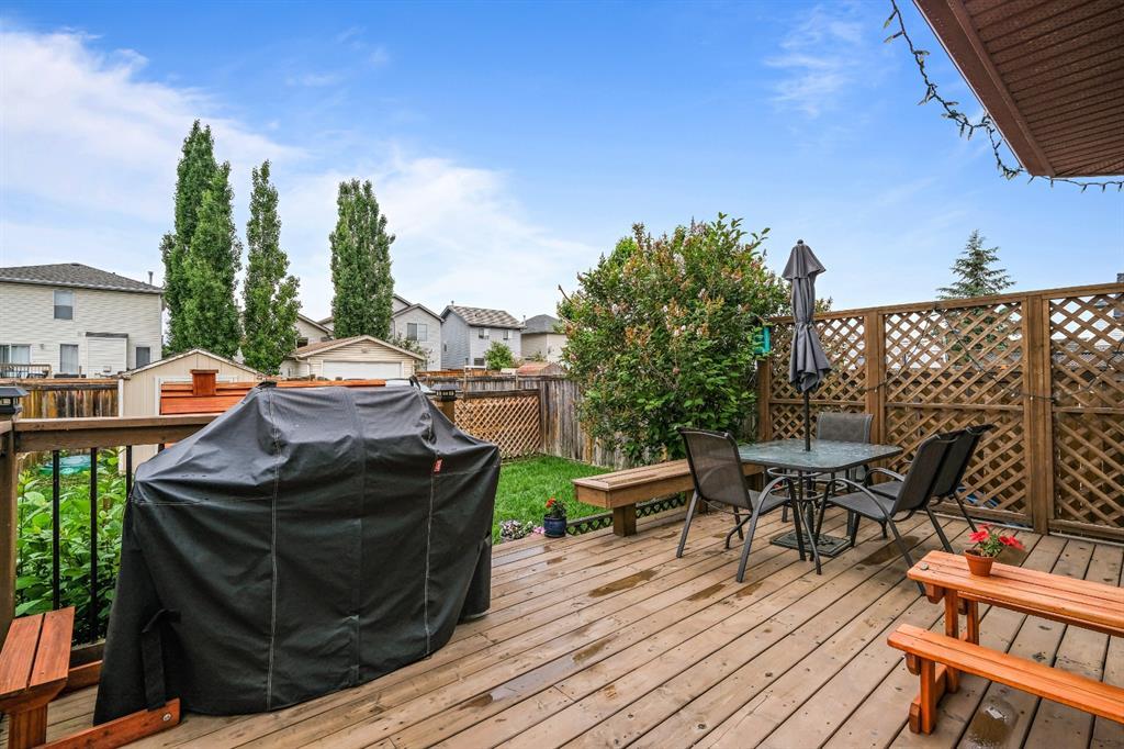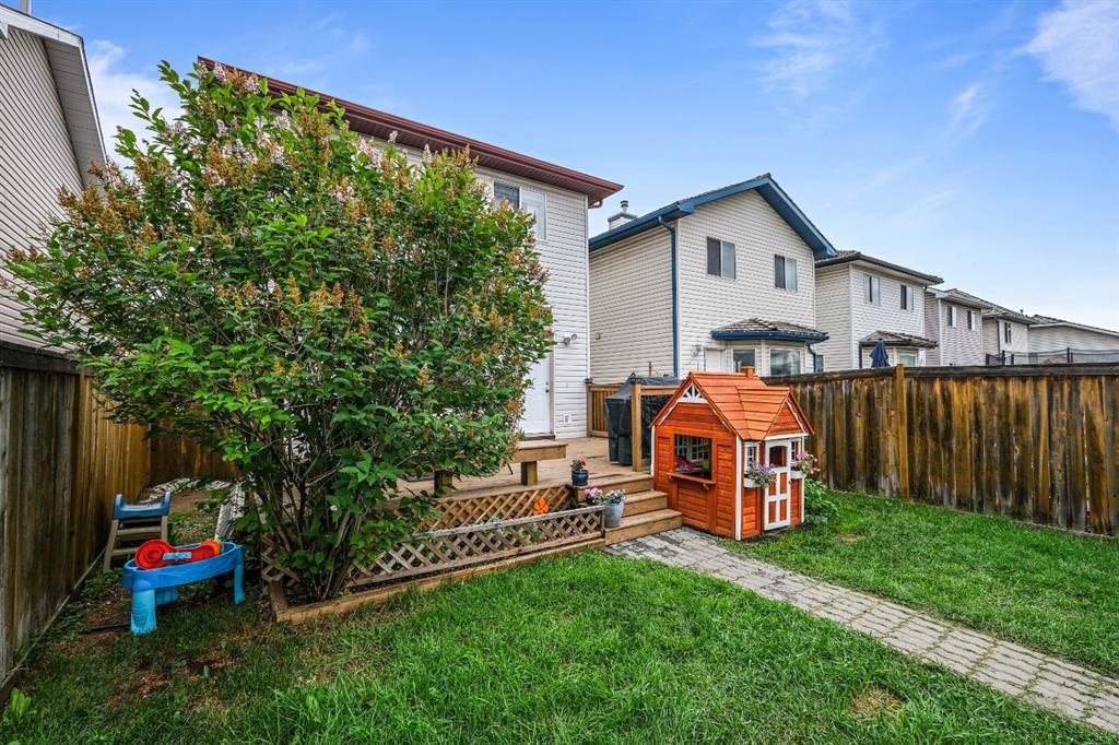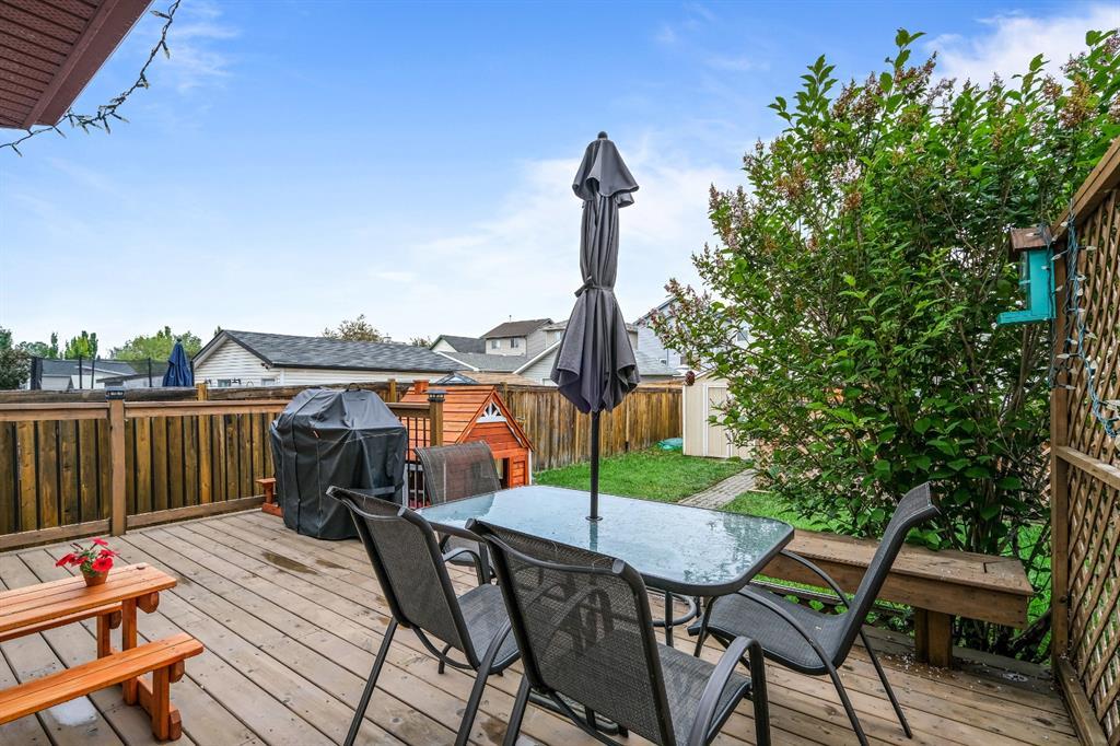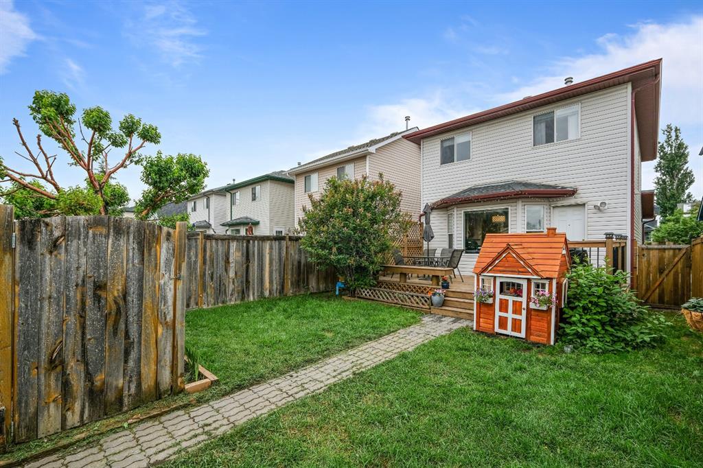 A very affordable 1351 sq ft Two Storey home in Mckenzie Lake located within 5 minutes to Fish Creek Park and close proximity to 3 schools, shopping and bus transportation. Laminate floors on the main level and carpet upstairs in all 3 bedrooms. The large kitchen with eating area has a small island plus a walk in pantry and lots of pull out drawers. Easy access to the rear deck for barbequing and a fully fenced yard with a parking pad. The master bedrooms has a walk in closet with 2 other good sized childrens bedrooms. The basement is developed with a family room and flex room plus lots of storage space. Updates include a new rear deck in 2015 and new shingles 8 years ago. A perfect place to raise a young family. (id:22211)