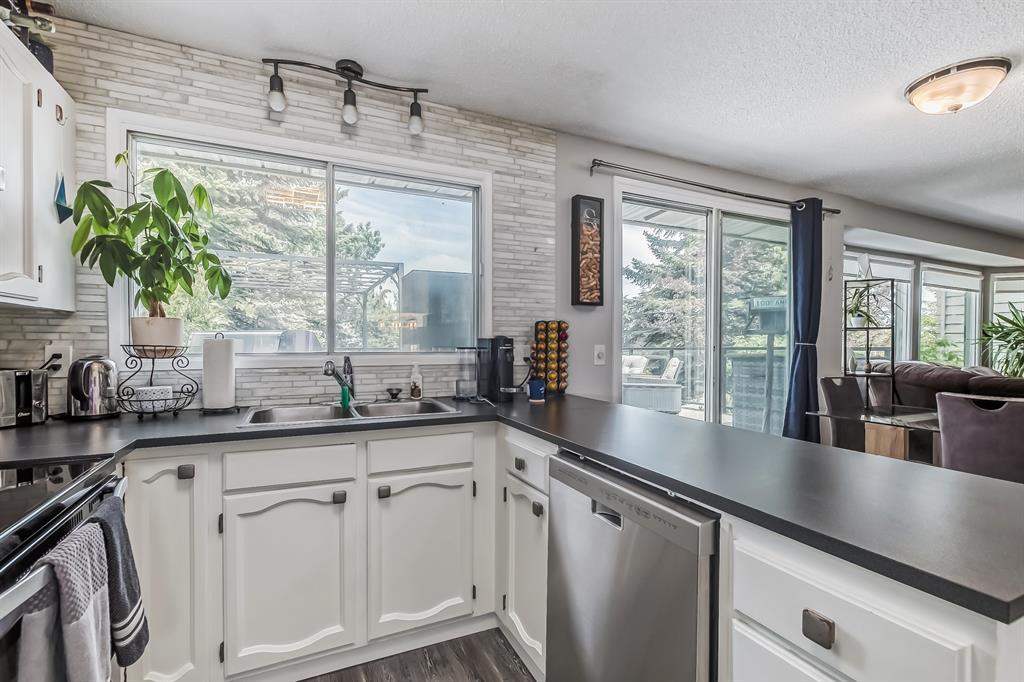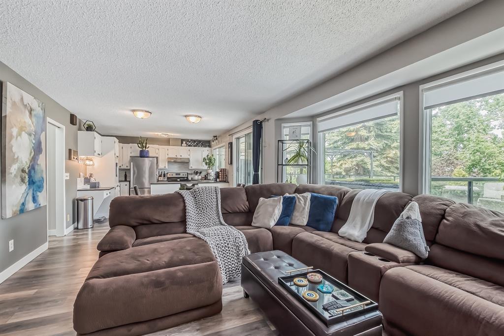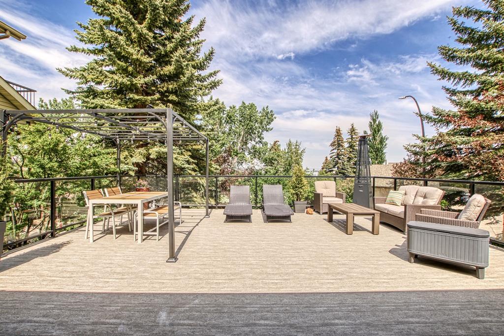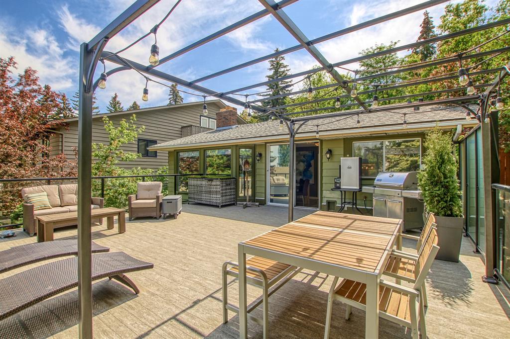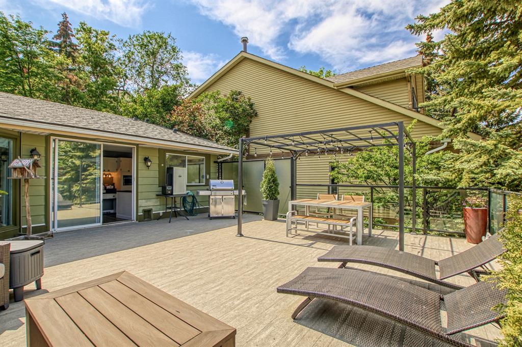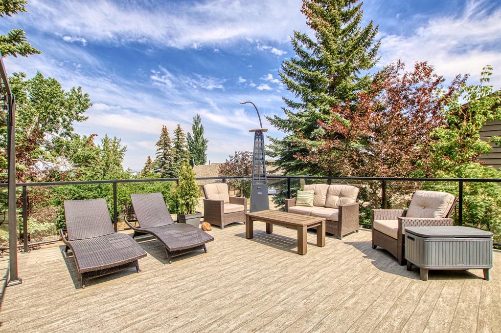 OPEN HOUSE HAS BEEN CANCELLED. A bright and spacious, legally suited basement with over 2300 sqft of living space, in the well established community of Coach Hill. The formal entrance leads up to the living room finished with vinyl plank flooring, a cozy corner fireplace and oversized windows bringing in loads of natural light. A well appointed kitchen features stainless steel appliances and looks over the dining area. Sliding doors lead to a HUGE deck (600 sqft) with a beautiful view, a perfect space to relax and entertain in the summer months. 2 bedrooms including the master bedroom with den/ flex room, 3pc ensuite featuring an oversized shower with 2 shower heads and walk-in closet complete the space. Legally suited basement has been permitted with 2 furnaces and separate ventilation. A large kitchen, dining area, living room with brick facing fireplace and a large spa like bathroom with jacuzzi tub complete this space. Entrance leads to the 2 car heated, attached garage. Legal Suite has separate laundry and home is air conditioned. Close to Edworthy Park, Westside amenities, schools and quick access to downtown. Don’t miss this fantastic investment opportunity and call for your viewing today! (id:22211)