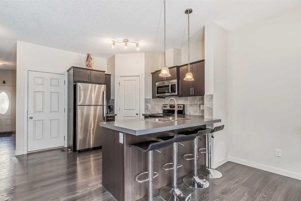 Welcome to this lovely community of Copperfield. This two-storey,townhome is surrounded by amenities all at your fingertips. With 1228 sqft ft of open-designed living space, this unit townhome offers exceptional style and convenience. At the heart of this unit is the kitchen layout, which has an island. Just off to the side are built-in storage cabinets and counter space, an extension of the kitchen space. Large dining space with steps away from the cozy fireplace, perfect for entertaining, relaxing with family and friendsThe upper level has three great-sized bedrooms. The master bedroom is complete with an ensuite bathroom and a walk-in closet, with plenty of closet shelf storage space. The full, unfinished basement space awaits your creative ideas and offers plenty of space to bring your design to life! The open backyard offers two sitting areas. The covered patio desk has plenty of space to place your bisto set as you enjoy your morning coffee, while the lower sitting area can host an outdoor conversation space to host gatherings with the walkway, a green space only steps from your deck. This property offers both single garage and driveway parking, with plenty of parking for you and a guest. This desirable Copperfield community offers all amenities at your fingertips, all within walking distance.Enjoy the virtual tour both inside and outside of this beautiful home! (id:22211)