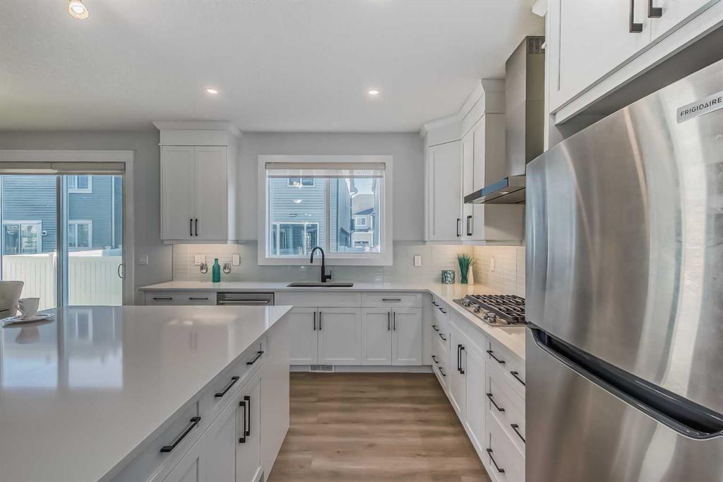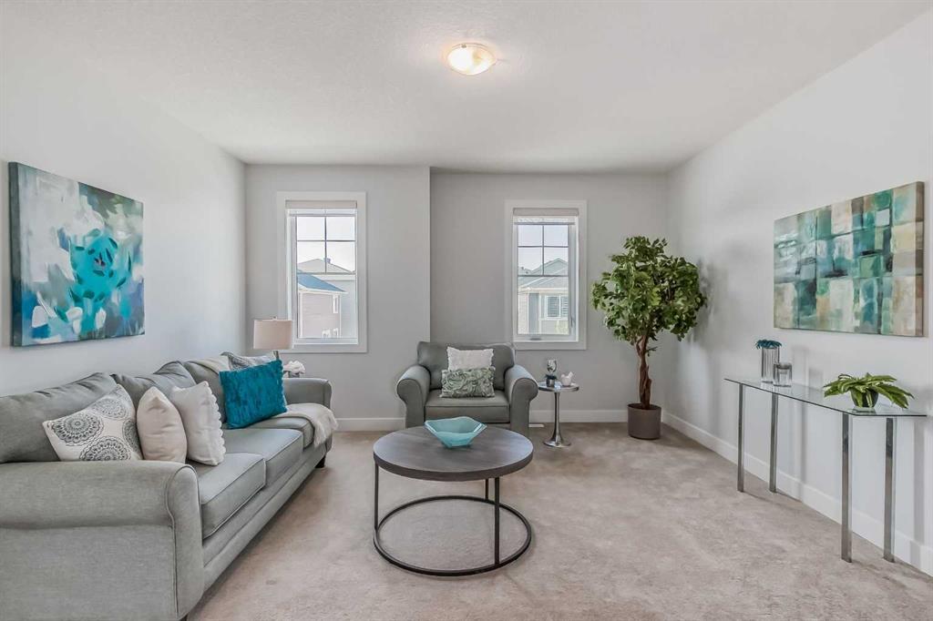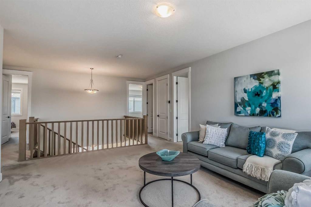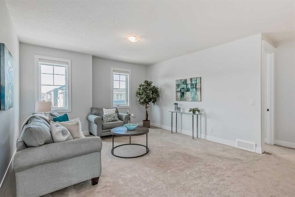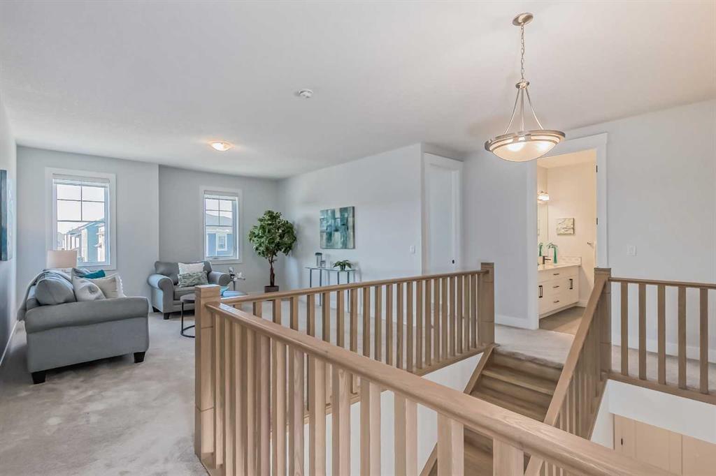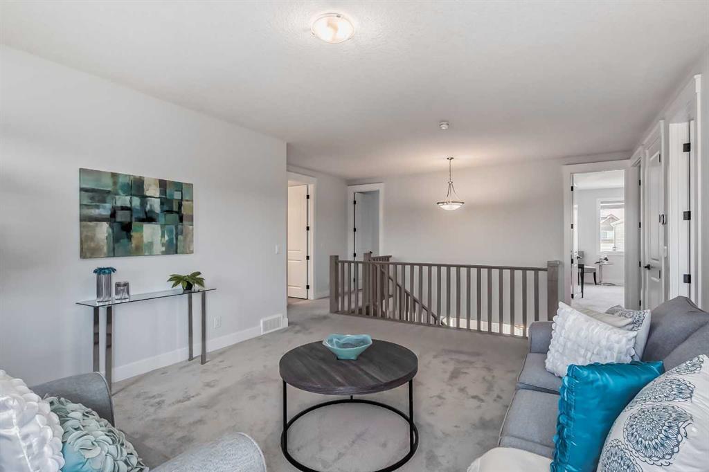 Welcome to this exquisite, newly constructed home located in the prestigious Carrington community. Bathed in natural sunlight and boasting a desirable south-facing orientation, this 2-story residence offers a generous living space of over 2,813 square feet.As you step inside, you'll be greeted by 9-foot ceilings and solid-core 8-foot doors that lend an air of elegance throughout the entire home. The large foyer with a convenient storage closet sets the tone for the thoughtful design and functionality found within. The living room features a seamless open-concept layout, complemented by neutral tones and luxurious vinyl flooring, centered around a cozy gas fireplace. Through the windows, you'll have a captivating view of the backyard.Prepare culinary delights in the pristine kitchen, adorned with white quartz countertops and equipped with top-of-the-line appliances, including a built-in wall oven & microwave, a built-in dishwasher, and a gas cooktop with a range fan.The main floor also offers a well-designed Den and mudroom that seamlessly connects to the attached garage, making daily comings and goings a breeze.Moving to the upper level, you'll find a generously sized bonus room, perfect for family gatherings and entertainment. The primary master suite is a haven of comfort, featuring a walk-in closet and a private 5-piece ensuite for moments of relaxation and pampering. Three additional bedrooms, each boasting ample space, large windows, and walk-in closets, provide comfortable accommodations for the whole family. The upper level is further complemented by a separate laundry area, complete with a washer and dryer, as well as a 4-piece bathroom. With a double attached garage, parking, and storage needs are effortlessly taken care of.The location of this home is ideal, offering easy access to amenities, a grocery store, and planned schools. Additionally, it's just a short 10-minute drive to the renowned CrossIron Mills Shopping Mall and a mere 15-minute drive to the airport. Don't miss the opportunity to make this must-see property your dream home. Arrange a viewing today and experience the epitome of refined living in Carrington! (id:22211)