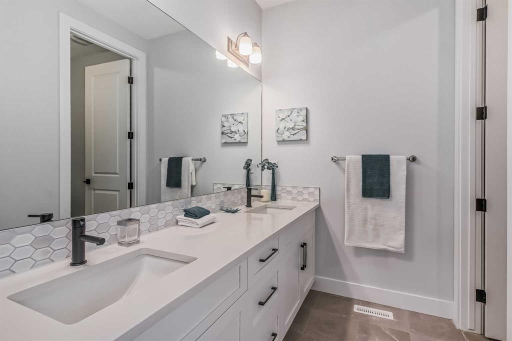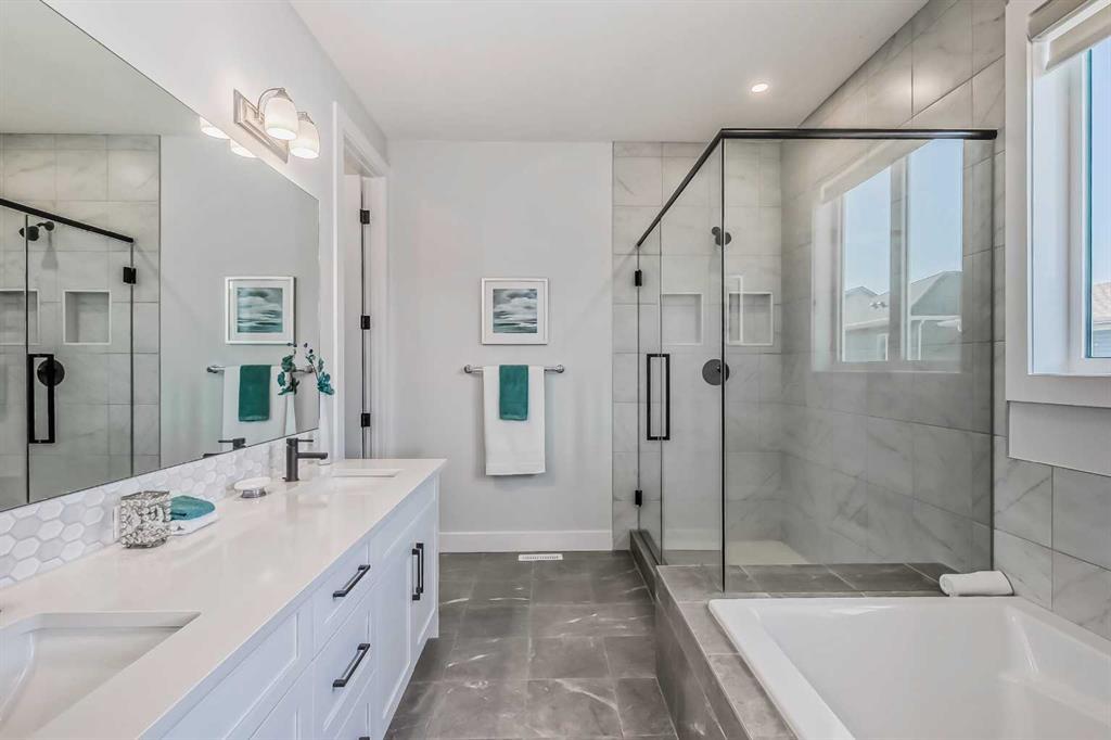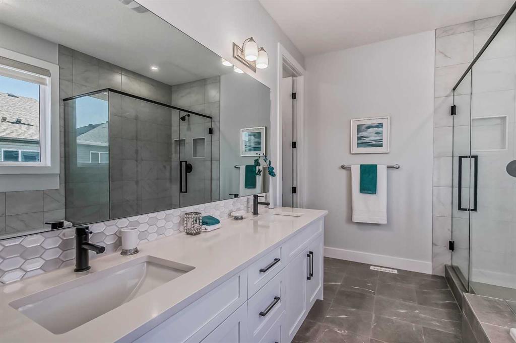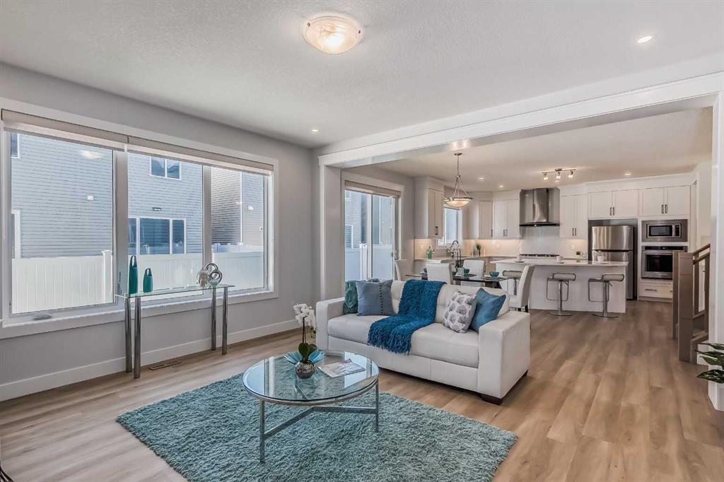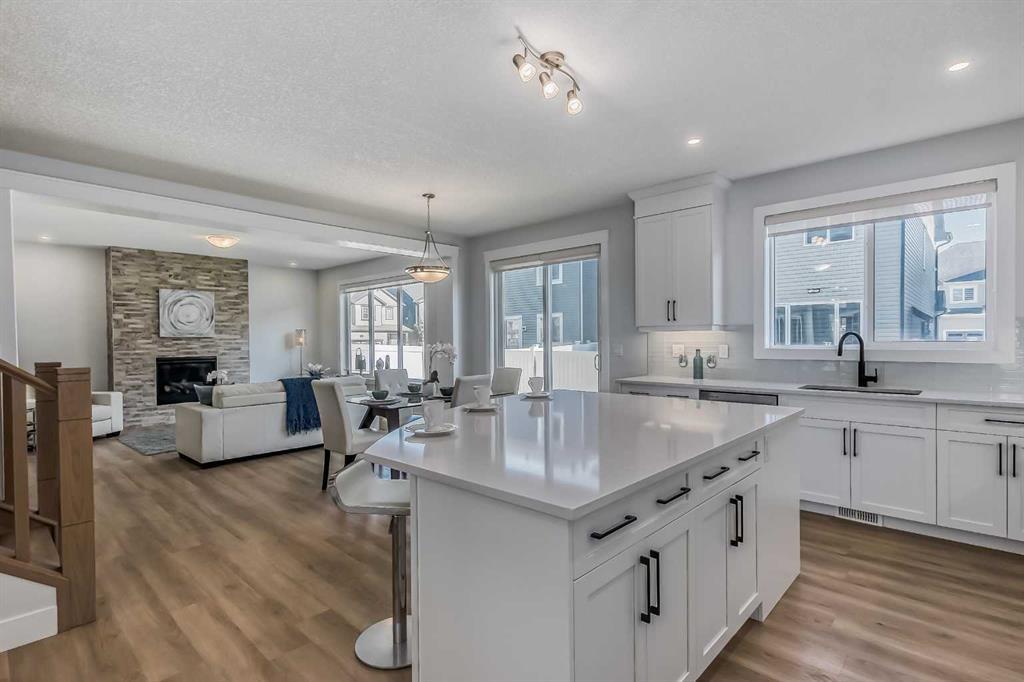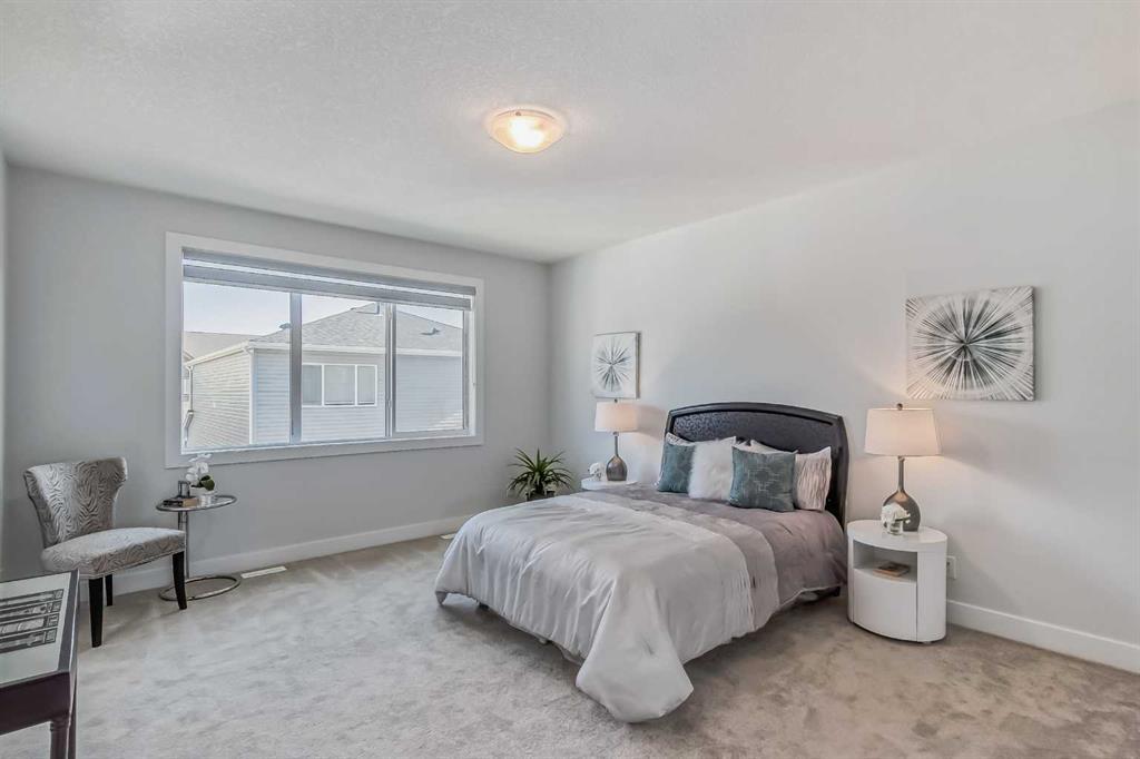 Welcome to this exquisite, newly constructed home located in the prestigious Carrington community. Bathed in natural sunlight and boasting a desirable south-facing orientation, this 2-story residence offers a generous living space of over 2,813 square feet.As you step inside, you'll be greeted by 9-foot ceilings and solid-core 8-foot doors that lend an air of elegance throughout the entire home. The large foyer with a convenient storage closet sets the tone for the thoughtful design and functionality found within. The living room features a seamless open-concept layout, complemented by neutral tones and luxurious vinyl flooring, centered around a cozy gas fireplace. Through the windows, you'll have a captivating view of the backyard.Prepare culinary delights in the pristine kitchen, adorned with white quartz countertops and equipped with top-of-the-line appliances, including a built-in wall oven & microwave, a built-in dishwasher, and a gas cooktop with a range fan.The main floor also offers a well-designed Den and mudroom that seamlessly connects to the attached garage, making daily comings and goings a breeze.Moving to the upper level, you'll find a generously sized bonus room, perfect for family gatherings and entertainment. The primary master suite is a haven of comfort, featuring a walk-in closet and a private 5-piece ensuite for moments of relaxation and pampering. Three additional bedrooms, each boasting ample space, large windows, and walk-in closets, provide comfortable accommodations for the whole family. The upper level is further complemented by a separate laundry area, complete with a washer and dryer, as well as a 4-piece bathroom. With a double attached garage, parking, and storage needs are effortlessly taken care of.The location of this home is ideal, offering easy access to amenities, a grocery store, and planned schools. Additionally, it's just a short 10-minute drive to the renowned CrossIron Mills Shopping Mall and a mere 15-minute drive to the airport. Don't miss the opportunity to make this must-see property your dream home. Arrange a viewing today and experience the epitome of refined living in Carrington! (id:22211)