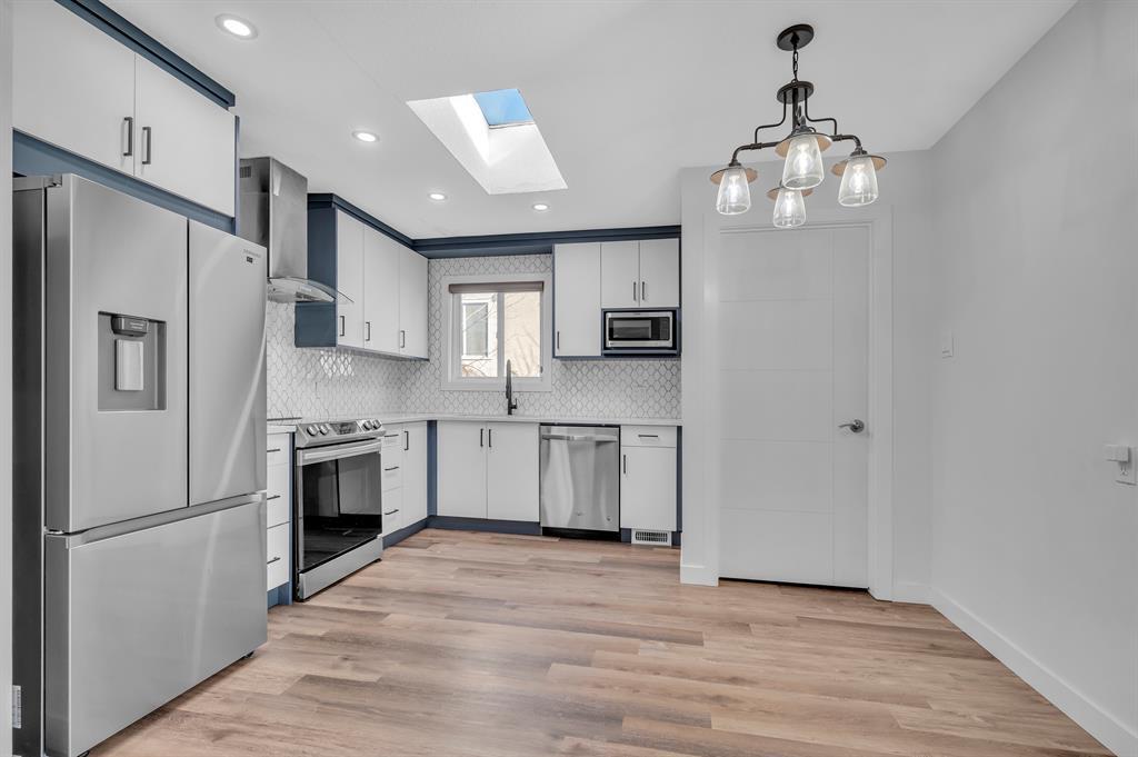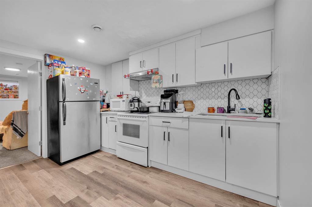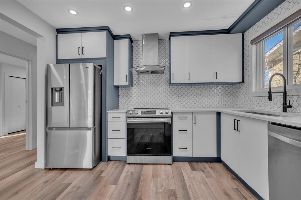 Welcome to 275 Margate Close, a fully renovated home that has been professionally designed and developed with over 2,200 sq. ft. of living space spanning across both levels. The main floor features an impressive open concept living/dining/kitchen area with a brand new designer kitchen equipped with premium stainless steel appliances, porcelain tile backsplash, skylight for natural sunlight and quartz countertops. Additionally, the main floor includes a spacious primary bedroom with a 2-piece ensuite and three generously sized bedrooms complete with custom closets. A main floor laundry facility, new electrical wiring and plumbing throughout the house further enhance the convenience and comfort of the home. The property boasts a lovely, sunny backyard and ample parking. A huge lower-level basement illegal suite with a private side entrance includes a large living room, spacious kitchen with breakfast nook, three large bedrooms, one with a half bath, a full 3-piece common bathroom, and in-suite washer/dryer. The home is equipped with smart features including Google Nest, video bell, smart appliances and everything from siding, exterior pot lights, soffit, fascia, windows, and more has been recently replaced with brand new materials. All renovations were completed with appropriate permits. (id:22211)
