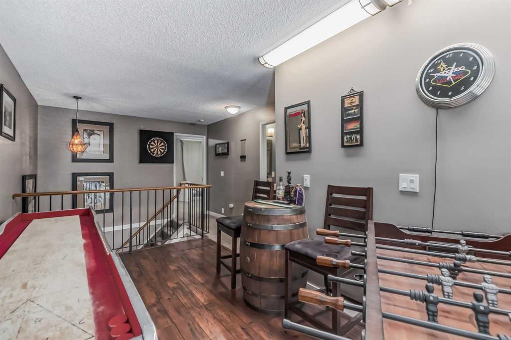 A rare find in the beautiful and well taken care of Berkshire Village. The second you walk through the door you are greeted with a great open feeling, a floor to ceiling wood burning fireplace, ample amounts of natural light with an amazing view of the yard. As you make your way through the rest of main floor you have a dining area the whole family can enjoy, which is overlooking your breakfast bar, living room and functionally updated kitchen. Included on the main floor is a nice half bathroom and access to your double attached garage. Making your way up stairs you will find an oversized Master bedroom and ensuite, the second bedroom and a very unique loft area that can be utilized in so many ways. To cap it all off, this home has a finished basement with laundry area, storage room, second living room and another bonus room that could make for a great gym or work space. Rounding out this home is an outdoor natural gas bbq hook up, low maintenance private yard, walking distance to schools, playgrounds, dog parks and much more. (id:22211)