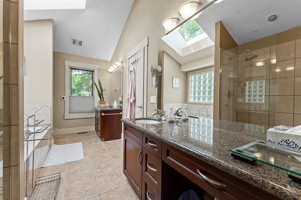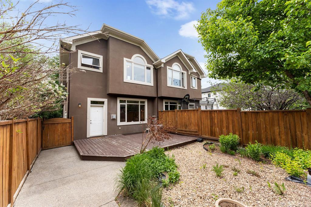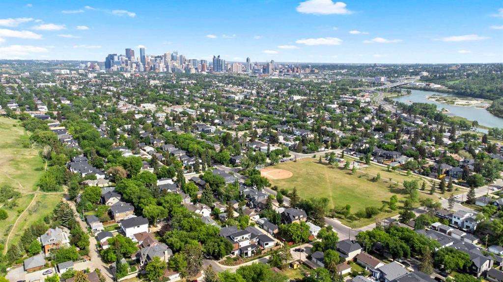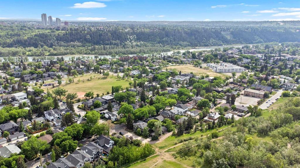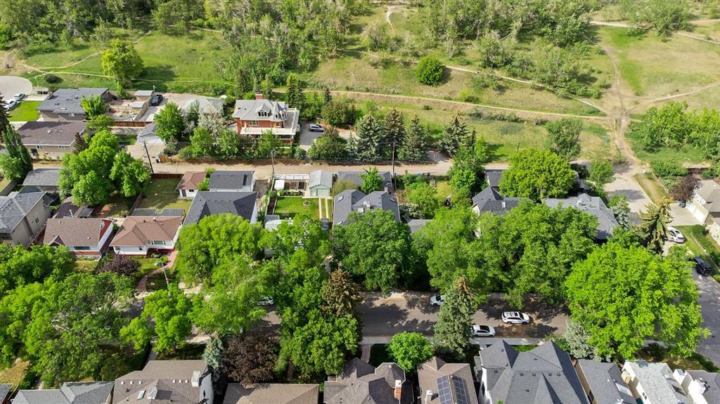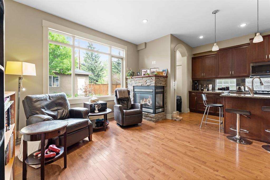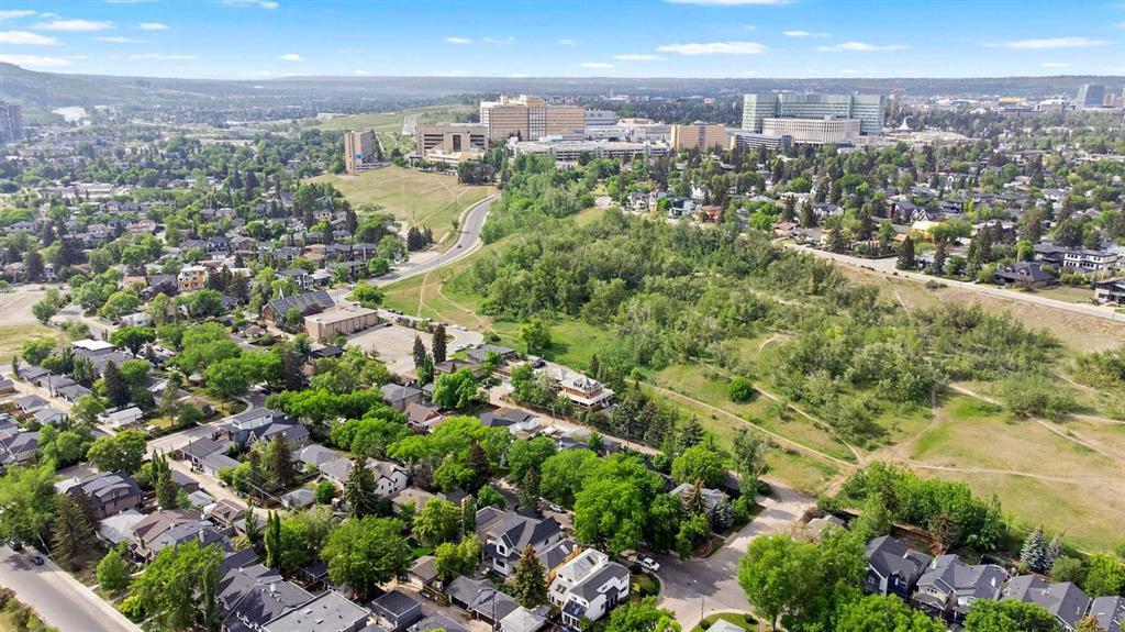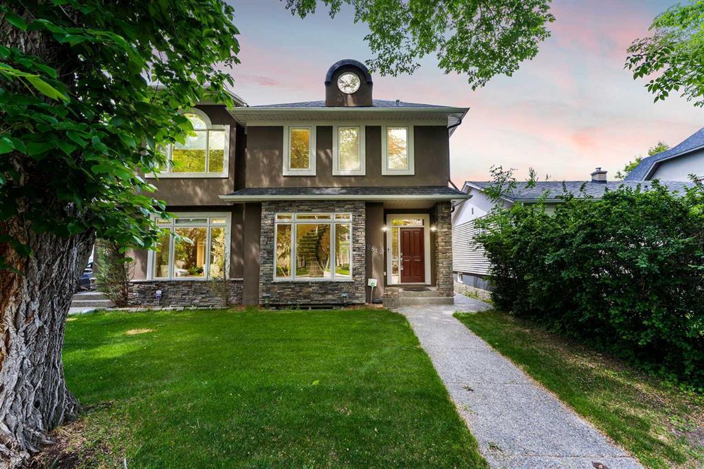 This property offers an exceptional location, combining the convenience of a home and great value. This upscale residence in W.Hillhurst is situated on a picturesque tree-lined street, exuding charm and elegance. Nestled against a natural hillside park and surrounded by prestigious million-dollar homes, this property truly stands out. As you enter, you are greeted by a spacious foyer with beautiful slate flooring. Throughout the main level, maple hardwood floors add warmth and sophistication. The focal point of the home is a striking wrought iron curved staircase, which enhances the grandeur of the large living and dining rooms. The 9-9.5-foot ceilings, finished with a smooth paint-grade surface, create an airy and inviting atmosphere. The second floor boasts vaulted ceilings and three skylights, bathing the space in natural light. Arched entryways with matching wood detailing add architectural interest to the home. The kitchen is a true showstopper, featuring stunning cherry-stained cabinetry, a central island, granite countertops, glass block accents, and a slate backsplash. Equipped with high-end stainless steel appliances and a well-appointed wood pantry, this kitchen combines style and functionality. The family room showcases a captivating two-sided gas fireplace, clad in stone, adding a cozy ambiance to the space. The master bedroom impresses with soaring ceilings and unique windows that allow an abundance of natural light to flood the room. The ensuite bathroom is a luxurious retreat, complete with heated floors, dual vanities, a dual head shower, and a skylight. A spacious walk-in closet with built-in wood shelving provides ample storage. Additionally, the second floor features a separate laundry room with cabinetry and a sink, as well as two other bedrooms with vaulted ceilings and a Jack and Jill bathroom. All bathrooms are adorned with elegant granite countertops. The fully developed basement offers in-floor heating and provides additional living space, i ncluding a recreational room, a bedroom, and a bathroom. Numerous extras are found throughout the home, including solid custom doors, smart wiring, and custom millwork, showcasing the attention to detail and quality craftsmanship. Outside, the low maintenance yard features a deck, perfect for outdoor entertaining. This property is truly a beauty, combining impeccable design, premium finishes, and an enviable location. (id:22211)