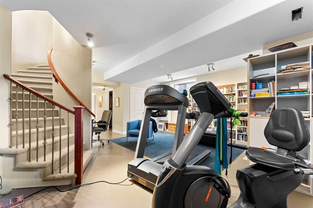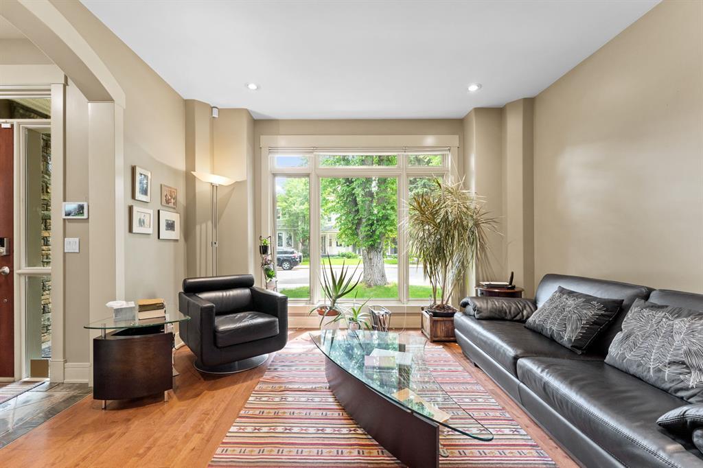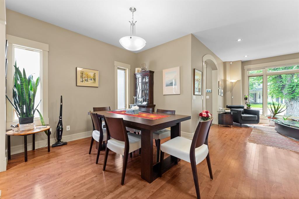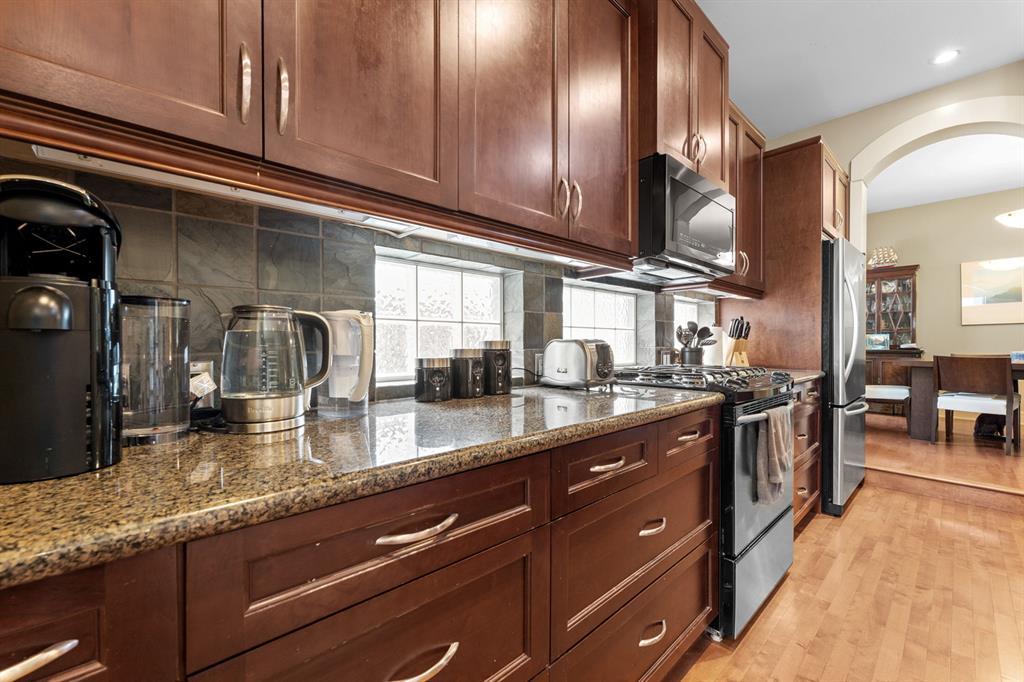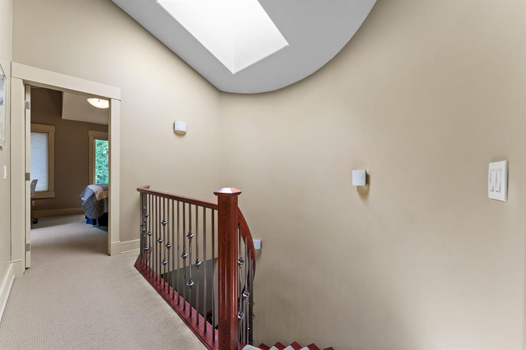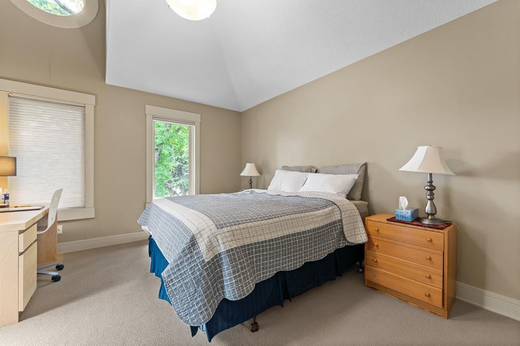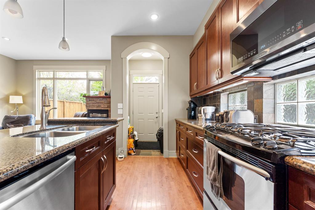This property offers an exceptional location, combining the convenience of a home and great value. This upscale residence in W.Hillhurst is situated on a picturesque tree-lined street, exuding charm and elegance. Nestled against a natural hillside park and surrounded by prestigious million-dollar homes, this property truly stands out. As you enter, you are greeted by a spacious foyer with beautiful slate flooring. Throughout the main level, maple hardwood floors add warmth and sophistication. The focal point of the home is a striking wrought iron curved staircase, which enhances the grandeur of the large living and dining rooms. The 9-9.5-foot ceilings, finished with a smooth paint-grade surface, create an airy and inviting atmosphere. The second floor boasts vaulted ceilings and three skylights, bathing the space in natural light. Arched entryways with matching wood detailing add architectural interest to the home. The kitchen is a true showstopper, featuring stunning cherry-stained cabinetry, a central island, granite countertops, glass block accents, and a slate backsplash. Equipped with high-end stainless steel appliances and a well-appointed wood pantry, this kitchen combines style and functionality. The family room showcases a captivating two-sided gas fireplace, clad in stone, adding a cozy ambiance to the space. The master bedroom impresses with soaring ceilings and unique windows that allow an abundance of natural light to flood the room. The ensuite bathroom is a luxurious retreat, complete with heated floors, dual vanities, a dual head shower, and a skylight. A spacious walk-in closet with built-in wood shelving provides ample storage. Additionally, the second floor features a separate laundry room with cabinetry and a sink, as well as two other bedrooms with vaulted ceilings and a Jack and Jill bathroom. All bathrooms are adorned with elegant granite countertops. The fully developed basement offers in-floor heating and provides additional living space, i ncluding a recreational room, a bedroom, and a bathroom. Numerous extras are found throughout the home, including solid custom doors, smart wiring, and custom millwork, showcasing the attention to detail and quality craftsmanship. Outside, the low maintenance yard features a deck, perfect for outdoor entertaining. This property is truly a beauty, combining impeccable design, premium finishes, and an enviable location. (id:22211)