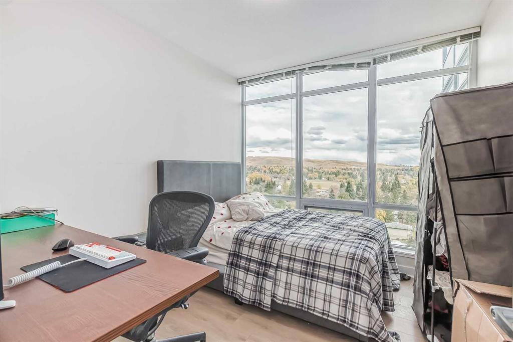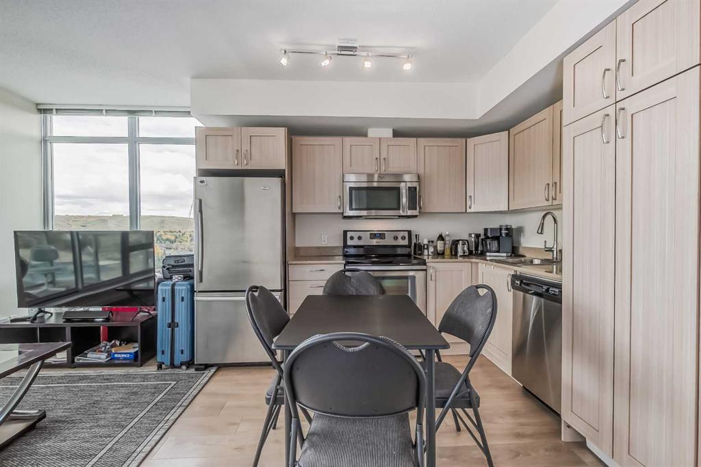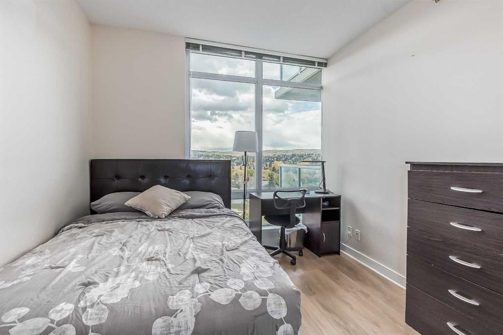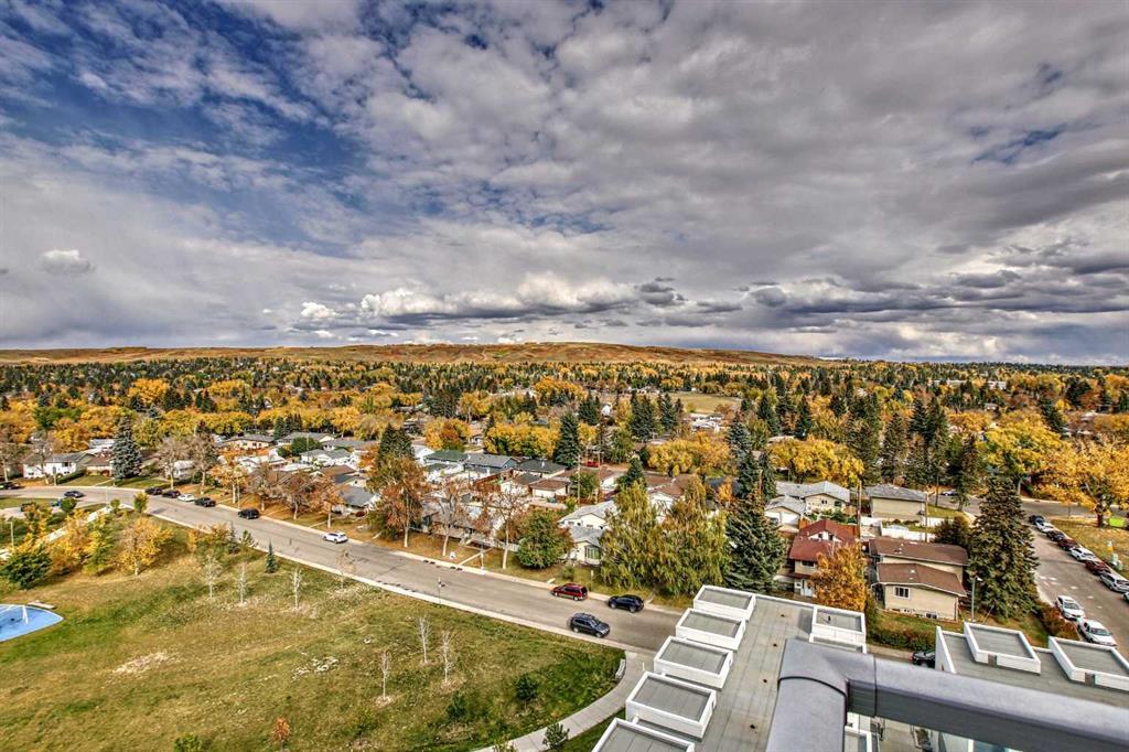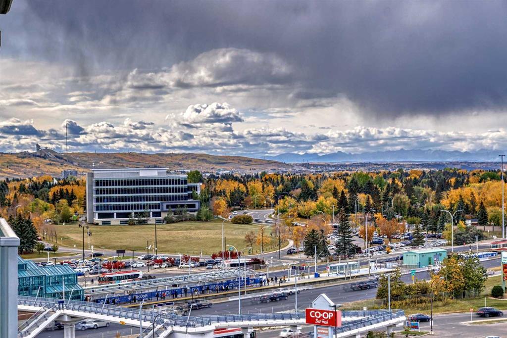 Calling all first-time home buyers and investors who are looking for an inner city apartment. Discover the height of comfort and convenience in this elegant 2bedrooms and 2 bathroom apartment in the University City. An impeccably crafted 638sqft apartment that truly defines urban elegance. Being a corner unit, every room has big windows giving you unobstructed view of Nose hill provincial park, such a beautiful scenery. This unique dwelling, with a spacious open floor plan, is flooded with abundant natural light, reflecting off immaculate stainless-steel appliances and glossy granite countertops. The kitchen provides an intimate setting for cooking and conversation alike, perfect for entertainment. Step into the master bedroom, an oasis of tranquility, complemented by a large en-suite 4pcs bathroom. The other bedroom just off the entrance, is of generous size, offers flexibility for family or guests as there is another 4pcs bathroom dedicated to it. A dedicated laundry enhances functionality while the outdoor entertaining area and private balcony invite effortless living. Enjoy awe-inspiring views from your balcony or any room overlooking nearby hills and north Calgary. 1 titled underground parking is yours, so you don’t have to bother wiping snow off your windshield. The property's prime location ensures you're just steps away from shopping centers, parks, and an array of restaurant. Public transportation, train station, university, sports fields, and a library add to the convenience, catering to all lifestyles. The apartment's potential for rental income increases its appeal for investors and homeowners alike. Call your favorite Realtor! This won’t last long. All Furnishing can be included in the sale at a reasonable price. Parking is titled and storage is assigned. (id:22211)