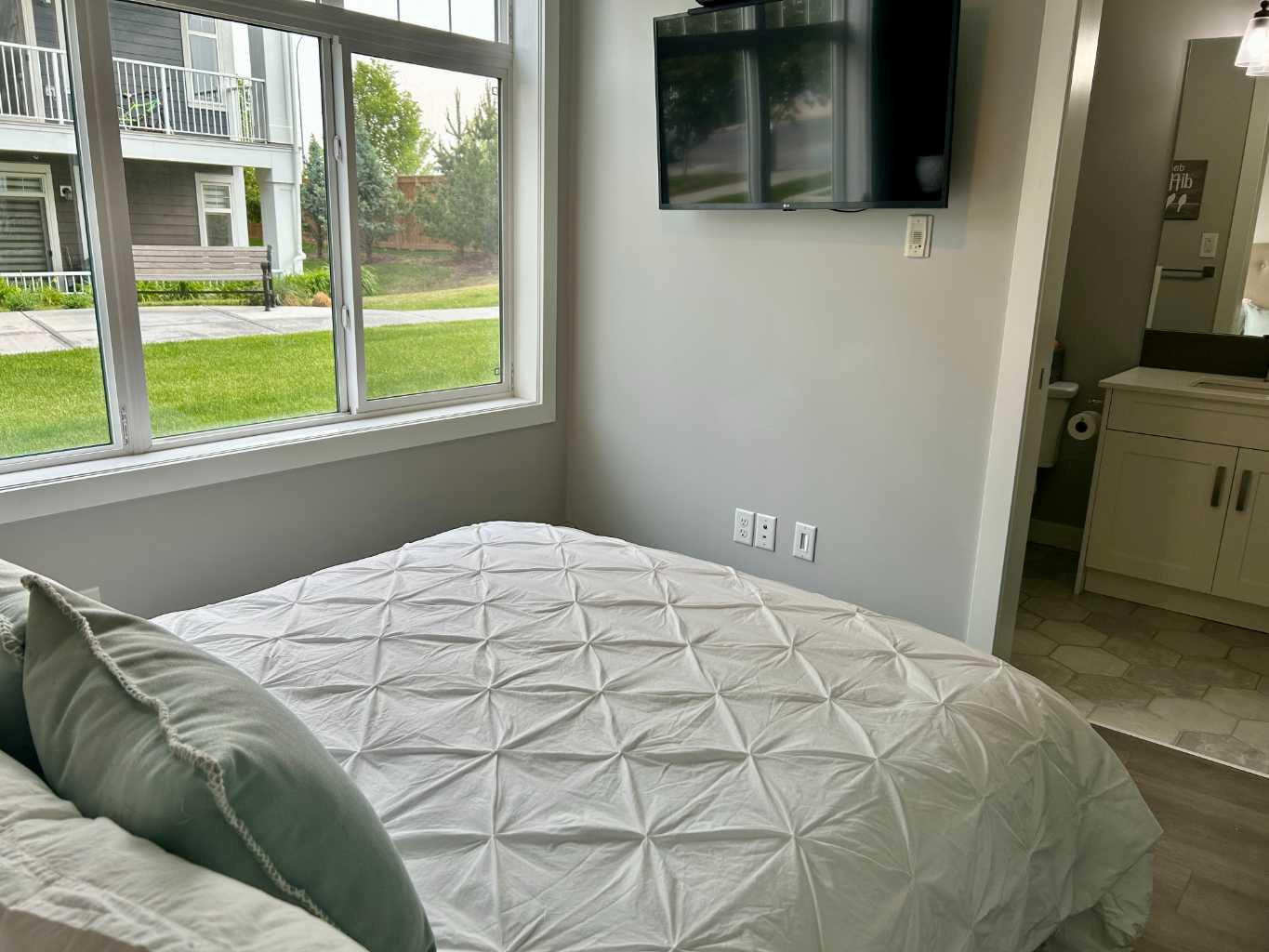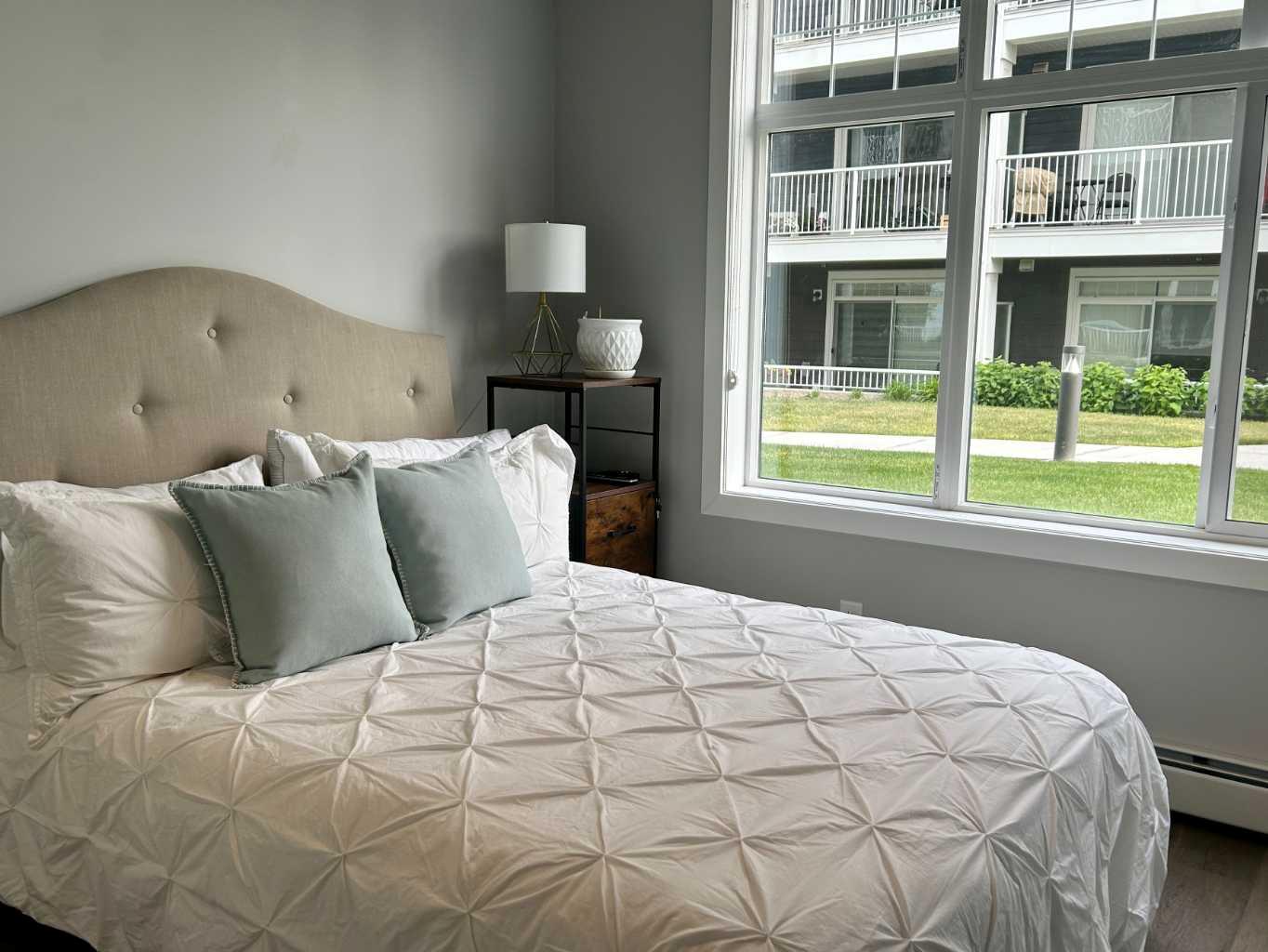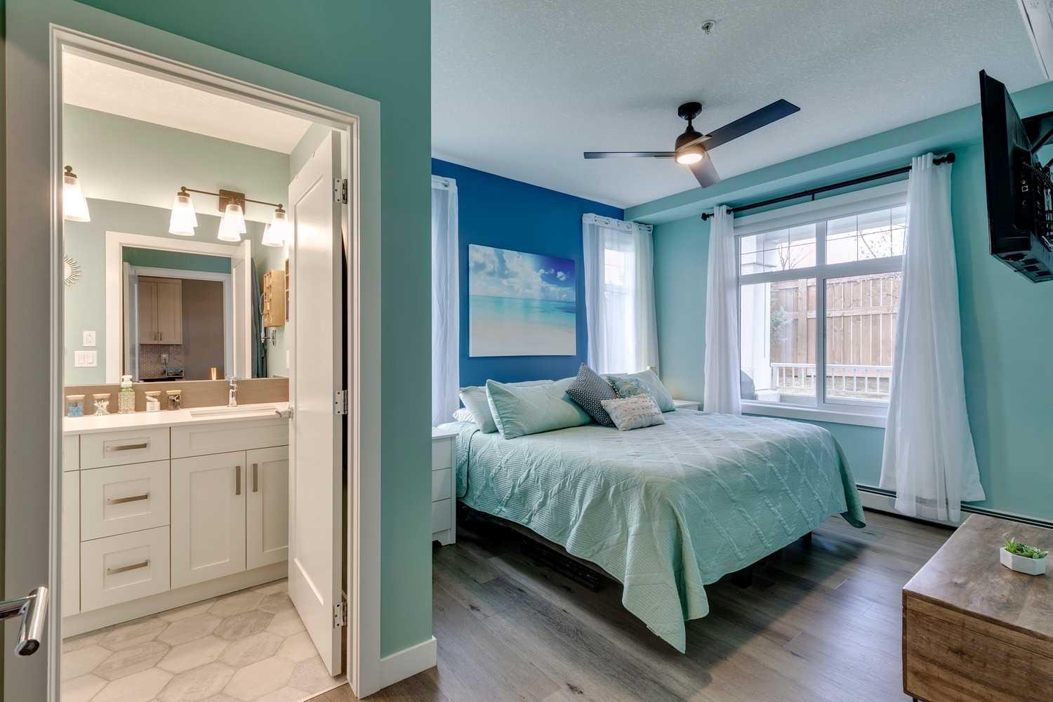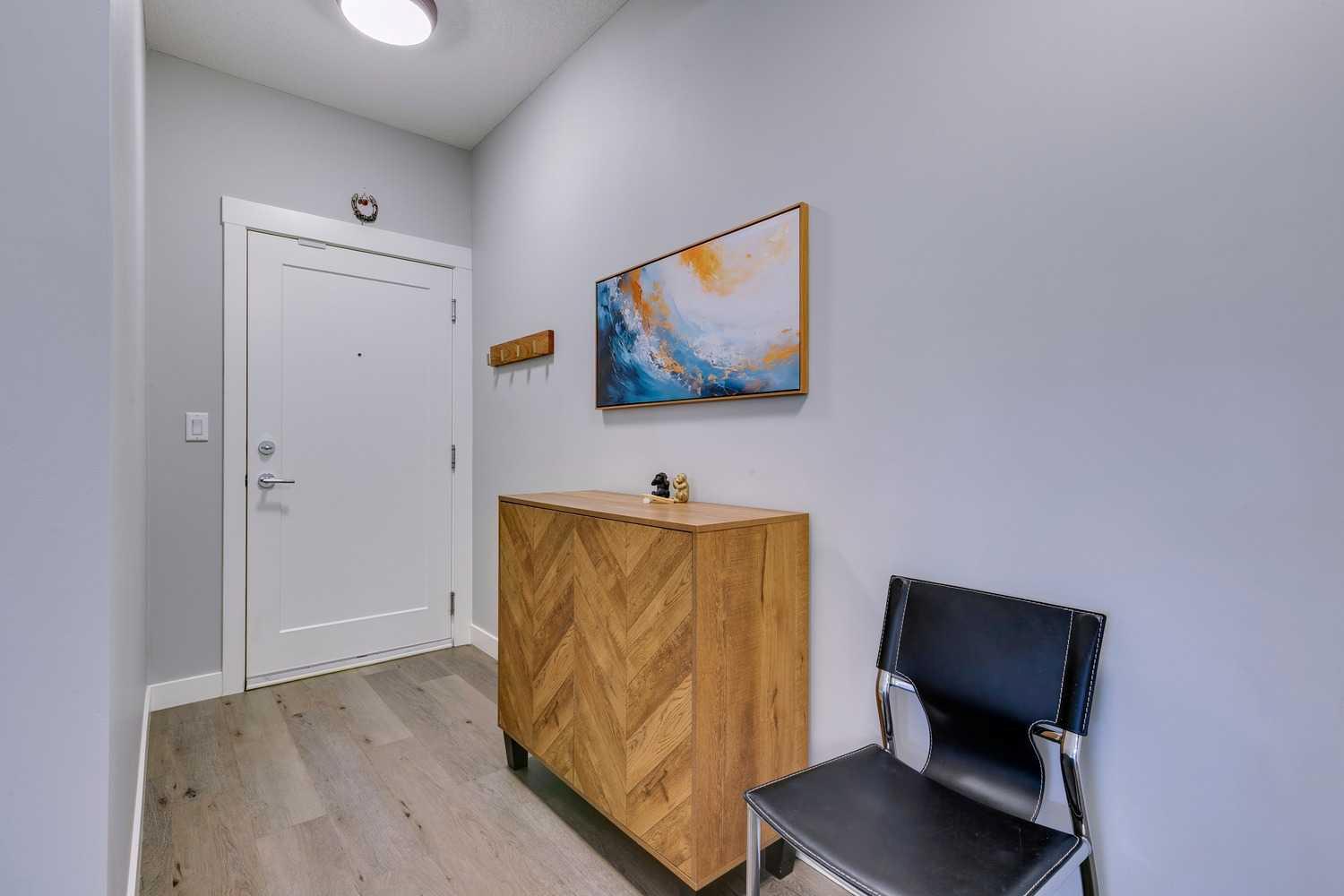 Welcome to this beautifully upgraded, move-in ready main floor corner suite in the heart of Auburn Bay—complete with full air conditioning, two spacious bedrooms, and two elegant bathrooms. Boasting soaring 9’ ceilings and an abundance of natural light from oversized dual-pane windows, this bright and airy home offers a modern open-concept layout with a premium finish throughout. Every detail has been thoughtfully upgraded, making it a true standout. The showstopping kitchen is a chef’s dream, featuring a massive quartz island with designer pendant lighting, sleek white soft-close cabinetry with built-in work space, and a full suite of high-end stainless-steel appliances—including a built-in wall oven, induction cooktop, chimney-style hood fan, built-in microwave, bar fridge, and upgraded refrigerator. The inviting living area centers around a cozy electric fireplace and flows seamlessly onto the oversized, private balcony—ideal for relaxing or entertaining. Enjoy a natural gas BBQ hookup and the comfort of the award-winning makeup air system that delivers fresh, filtered air year-round to every suite. The bright and spacious primary suite offers a large walk-in closet and a spa-inspired ensuite with a glass-enclosed shower and dual undermount sinks set in a quartz vanity. The generously sized second bedroom is located next to the full main bath, making it ideal for guests or a home office. This incredible home also includes double tandem titled underground heated parking and an extra-large private storage unit—a rare and valuable bonus! Situated in Auburn Bay, one of Calgary’s most desirable lake communities, residents enjoy exclusive lake access, scenic walking trails, beautiful parks, nearby shops and restaurants, South Health Campus Hospital, and a true sense of community. This pet-friendly complex offers both comfort and convenience in a luxurious setting. Don’t miss your chance to own this exceptional home—book your private showing today!