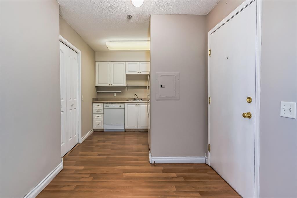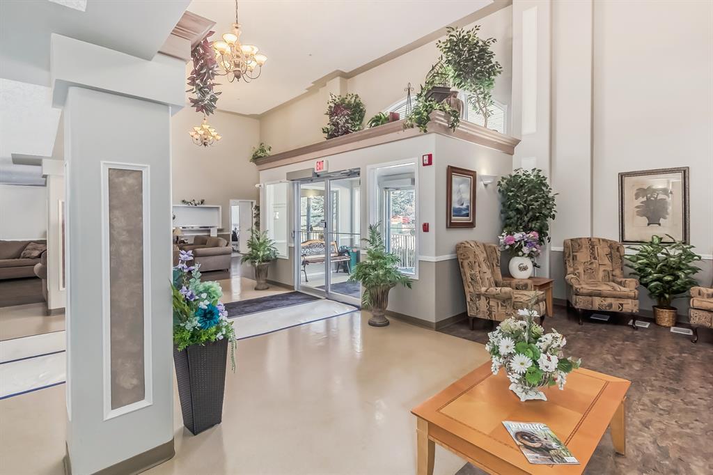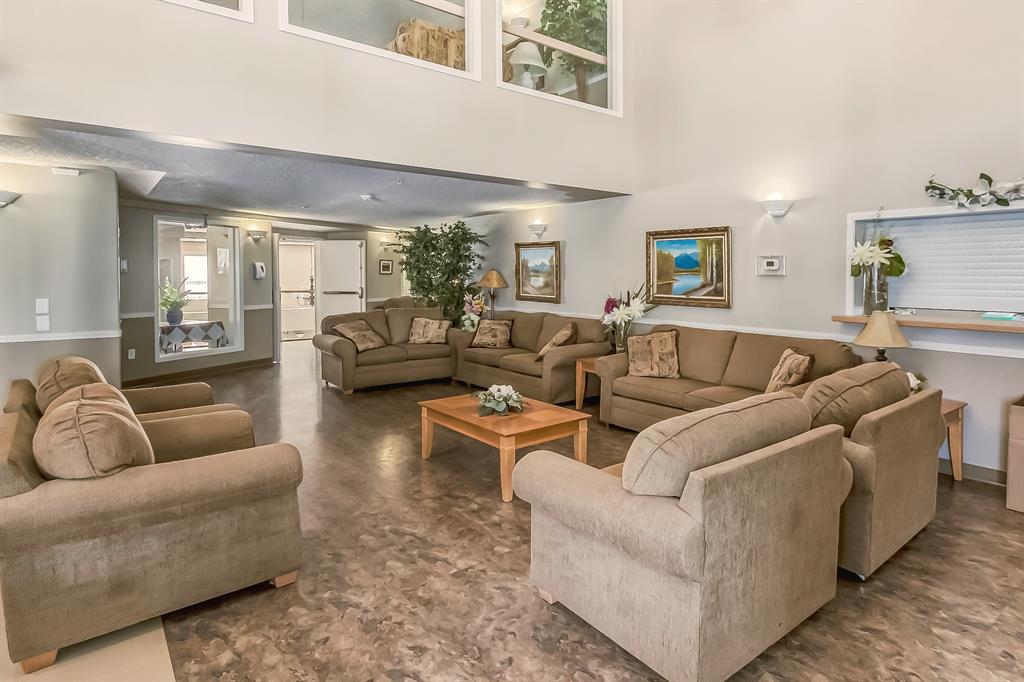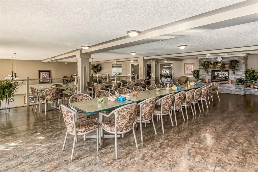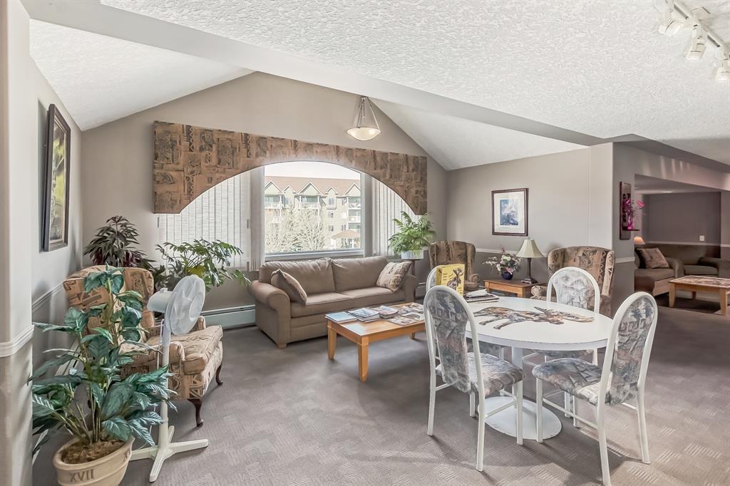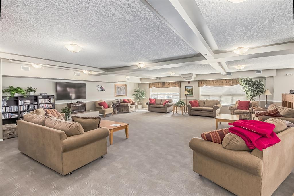 Well-maintained 60+ building! Clean and bright unit on main floor. This unit includes a large Bedroom, Full Bathroom, Kitchen & Dining area, in-suite Laundry and your own Enclosed Balcony off the living room. It is freshly painted and New carpet installed in bedroom. There is Emergency Button inside unit. Each floor has a common activity area and fireplace. There are Dining Room, Library, Computer Room; Exercise Room, Craft, Recreation Room. Roof Top Terrace on 4th floor. Guest Suite is also available to owner’s visitors. Great location close to C-train, Fish Creek Park, Golf and Shopping. A must see! (id:22211)