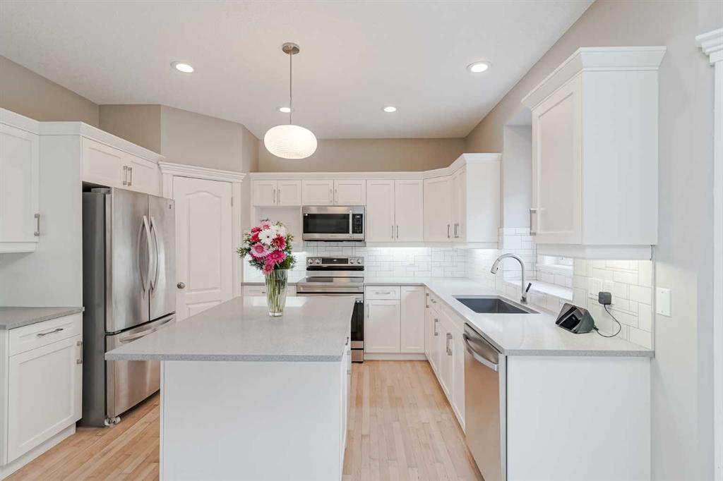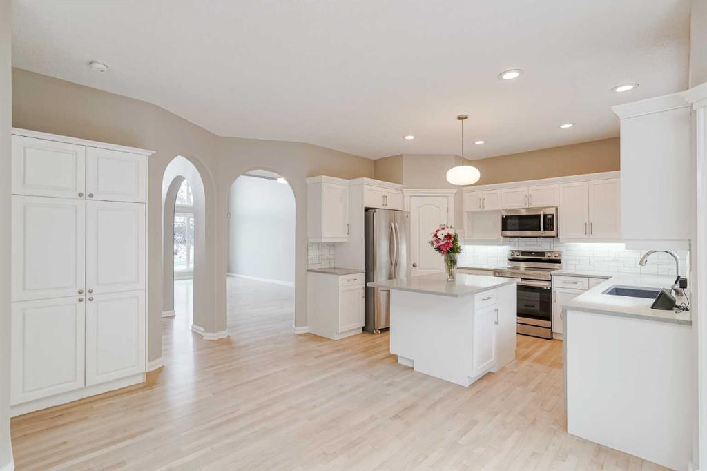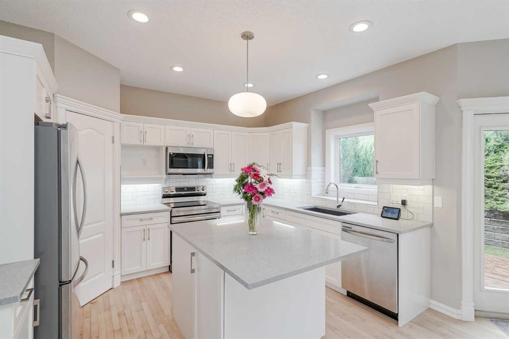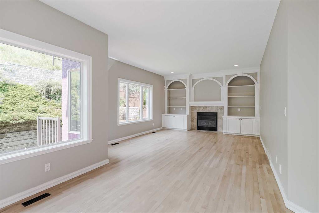 Welcome to this extraordinary property on the highly coveted Patterson Boulevard - don’t be fooled by the name; this is an END road with no through traffic. This 2900+ square foot FIVE bedroom home backs onto a reserve and complete privacy where you are likely to spot wildlife, and the landscaping possibilities are endless (upper deck with panoramic views, anyone?). Step inside and appreciate soaring ceilings in the entranceway and front living room; note this home has been freshly painted (2023) on the main and upper floors. Refinished hardwood flooring (2021) spreads throughout the main level with a light tone, complementing the finishes and multiple built-in features in the family room. Just past the formal dining area, you’ll come to the newer kitchen (2021), which features white shaker cabinetry and a centre island punctuated by elegant quartz countertops. All of the stainless steel appliances were replaced in 2023. Adjacent is the massive family room crowned by a fireplace surrounded by built-ins while the natural light gently illuminates this home area. The peaceful backyard and reserve are everpresent from all the windows here. Rounding out the main floor is a two-piece powder room, a spacious den, and a laundry/mudroom, which leads to the super clean, freshly painted, high-ceiling garage. Upstairs are four generous-sized bedrooms, two full bathrooms (renovated 2023), and a bonus room/loft. The primary bedroom is enormous and also features a walk-in closet with built-ins. The basement is fully developed and features nine-foot ceilings with a family room, a full bathroom, a large bedroom with an egress-size window, and a flex room currently set up as a golf room! (id:22211)