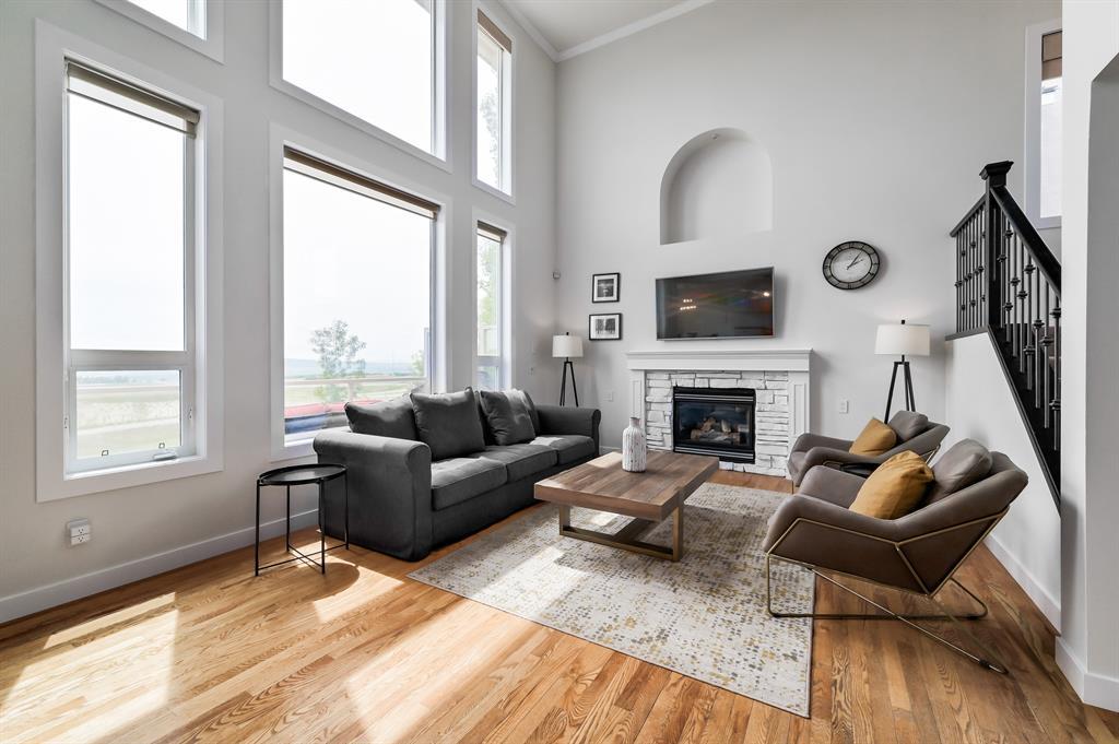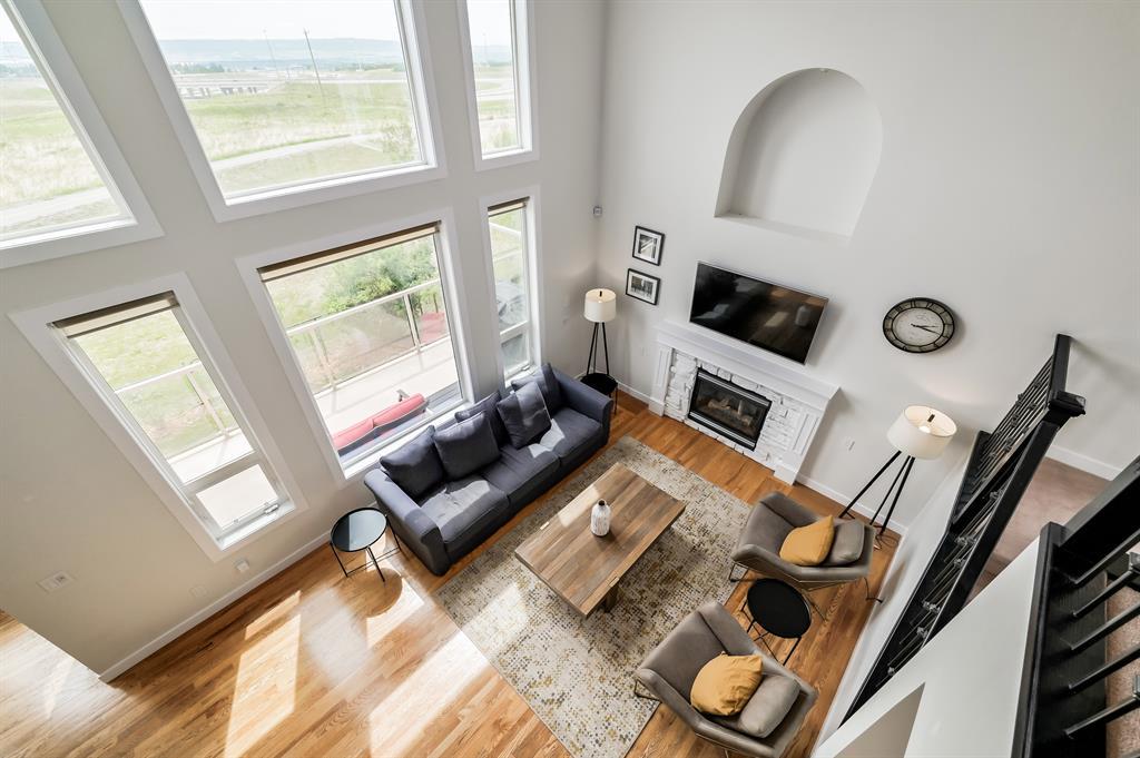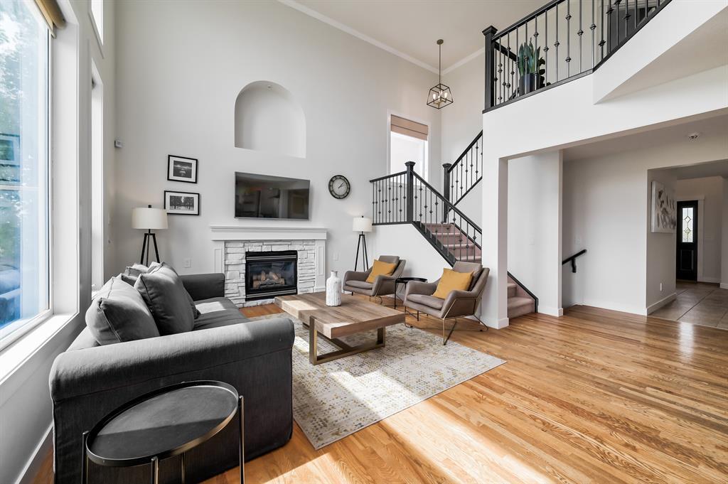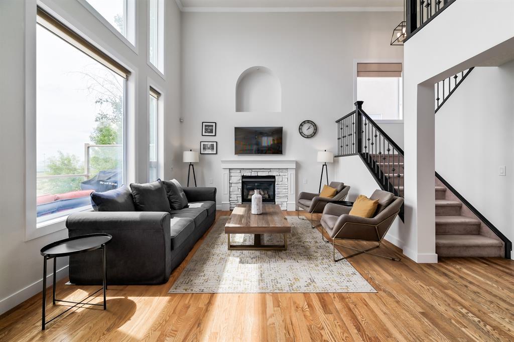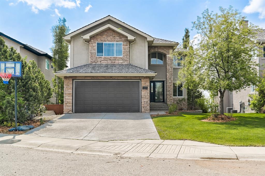 Welcome to this stunning 2-storey executive home nestled in the desirable neighbourhood of Royal Oak, with breathtaking mountain views! As you step inside, you are greeted by a spacious entryway that leads you to a large office featuring custom built-in shelving, perfect for those who work from home or desire a dedicated workspace. Moving further into the home, the expansive living area awaits, boasting 18-foot ceilings and floor-to-ceiling windows that frame the incredible views, allowing natural light to flood the space. The kitchen has been tastefully designed and fully renovated, offering an abundance of storage space, stainless steel appliances, a kitchen island with granite countertop, updated backsplash, and tasteful open shelving and a large pantry. Seamlessly flowing from the kitchen is the dining area, which leads out to a deck on the main floor, providing an ideal space for outdoor entertaining and enjoying the surrounding beauty. Finishing off the main floor is a bathroom, laundry room as well as a large mudroom. Upstairs, you will discover a spacious primary bedroom featuring an ensuite bathroom and a walk-in closet. Additionally, there are two more well-appointed bedrooms, a full bathroom and a lofted bonus area, which can serve as an additional living area. The walk-out basement has undergone partial renovations, offering a comfortable retreat. It features a spacious family room with a gas fireplace, custom built-in cabinets, new carpeting, and an office workspace with a built-in desk. Additionally there is a flex space perfect for a home gym. This exceptional home not only offers stunning mountain and downtown views, but also creates a peaceful oasis in the backyard. With forested areas close by, wildlife frequent the area. Additionally, the backyard features a rough-in for a hot tub, providing the perfect opportunity to create a relaxing retreat right at home. Situated near a serene pond and endless walking and bicycle trails just steps away, this h ome is an ideal haven for nature enthusiasts. Furthermore, its convenient location offers quick access to Stoney Trail, granting easy connectivity to major amenities, shopping centres, excellent schools, and the C-train/transit system. Don't miss the opportunity to make this exceptional home your own and experience the best of both nature and urban living. (See supplements for full list of renovations). (id:22211)