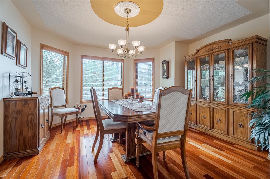 OPEN HOUSE: Saturday August 19, 2023. Welcome to this exquisite Scenic Acres residence, offering over 3800 square feet of meticulously designed living space. Situated in a serene neighborhood, this home provides a perfect combination of luxury, functionality, and convenience with Central Air Conditioner. As you step inside, you'll be greeted by a spacious and elegant interior. The main floor features a den, ideal for a home office or a quiet reading space, along with a convenient 3-piece bathroom and a large laundry room. This level also have a formal dining room and a formal living room perfect for entertaining guests or large family gatherings. The heart of the home is the well-appointed kitchen, featuring stunning quartz countertops, sleek cabinetry, and high-end appliances. Whether you're preparing meals for your family or hosting a dinner party, this kitchen is sure to impress. Adjacent to the kitchen is a family room, providing a comfortable space to gather and spend quality time with loved ones. On the upper level, you'll find three generously sized bedrooms, including a master suite that offers the ultimate retreat. The master bedroom boasts a luxurious 6-piece ensuite bathroom, complete with a double vanity, a soaking tub, a separate shower, and elegant fixtures. Another 5-piece bathroom serves the remaining bedrooms, ensuring comfort and convenience for all. The beautifully developed basement adds valuable living space and versatility to the home. It features a well-appointed 4-piece bathroom and a bedroom, providing extra convenience for guests or family members. The basement can be transformed into a recreational area, a home gym, or a media room, catering to your specific needs and preferences, It also has a roughed-in Sauna. The double attached garage ensures secure parking and ample storage space, accommodating your vehicles and additional belongings with ease. Outside, the home is surrounded by a stunning treed backyard, creating a peaceful and private oasis. Enjoy outdoor activities, gardening, or simply relax in the serenity of nature. This home is ideally located close to schools, making it a great choice for families. Additionally, it provides easy access to major transportation corridors such as Nose Hill, Crowchild Trail, and Stoney Trail, simplifying commuting within Calgary and beyond. Furthermore, the CTrain is within walking distance, offering convenient public transportation options. With its impeccable finishes, including quartz countertops, hardwood, tile, and carpet flooring, and a tiled roof. This Scenic Acres home exemplifies elegance and sophistication. Don't miss the opportunity to make this exceptional residence your own and experience the perfect combination of comfort and convenience in an idyllic setting. (id:22211)