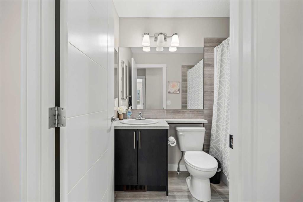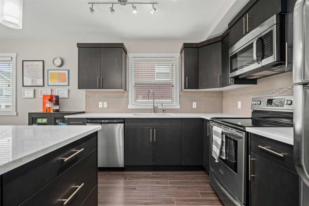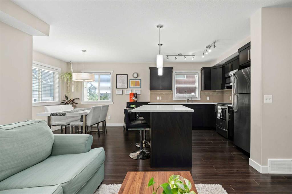 Introducing an extraordinary 4-bed, 2.5-bath townhome that epitomizes spaciousness and functionality. Perfectly blending convenience, comfort, and style, this property awaits you in a family-friendly community. Discover an array of features designed to fulfill your every need. Enter through a welcoming foyer, showcasing a main-level fourth bedroom, a generous coat closet, and access to an oversized heated garage with ample storage. Park with ease on the full-length driveway or utilize the visitor parking in the complex. Upstairs, an efficient kitchen boasts energy-star appliances, a new microwave hood fan, and sleek quartz countertops. The open concept seamlessly connects the living and dining areas, ideal for entertaining. Natural light pours into this corner unit, creating a bright and inviting ambiance. A spacious half bath, stacked washer and dryer, and storage complete this level. Retreat to the upper floor, where the primary bedroom awaits with its ensuite and walk-in closet. Two additional well-appointed bedrooms and a full bathroom provide ample space. Ideally located, it offers easy access to a future bus stop/LRT station and effortless commutes. Enjoy proximity to grocery stores, daycare centers, fitness facilities, and more. Calgary Airport, Stoney Trail, Costco, and CrossIron Mall are all conveniently nearby. Nature enthusiasts will appreciate the picturesque pond and pathway system, while a nearby park offers outdoor activities. The community exudes a welcoming atmosphere and is within walking distance of a future school location. Don't miss this versatile and convenient townhome in an incredible community. Book your showing today! https://youtu.be/cpKtLk6tOJg (id:22211)