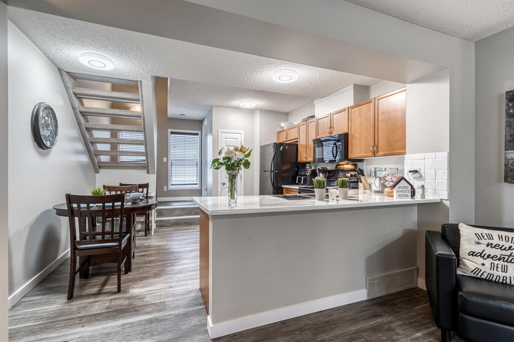 *Open House Saturday, June 3rd, 10 am-12 pm* This charming and spacious two-story townhome located in the peaceful Mosaic complex is a must-see! It features two bedrooms and one and a half bathrooms and is perfect for families or anyone who loves a community-centric lifestyle. The home has been recently updated with brand new floors installed in 2022 throughout all the living spaces, giving the house a fresh and modern appeal. You'll appreciate the stylish look and durability of the new flooring. One of the unique features of this property is that it has A/C, which is a rare find in this complex and is perfect for staying cool during the hot summer months. This townhome also includes a lovely front patio and is perfect for hosting parties, barbecues, or just relaxing while taking in the fresh air. You'll enjoy unwinding in the peaceful neighborhood with your family and friends as you take in the beautiful surroundings. This townhome also boasts low condo fees, so there's no need to worry about breaking the bank. You'll also enjoy the HOA amenities that come with it.And if that's not enough, this home is pet-friendly with board approval, which means you can bring your furry friends along with you! Located in the serene community of New Brighton, this townhome is just a stone's throw away from major shopping areas such as the Mackenzie Towne Shopping Centre and 130 Ave, making it super convenient for day-to-day errand running. It is also within easy walking distance of parks and schools, making it easy for families to access all the amenities they need. (id:22211)