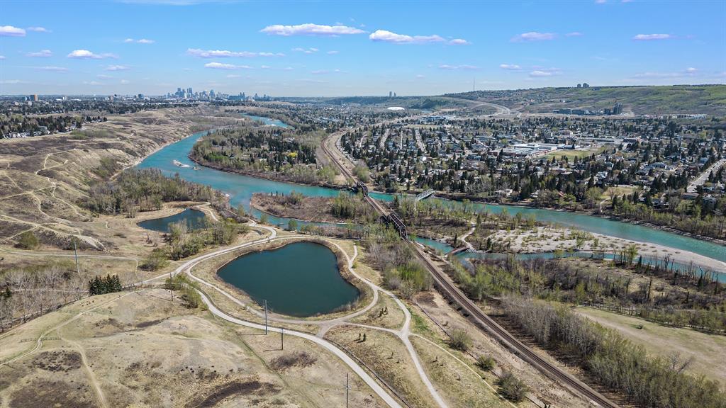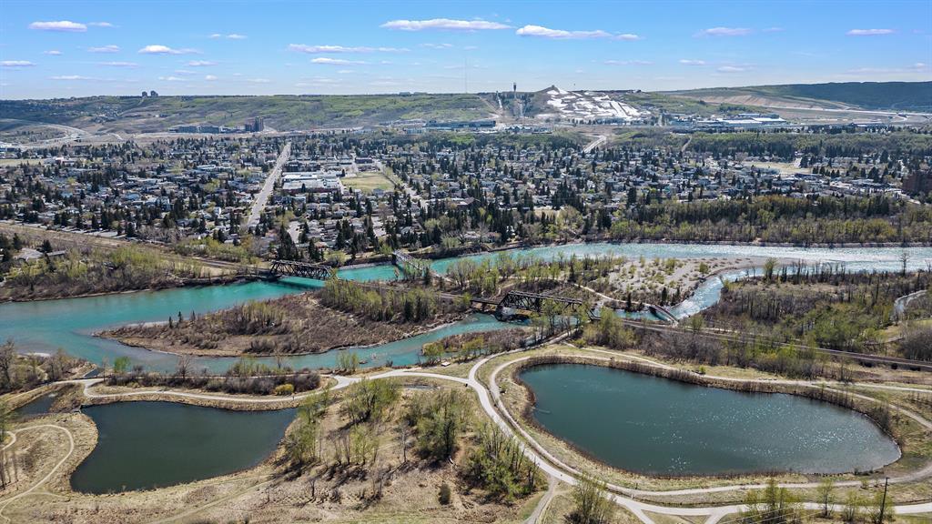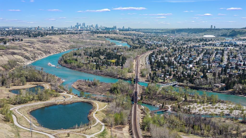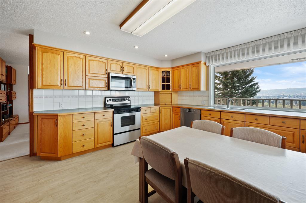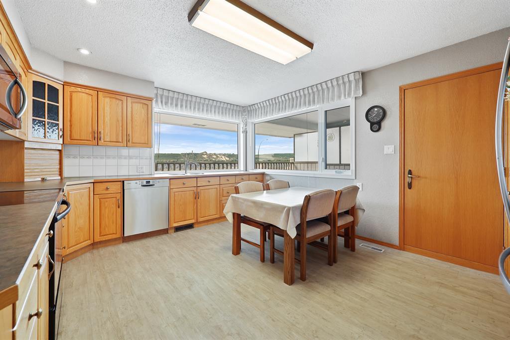 HUGE PRICE REDUCTION OF $75,000 TO SELL!!! Back on the market due to financing! A very rare find! "ON THE THE RIDGE!" VIEW VIEW VIEW! Very few homes come up for sale in this premium ridge lot location....featuring a large 1,472 SQFT raised bungalow on a large 60ft wide frontage offering AMAZING and STUNNING south river valley escarpment, mountain and partial downtown views! Directly overlooking Bowmont Park and the Bow river below is an outstanding quiet location encapsulating nature right at your door step!! The house is a "diamond in the ruff", and is very well preserved and has strong bones but requires some cosmetic TLC updating and well worth the effort in this premium ridge location! The special features of this house include the ground level open foyer leading you to a large family room c/w a large wet bar, a brick encased gas fireplace, accented by wood wainscoting throughout highlighted by great views from this floor. The main or upper floor features a wide open sunny south floor plan, a large combination dining/living room with outstanding views, a large eat-in country kitchen highlighted by beautiful light oak cabinets and panoramic views. Adjoining to the kitchen is an enclosed seasonal 20ft wide sun room with gorgeous views. There are three good sized bedrooms, including a large primary bedroom with a 6 piece en-suite. Also featured is an oversized attached double garage, all located on a very large 60ft wide lot, in a private and very, very quiet end of this ridge location! Please view the drone video and interior video tour of this lovely, well preserved home! (id:22211)