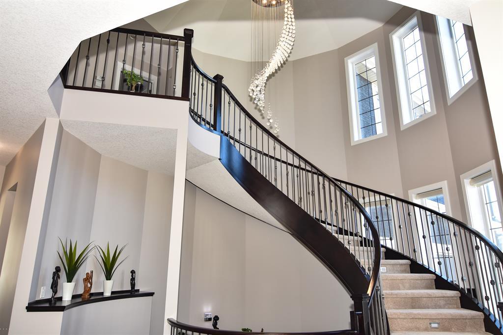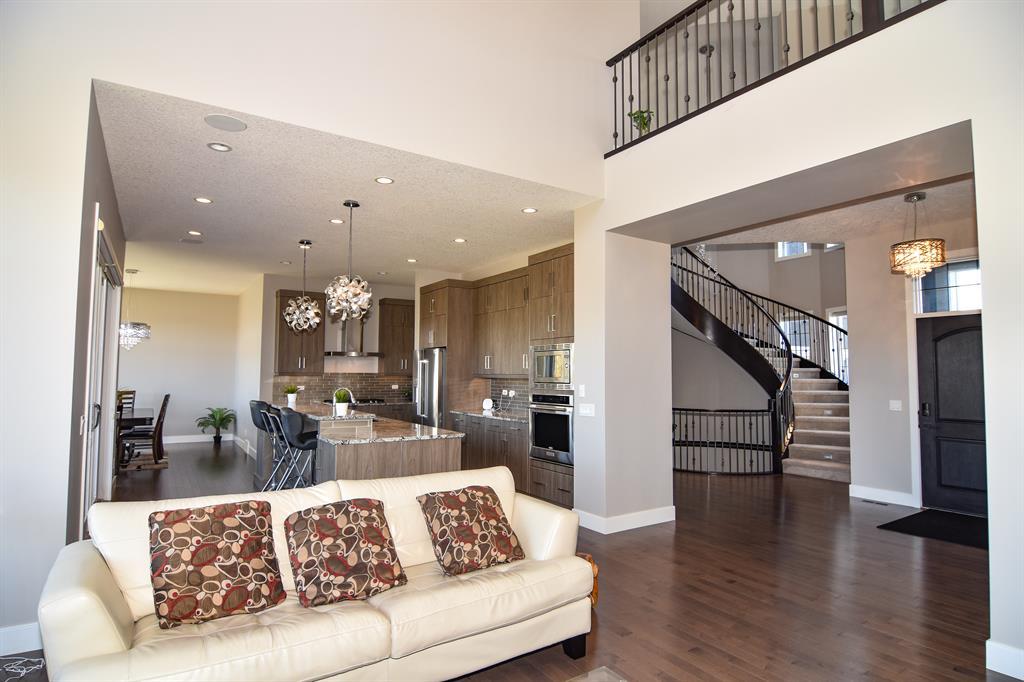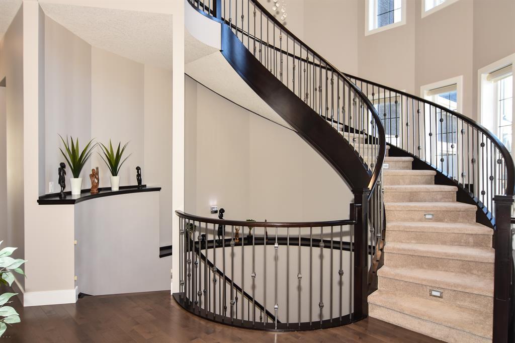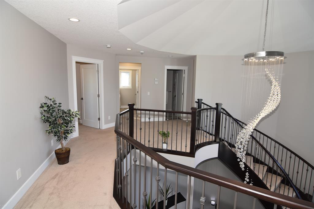 Featuring an exemplary custom-built design on a quiet and private cul-du-sac, on an over-sized lot surrounded by greenspace, walking paths & protected wetlands. As you enter, you will be swept away by the elegant spiral staircase from the lower level to the upper level, creating a castle like feel! This wide-open plan features a spacious Great room with a soaring 17' ceiling with massive windows to let the light shine in. A chef's dream kitchen equipped with top-of-the-line cabinetry, granite countertops, quality appliances, a huge walk-in pantry and an abundance of cabinets and countertop space. Imagine preparing meals at your large granite top island while gazing out through the large windows at your expansive yard. The stately Dining room is perfect for accommodating a large table for entertaining. Relax while working from home in your home office, with enough room for two people to comfortably work. The Upper level has 3 massive bedrooms all with walk-in closets, complete with closet organizers. The Laundry room with it side-by-side washer and dryer also offers a convenient folding counter. The Master bedroom is an elegant suite, designed for royalty, with a walk-in dressing room and closet with organizers, that will make any fashionista proud and a chic ensuite, featuring a deep soaker tub, large shower, a double vanity with marble floors and separate water closet. The additional Bonus room open to below is great for family movie night or game time. A Jack in Jill bathroom and another 4 pc bathroom complete the upper level. The unfinished Basement has a separate side entrance providing endless possibilities with the sunshine windows, rough- ins for 2 bathrooms, a rough-in wet bar area and additional laundry hook ups. There are 2 furnaces with dual-zone heating allowing each level to control its own comfort. The Ranches of Silverado has only 74 executive style lots and boasts stunning architecturally controlled properties. Located only 25 minutes to downtown Ca lgary on the new Stoney Trail, 30 Minutes to Bragg Creek, plus easy access to the mountains. This area is a hidden gem in SW Calgary. (id:22211)