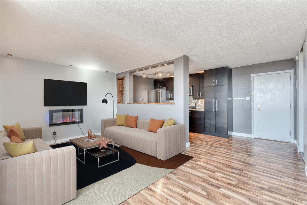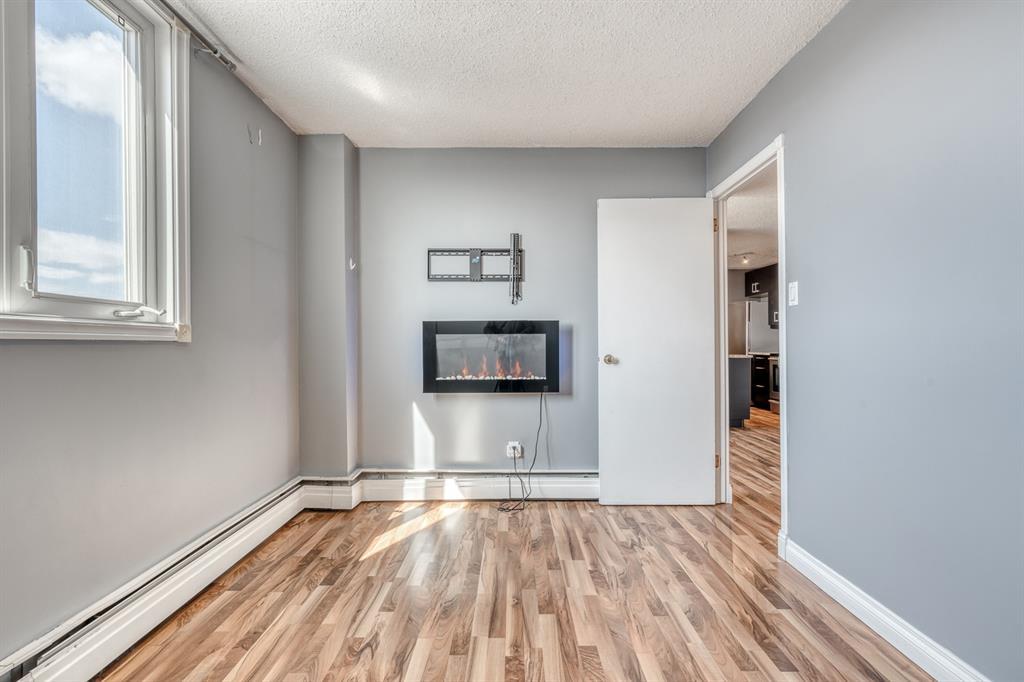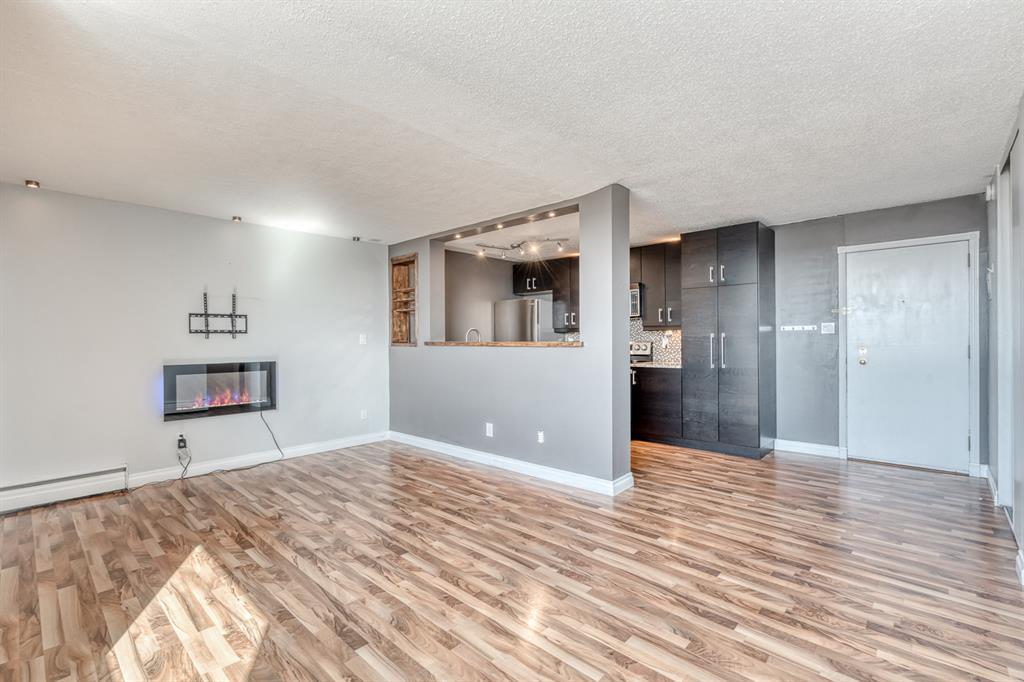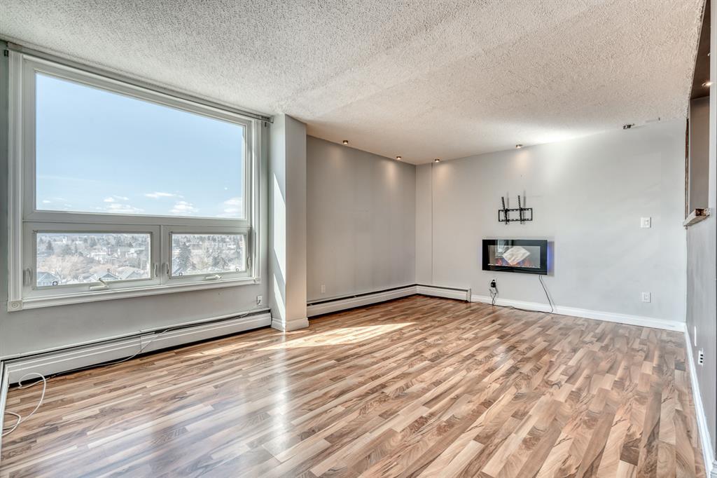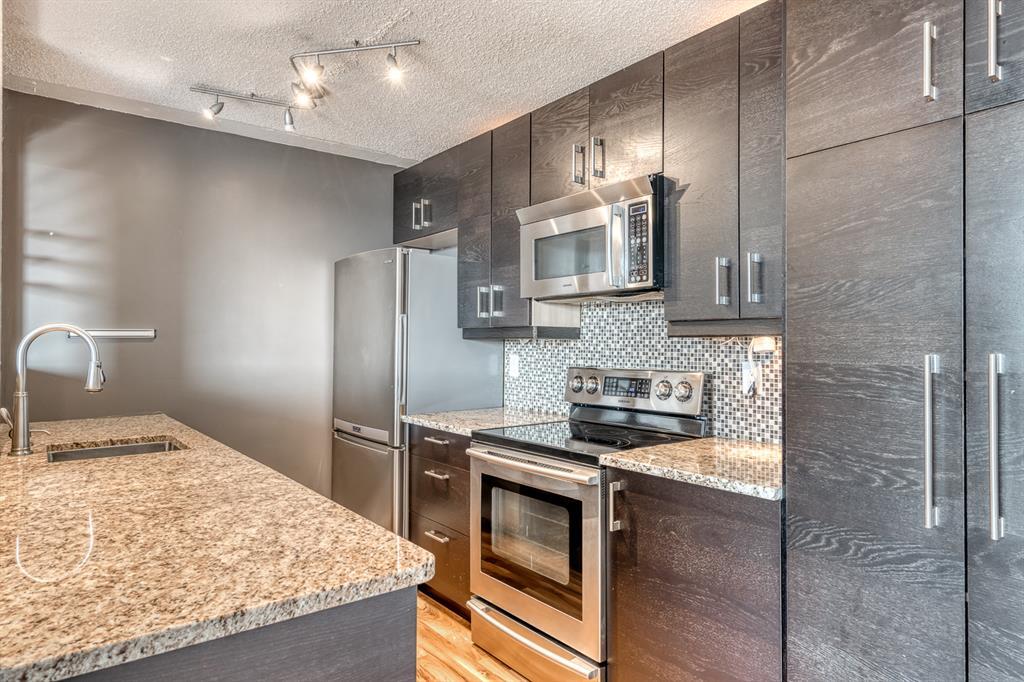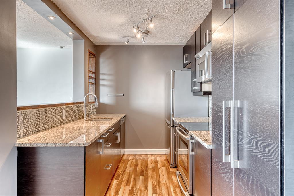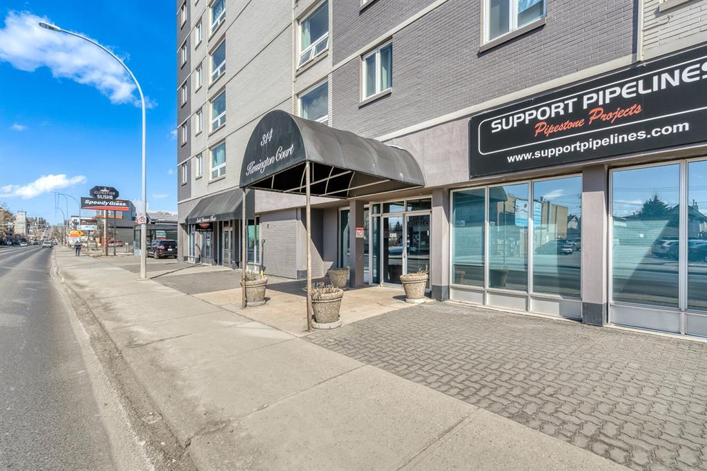 This home is perfect! Great for any type of buyer – first time home buyer, investor, young professional or couple. Whoever you are, you’ll enjoy this cute and exceptionally maintained 1 bed, 1 bath apartment in the heart of Hillhurst. Located on the top floor, this West facing unit has incredible views, and fabulous natural light. The home features an updated kitchen with full-size, stainless-steel appliances, granite countertops, a large space for prepping and plenty of storage. The most recent renovation has opened the wall separating the kitchen and living area, allowing all the natural light to flood into the kitchen, as well as provide a space for an eat-up breakfast bar. With a generous amount of space to comfortably fit a full kitchen table and living room set, this space makes the home feel a lot bigger than the square footage suggests. Enjoy entertaining in the exceptional space, featuring an electric fireplace and an open floor plan throughout. The laminate flooring is carried into the single bedroom, where you’ll find a matching electric fireplace. It also features plenty of space for a queen or king bed, and built in closet storage. Completing the unit is an updated 4-piece bath. The laundry facility can be found on every floor of the building (one set for each floor), and there is one assigned parking stall for the unit. If you're looking to be in the heart of this beautiful city, then this is the property for you! Walking distance to all amenities, including shopping, restaurants, grocery stores, coffee shops, schools, parks and a quick drive (or scooter ride) to downtown Calgary. Enjoy everything Hillhurst and Kensington has to offer! (id:22211)