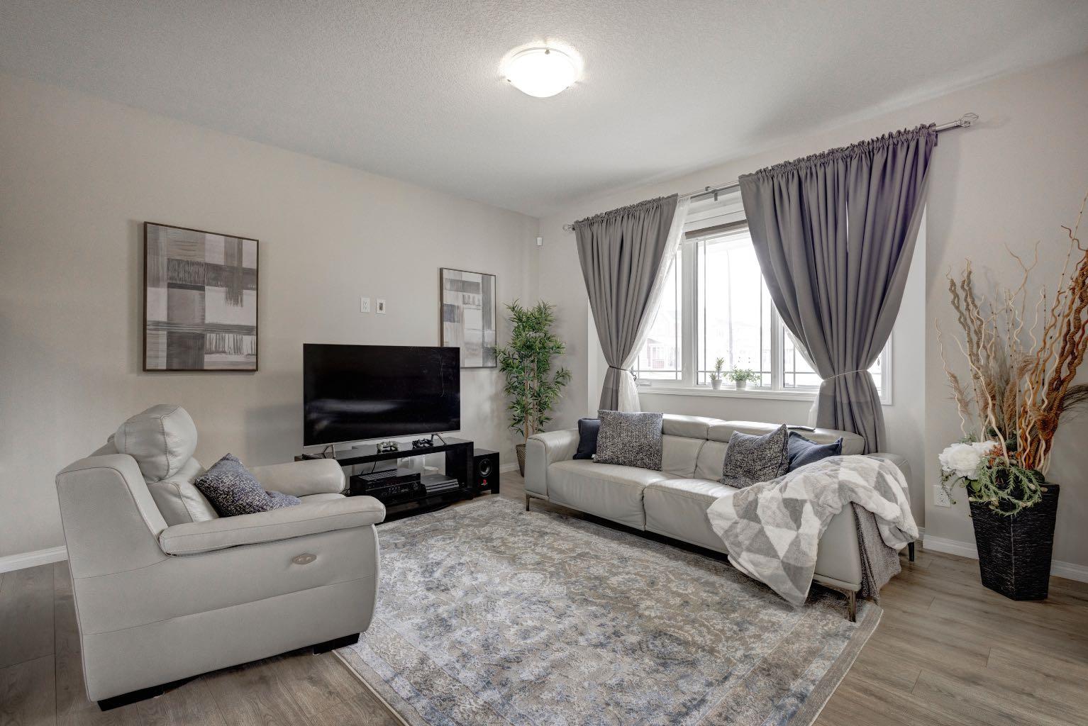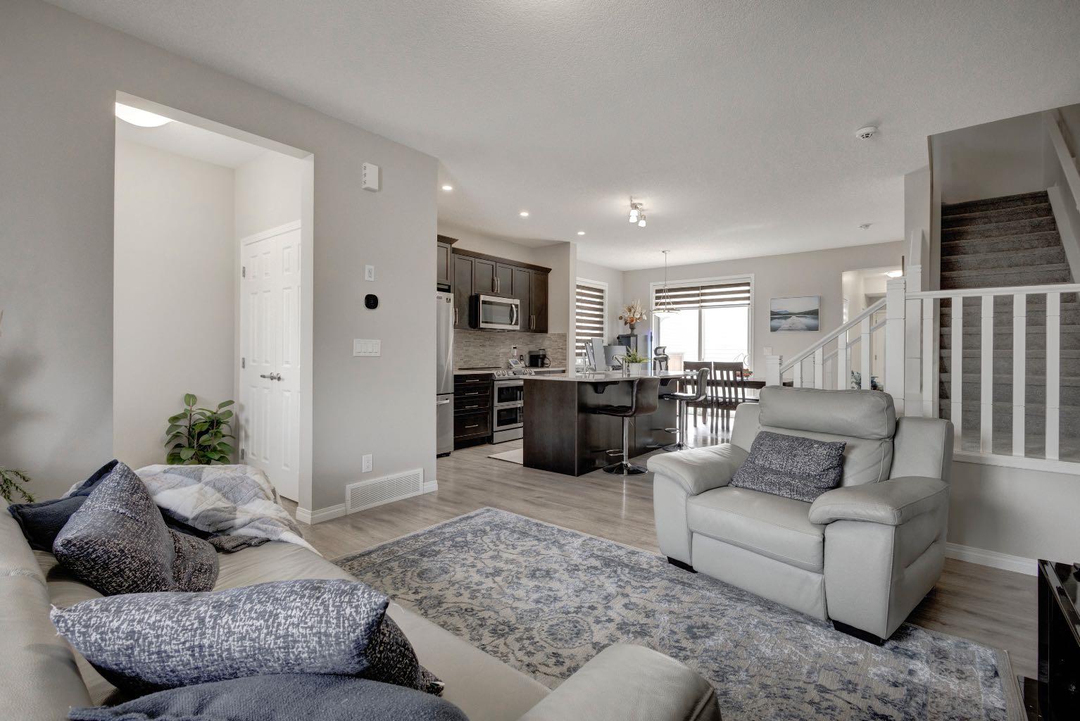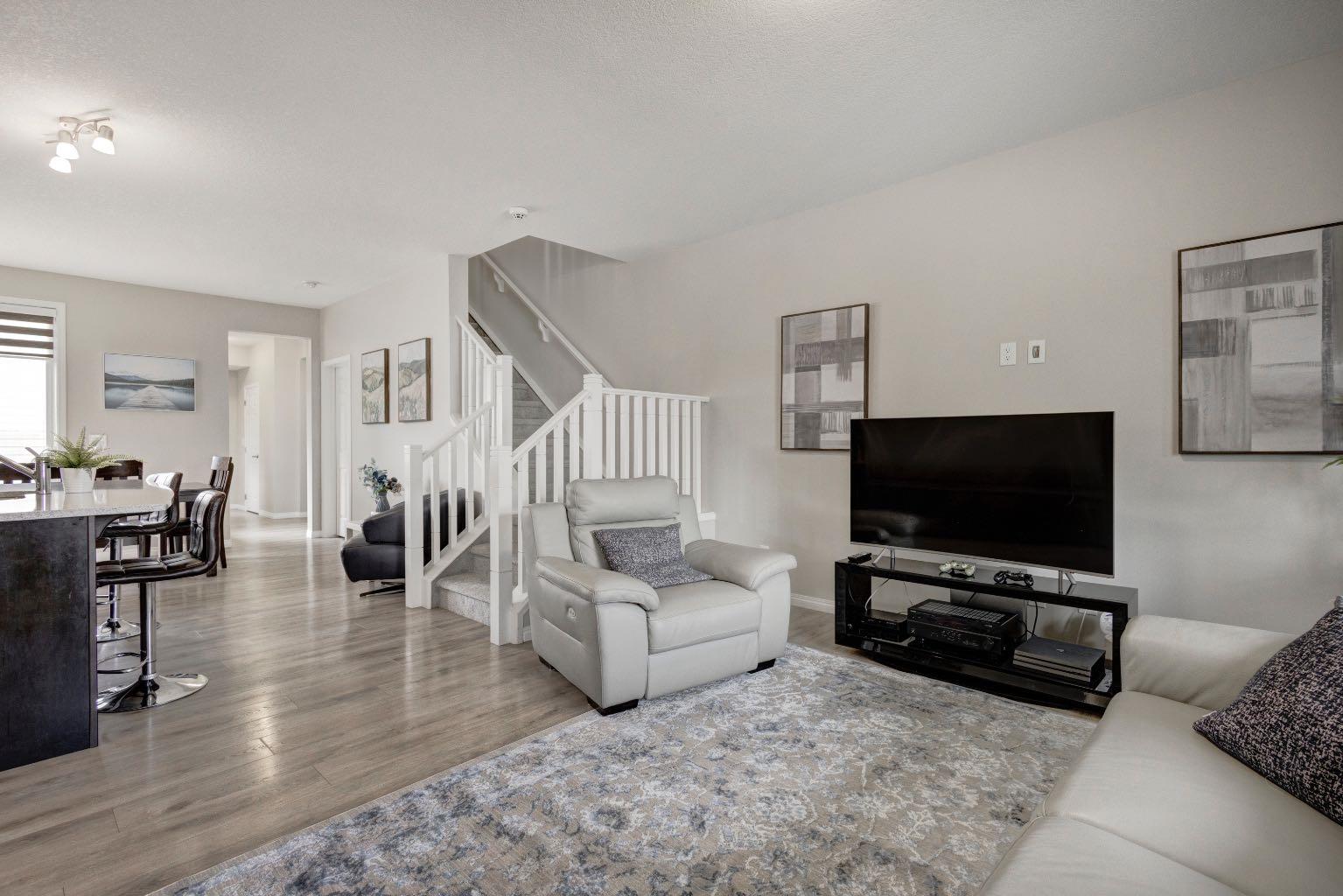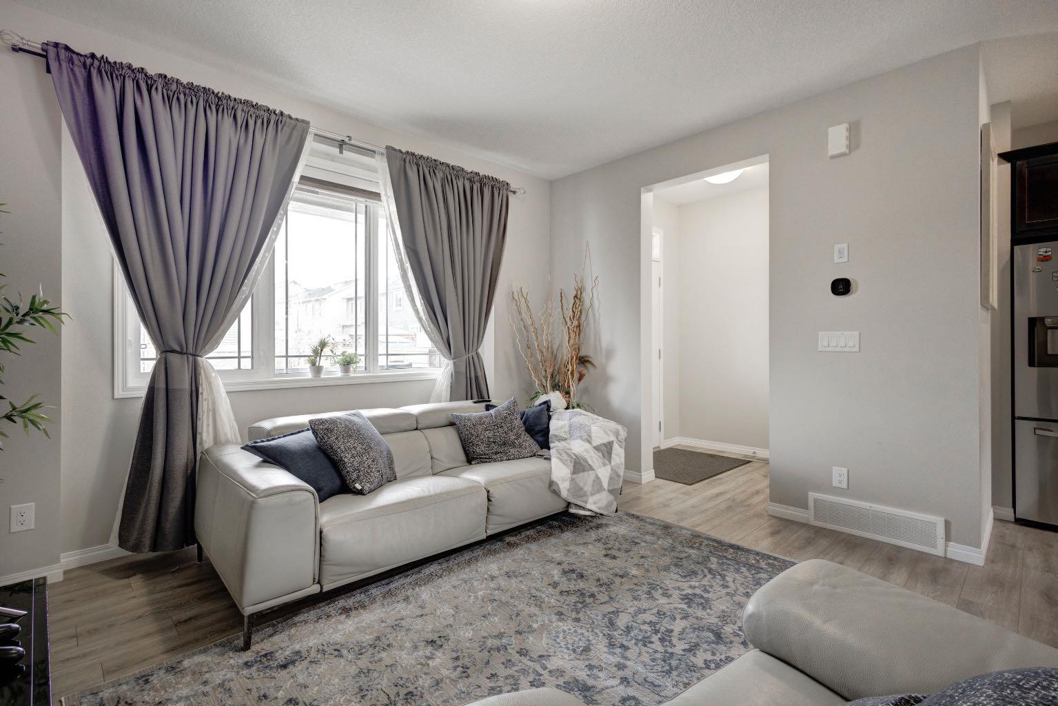 DEAL OF THE YEAR! Tucked into one of Calgary’s fastest-growing and most picturesque communities, this modern 3-bedroom duplex delivers the perfect balance of comfort, style, and convenience. All of these with absolutely no condo fees to worry about! From the moment you walk in, you’re greeted by sunlit interiors, 9-foot ceilings, and luxury vinyl plank flooring that flows seamlessly throughout the main floor. The open-concept layout sets the tone for modern living, with a bright and inviting living room framed by large windows and soft grey curtains—creating a cozy yet elegant ambiance that feels like home.