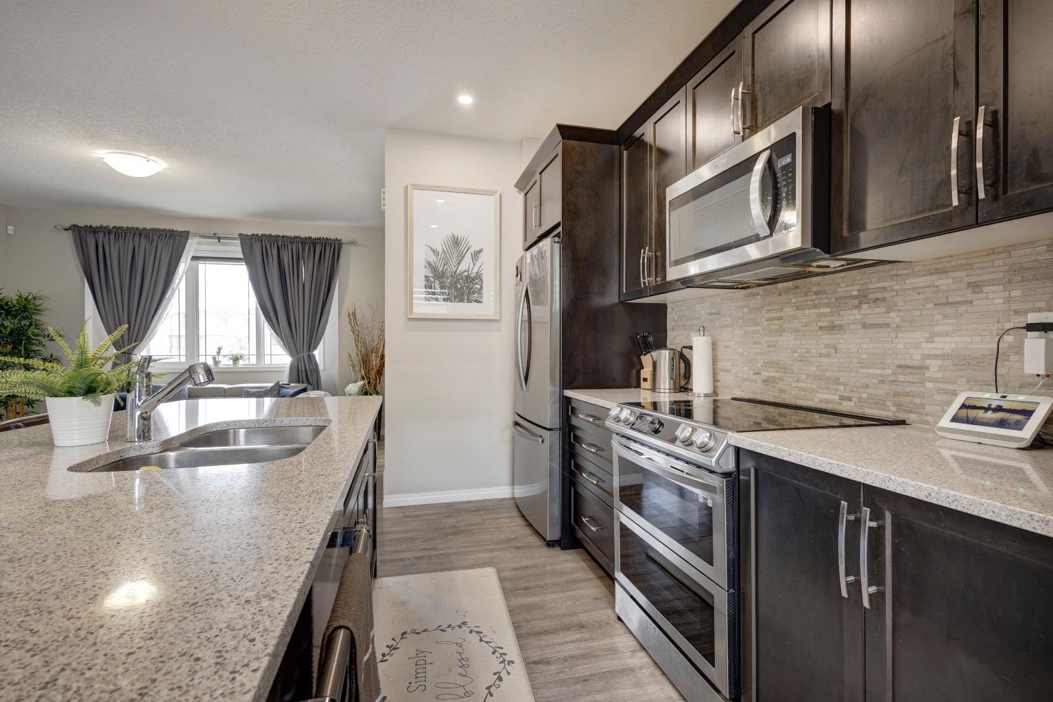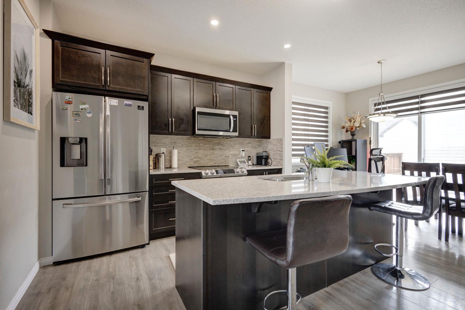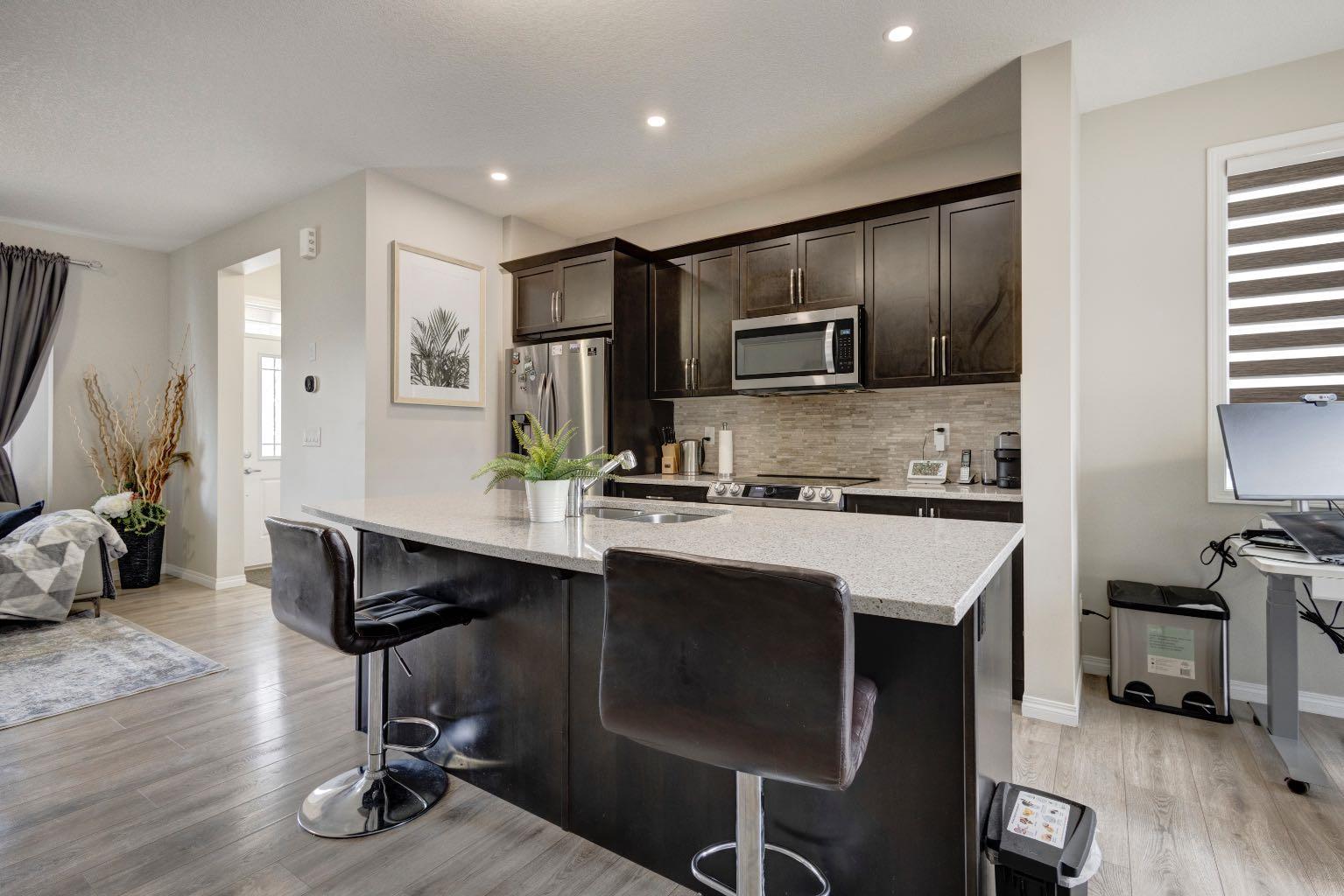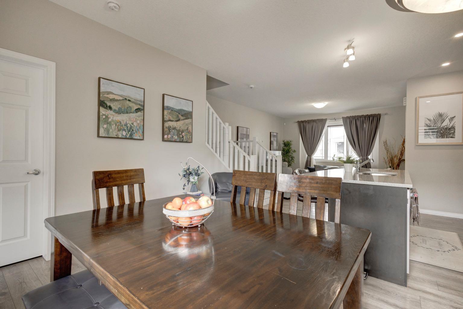 DEAL OF THE YEAR! Tucked into one of Calgary’s fastest-growing and most picturesque communities, this modern 3-bedroom duplex delivers the perfect balance of comfort, style, and convenience. All of these with absolutely no condo fees to worry about! From the moment you walk in, you’re greeted by sunlit interiors, 9-foot ceilings, and luxury vinyl plank flooring that flows seamlessly throughout the main floor. The open-concept layout sets the tone for modern living, with a bright and inviting living room framed by large windows and soft grey curtains—creating a cozy yet elegant ambiance that feels like home.