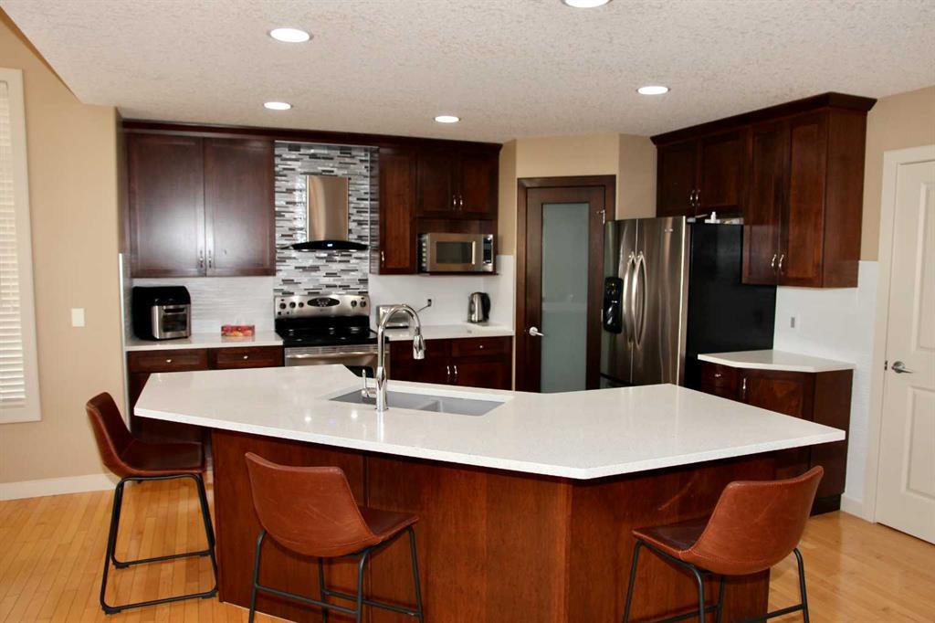 Nice house located in a great quiet corner of Evergreen, walking distance to Fish Creek Park, a step away from Stony Trail and new Costco in southwest.This house is full of love, care and well maintain by the original owner. “2100 sq ft” in a devolve area has it's all, Full house in the main floor, seven rooms, over than 1200 sq ft. Start with a large, vaulted ceiling family room leading to formal dining room then a private living room and gorgeous kitchen with large island topped with a really nice quartz countertop lead to a another dining room ”Nook”. Add to all of that, two pieces bathroom, a greed office room, laundry/mud room lead to a lager double attached garage. Then open staircase with a beautiful railing will lead you to a second floor which has beautiful master bedroom with a large walk-in closet and four pieces En-suite bathroom help you to relax after a in a long workday in a large jet- bathtub or a quick shower in a stand shower plus a makeup desk, add to that two more large bedroom and full bathroom.As the summer it's getting too hot in Calgary but you can enjoy this house by turning your air conditioning for comfortable living.This house meant to be low maintenance outside by adding a wide concrete sidewalk around the house and very large concrete patio at the backyard which can be used for a large gathering "party" or it can be used as a small basketball court after adding a basketball net, add to that irrigation systems to take care of a beautiful front yard and a green area at the backyard (id:22211)