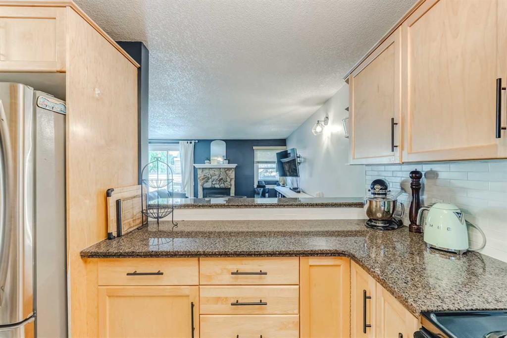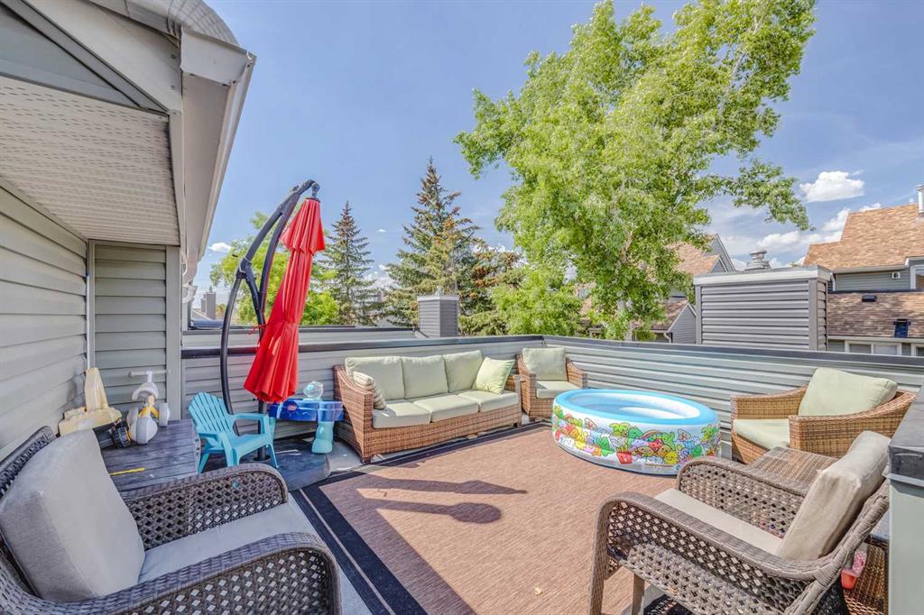 Showings to start Friday June 16, 2023. This bright and cheery owner-occupied home has been lovingly maintained and cared for. A 2-bedroom 1.5 bath home with large open floorplan IS ONE OF THE LARGEST IN THE COMPLEX. Great for family living and entertaining. There are 3 large outdoor deck spaces for added living space. The upper floor offers an updated kitchen with a window and maple cabinets, granite countertops & raised breakfast bar. Updated kitchen sink and faucet and all the stainless-steel appliances (except microwave) are only a couple of years old. Kitchen leads into a very large living room with gas fireplace and tons of wall space. Super easy for furniture placement. There is a nice sized dining room with a NEW patio door leading to an enormous deck space finished with low maintenance flexstone finish. The convenient and privately located 2 piece bathroom on this level has been updated with high end plumbing fixtures and quartz counters. Lower level offers 2 nice sized bedrooms with a built in closet in the primary room; another large deck off the second bedroom; Updated 4 piece bathroom with high end plumbing fixtures and quartz counter tops; a laundry area with newer washer/dryer and added built in shelving to assist with organization. Finally, this level offers ample under the stair storage. Recent updates also include new carpeting, tile to the bathrooms, paint, lighting fixtures and wall features. Do not miss your opportunity to own this exceptional property. Centrally located, close to shopping, schools, Mount Royal University, and easy access to main arteries such as Sarcee Trail, Glenmore, and Stoney Trail. The Complex has been completely updated including roofs, siding, windows, doors, decks, railings and more. Very well managed and quiet community! (id:22211)
