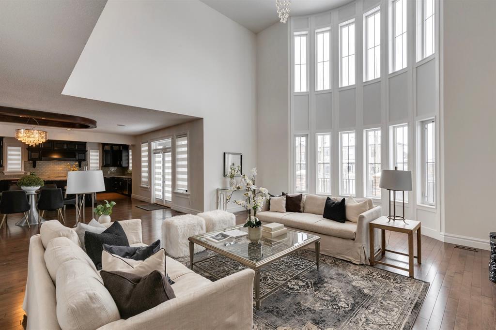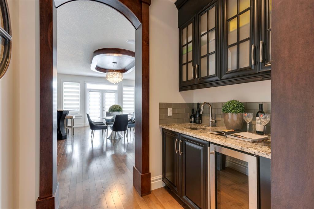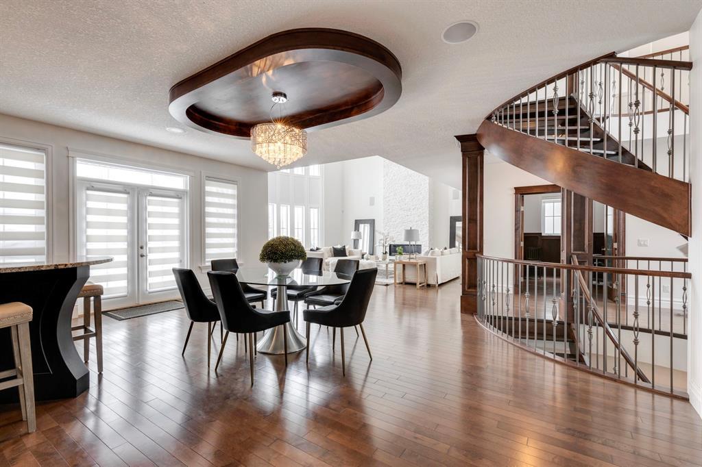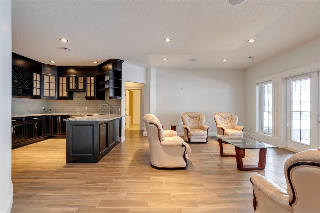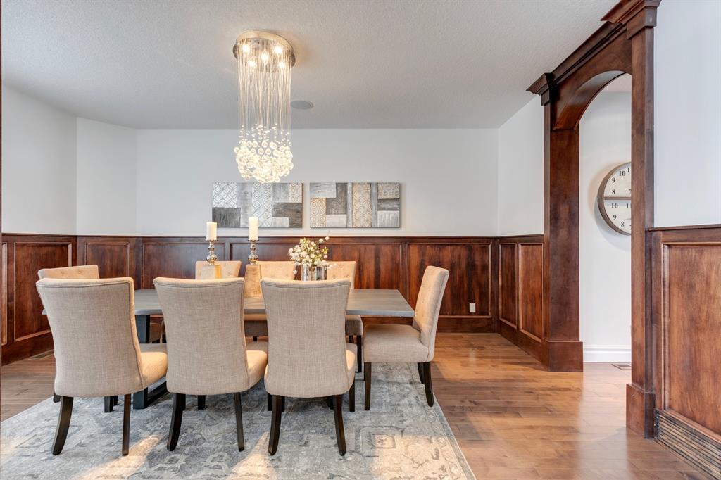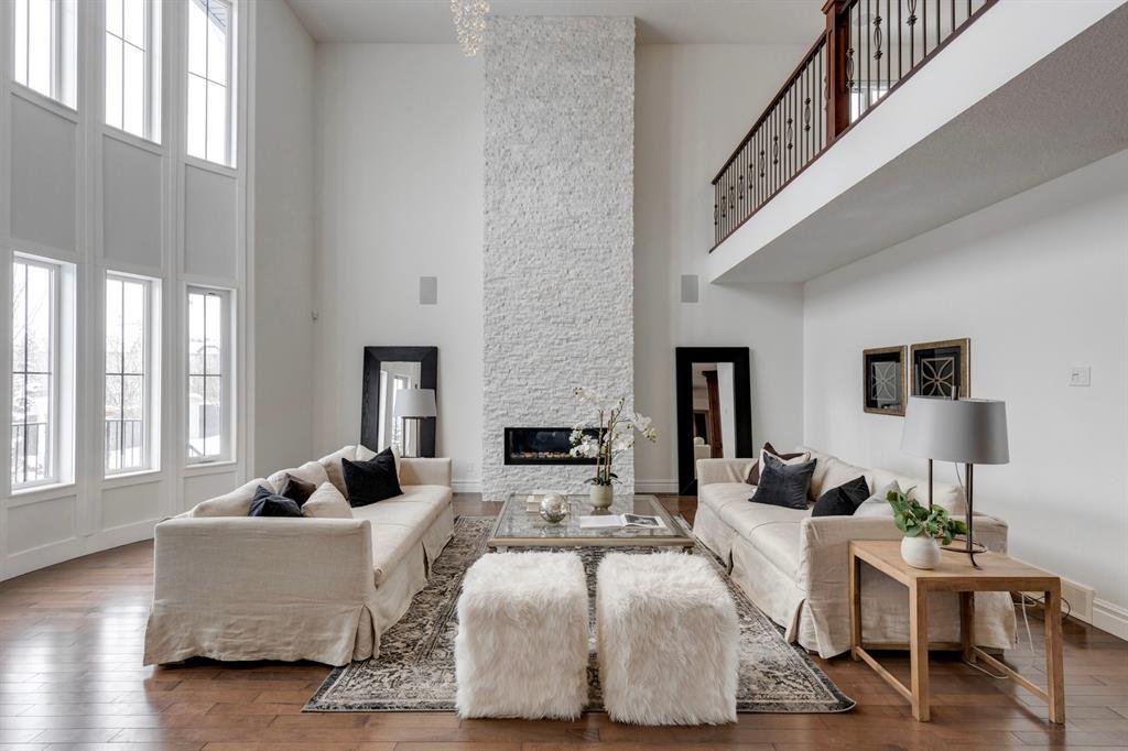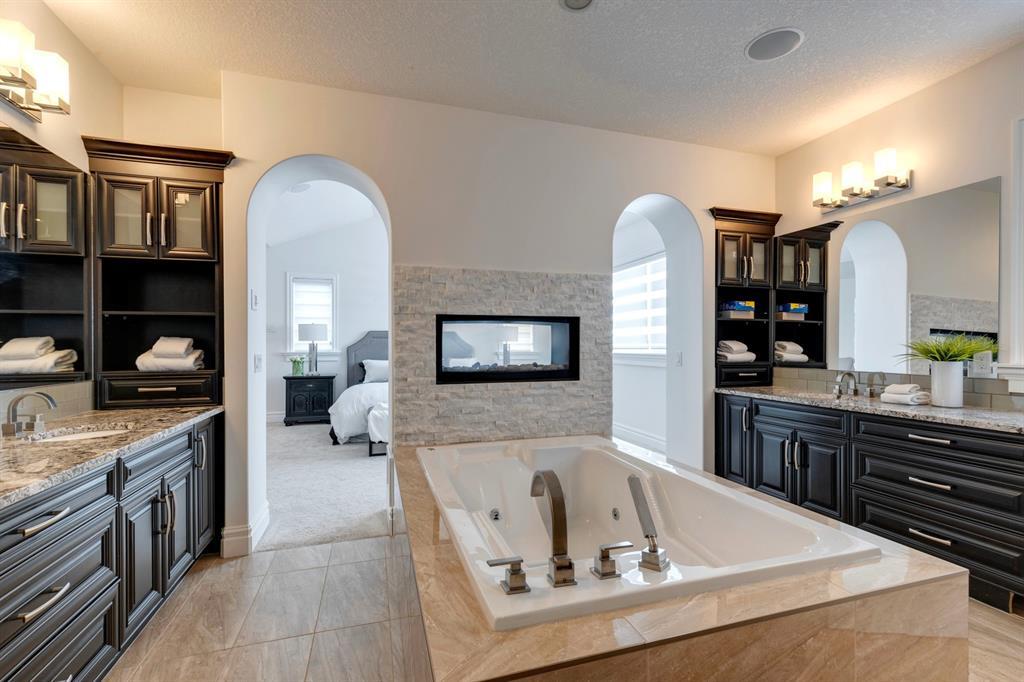 Located on one of the most desirable cul-de-sacs in the district, this grand, custom built home is ideal for a large family or someone who loves to entertain. Step inside and be wowed by the curved staircase, the two storey foyer and rich wood arches and wainscotting. Entertain friends in the front facing formal living room before serving dinner in the elegant dining room. A butler’s pantry with a sink and bar fridge connects into the large kitchen. Home chef’s will love all the counters and cabinets as well as the 6-burner gas cooktop, double wall ovens and warming drawer, beverage fridge, and stainless fridge/freezer. Imagine cooking together for family celebrations at one end of the kitchen while your guests nibble appetizers at the one-of-a-kind, circular island eating bar. Additional features making this kitchen extra special are the caterer’s kitchen (spice kitchen) containing a range, microwave and sink, as well as a large walk-in pantry for Costco supplies. Adjacent to the kitchen is a casual dining nook and a spacious family room with soaring ceilings, a gas fireplace and and a double height curved bay window bathing the room in sunlight. Double doors lead into the home office with built-in desk and bookcases. Upstairs a loft area with a built-in desk overlooks the family room and foyer. The primary bedroom features a barrel vaulted ceiling, a double sided fireplace, and two arches opening into an ensuite with a jetted tub and large shower. There are three additional bedrooms each with their own walk-in-closets and ensuites, and a laundry room on this level. The fully developed walk-out basement includes a games area, wet bar with lots of wine storage, a recreation room with a fireplace, gym, media room, two bedrooms and two bathrooms. A triple garage has lots of storage space and a staircase down to the basement level. Outside, the yard faces west and the deck off the kitchen has a gas fireplace to warm you on chilly nights as you watch the sunset. Mature trees and a landscaped retaining wall offer privacy. Down the street is a playground, and Rundle College and Strathcona Square Shopping Center are a short walk away. This home has plenty of room for everyone in the family! (id:22211)