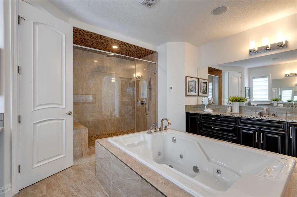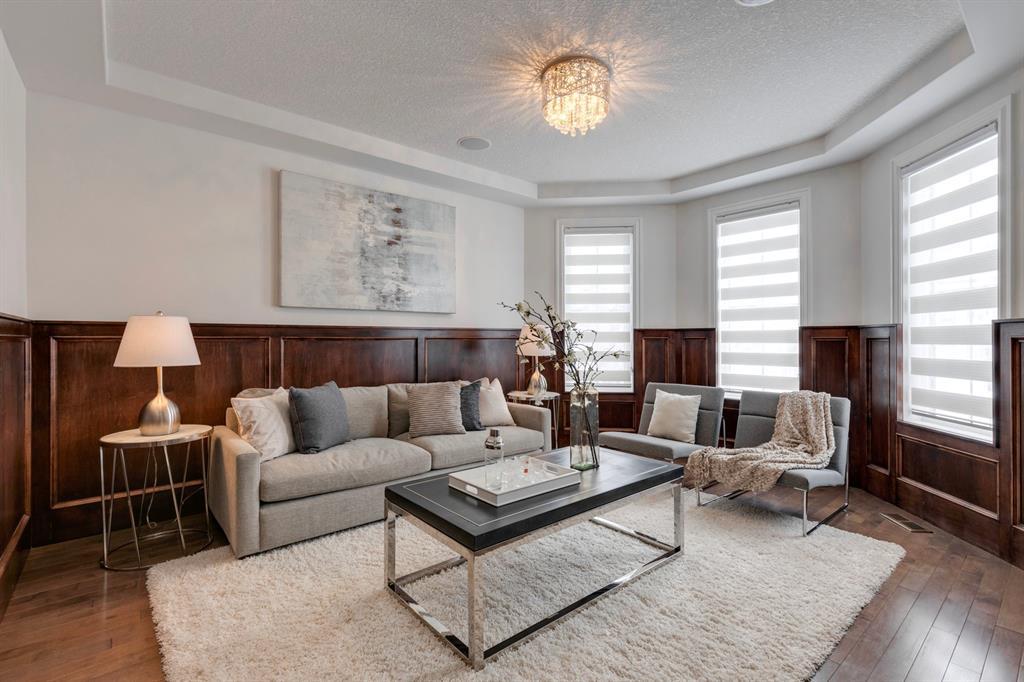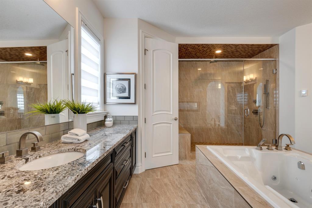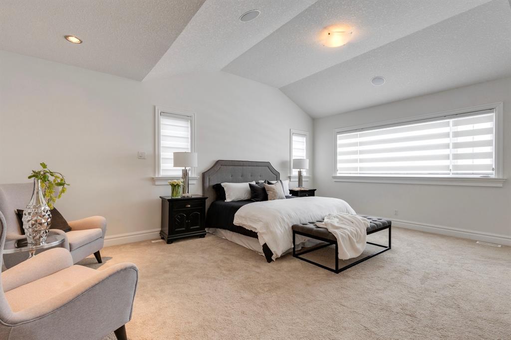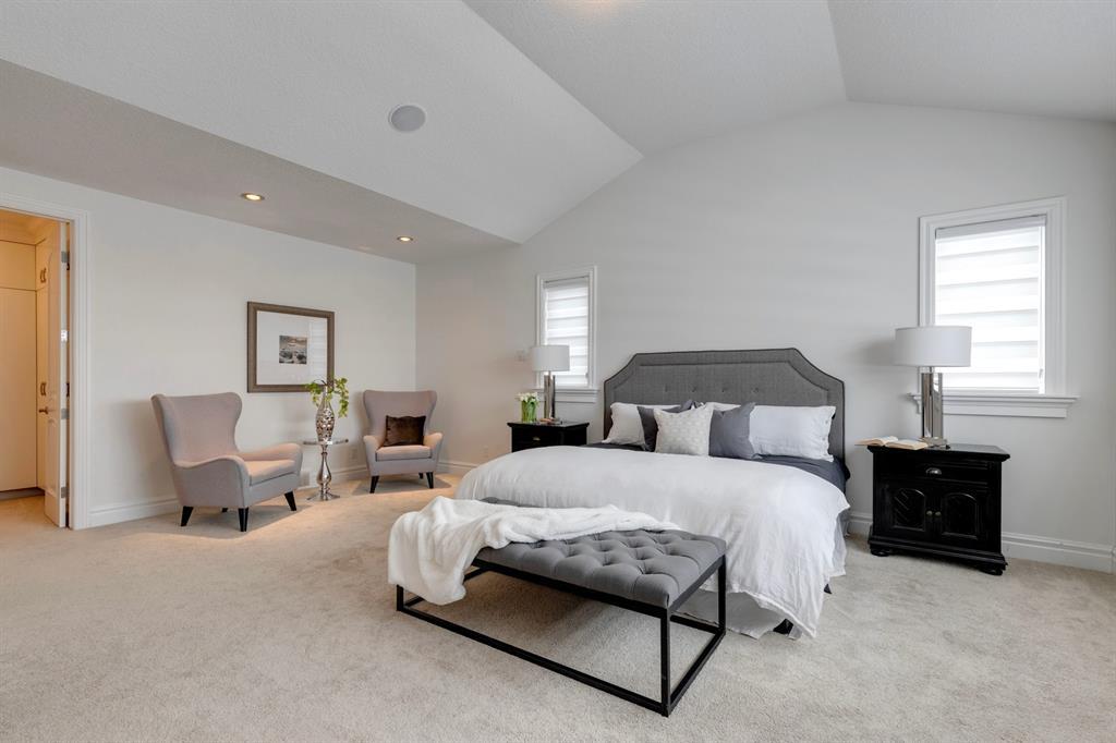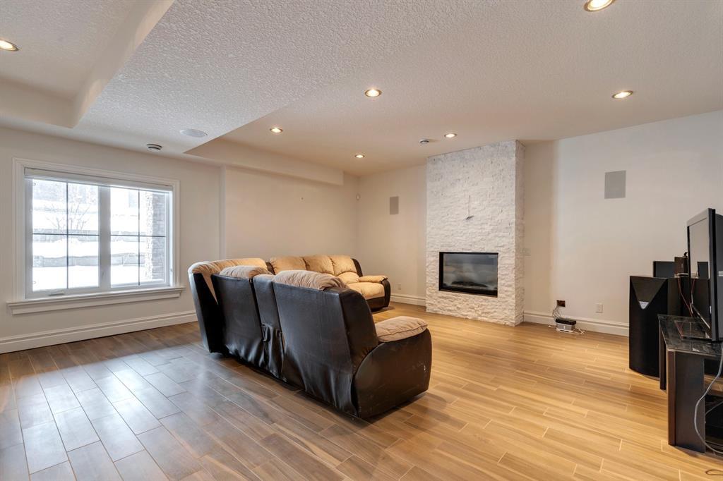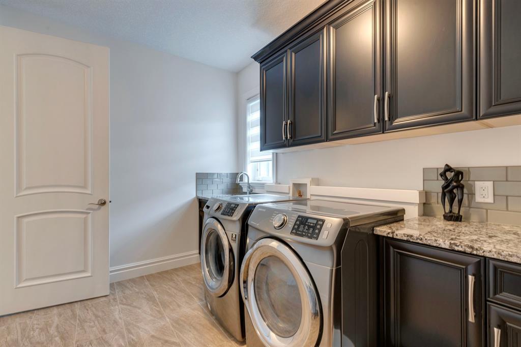 Located on one of the most desirable cul-de-sacs in the district, this grand, custom built home is ideal for a large family or someone who loves to entertain. Step inside and be wowed by the curved staircase, the two storey foyer and rich wood arches and wainscotting. Entertain friends in the front facing formal living room before serving dinner in the elegant dining room. A butler’s pantry with a sink and bar fridge connects into the large kitchen. Home chef’s will love all the counters and cabinets as well as the 6-burner gas cooktop, double wall ovens and warming drawer, beverage fridge, and stainless fridge/freezer. Imagine cooking together for family celebrations at one end of the kitchen while your guests nibble appetizers at the one-of-a-kind, circular island eating bar. Additional features making this kitchen extra special are the caterer’s kitchen (spice kitchen) containing a range, microwave and sink, as well as a large walk-in pantry for Costco supplies. Adjacent to the kitchen is a casual dining nook and a spacious family room with soaring ceilings, a gas fireplace and and a double height curved bay window bathing the room in sunlight. Double doors lead into the home office with built-in desk and bookcases. Upstairs a loft area with a built-in desk overlooks the family room and foyer. The primary bedroom features a barrel vaulted ceiling, a double sided fireplace, and two arches opening into an ensuite with a jetted tub and large shower. There are three additional bedrooms each with their own walk-in-closets and ensuites, and a laundry room on this level. The fully developed walk-out basement includes a games area, wet bar with lots of wine storage, a recreation room with a fireplace, gym, media room, two bedrooms and two bathrooms. A triple garage has lots of storage space and a staircase down to the basement level. Outside, the yard faces west and the deck off the kitchen has a gas fireplace to warm you on chilly nights as you watch the sunset. Mature trees and a landscaped retaining wall offer privacy. Down the street is a playground, and Rundle College and Strathcona Square Shopping Center are a short walk away. This home has plenty of room for everyone in the family! (id:22211)