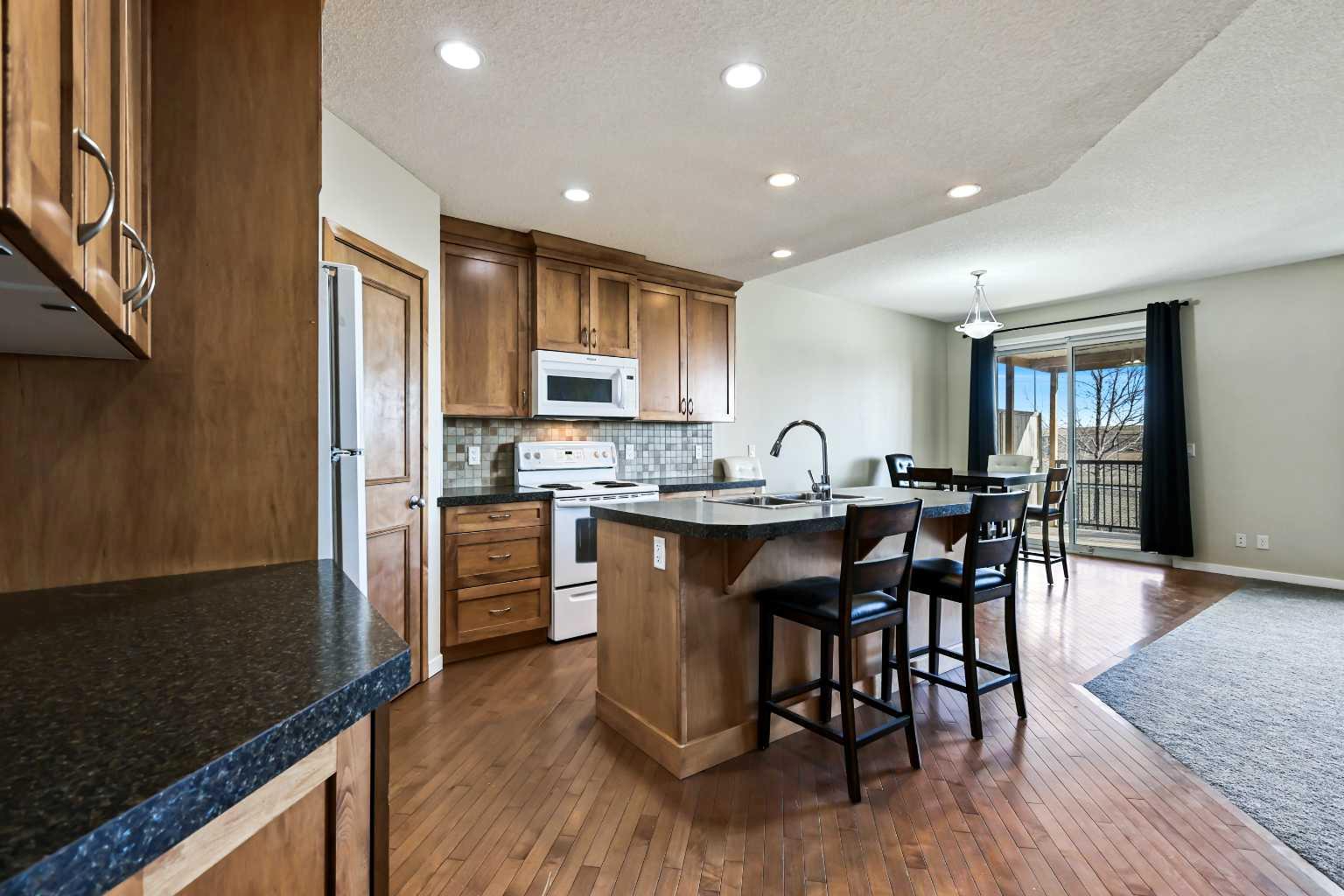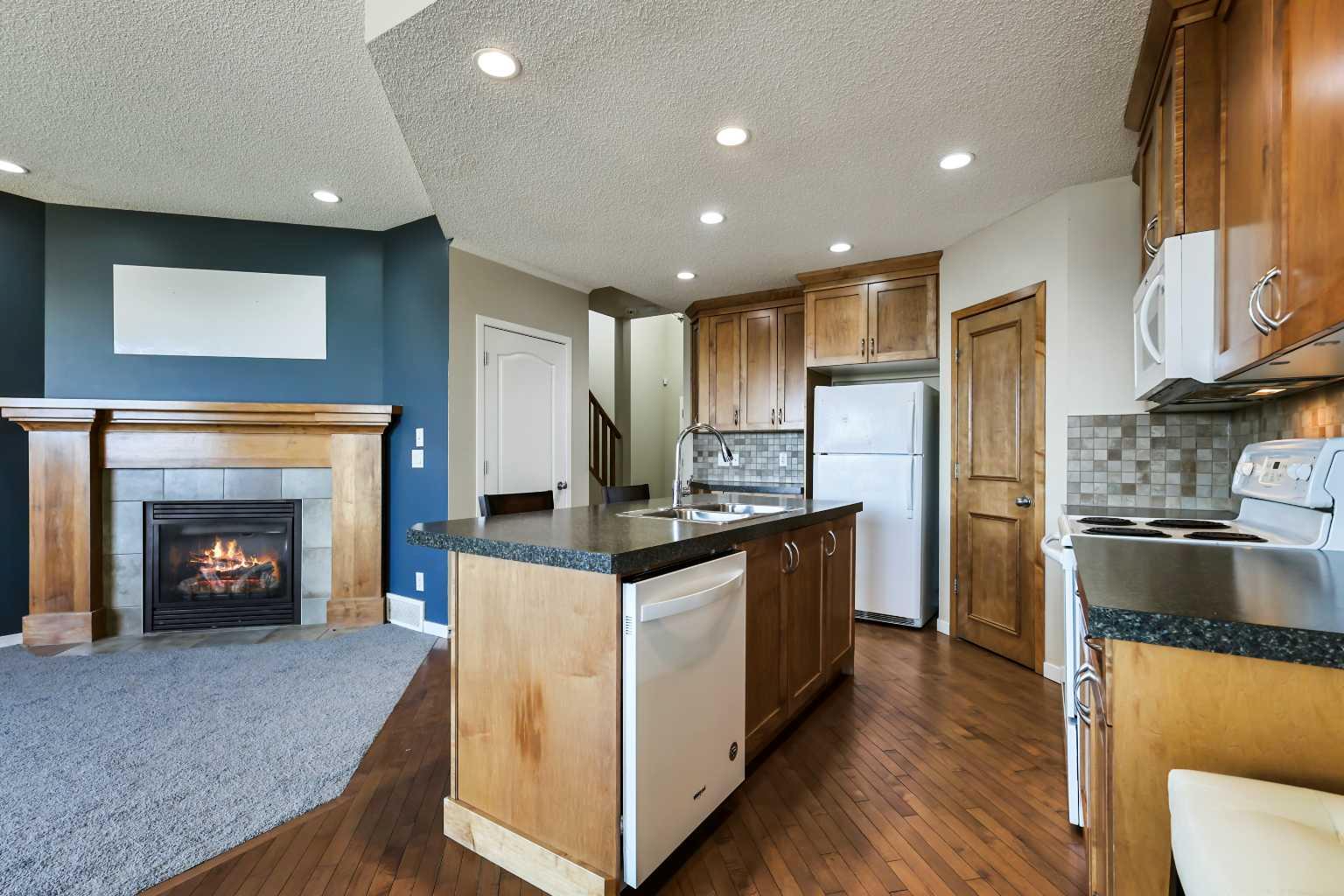Fantastic home in the beautiful community of New Brighton, where green space & fun are abundant! This home offers you over 1473+ sq ft of maximized "SPLENDID" air-conditioned living space for your enjoyment. BONUS: Single attached garage, full parking concrete driveway, AND backs onto a huge green space & Athletics' park! You are welcomed into a lovely open floor plan with hardwood floors, BRAND NEW CAREPTS, & boasting great windows that invite natural daylight in along with a smooth transition that leads into a great kitchen with an oversized central island featuring a sink/flush eating bar, corner pantry, upgraded appliances which include a fridge, stove, built-in dishwasher and over the range microwave. The great room enjoys views from a large window and a corner gas fireplace. Upstairs: beautiful primary bedroom with a walk-in closet & 3pc private en suite. Plus two more bedrooms & 4pc main bath. Great location with no backyard houses/neighbors, only open views! The large, expansive yard is fully fenced, decked with cover, and landscaped. Welcome Home! You must put this home on your 'Must See List! Check out the New Brighton community features. Website notes: "Operated by the NBRA, the New Brighton Clubhouse is a year-round recreational facility, consisting of a 6500 square foot building. Also on site are: 2 tennis courts, a beach volleyball court, basketball courts, a splash park, a playground, and a hockey rink. Members can gain access to these facilities using their issued membership card, and can also sign in guests. The Bell Tower amenity, pond fountains, and community entrances are among a few other community features the NBRA maintains. In addition to maintaining community features, the NBRA also employs a full-time Recreation Team at the New Brighton Clubhouse, which is responsible for implementing recreational programs and events using various facilities and amenities within the park. To meet all its members' needs, the NBRA offers a variety of fitness, educational, and creative programs for all ages." Call your friendly REALTOR(R) to book a viewing! "QUICK MOVE IN"