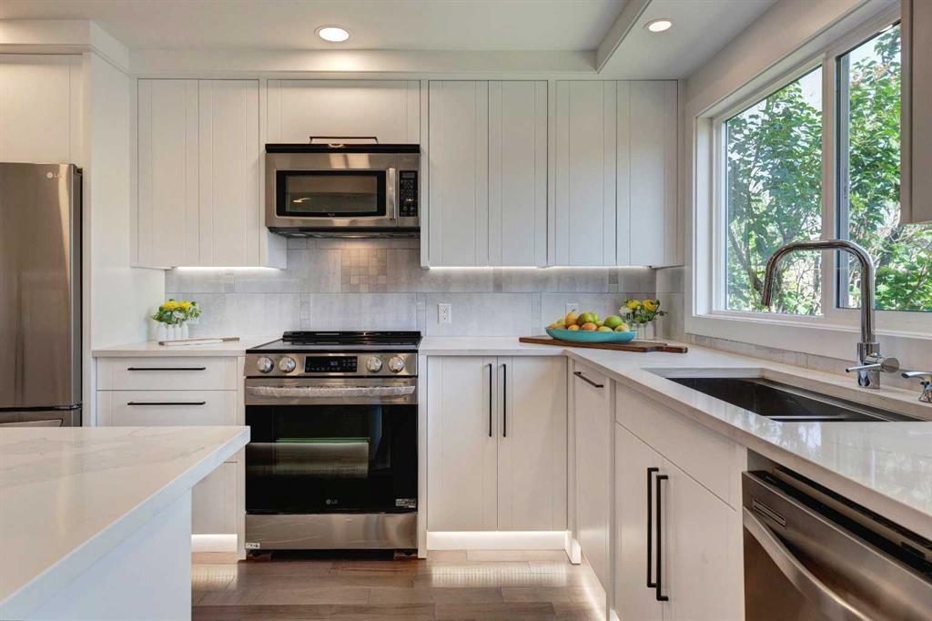 Open House Saturday Oct 14 ,2023 2:00-4:00p.m.Nestled in a remarkably tranquil setting, this exquisite property seamlessly blends timeless charm with contemporary flair, offering over 2700 square feet of living space in the heart of Woodbine. A true gem, this home stands just a stone's throw away from the picturesque Fish Creek Park ridge, boasting a generous lot and a secluded backyard sanctuary. Meticulously rejuvenated, this residence has undergone a stunning transformation, elevated to the pinnacle of modern living by its dedicated owner. The well-conceived layout features an impressive main level, encompassing a refined formal living room, an elegant dining area, and a welcoming family room. Every facet of this home exudes a fresh vitality, resembling that of a brand-new haven. Adorned with resplendent hardwood flooring, the space is graced by a bespoke kitchen, artfully designed and equipped with sumptuous quartz countertops. The kitchen island, thoughtfully sized, serves as an ideal spot for your morning reprieve and a rendezvous with your favorite brew. Abundant cabinetry provides both convenience and aesthetics, while a profusion of custom lighting casts an enchanting radiance throughout. Bathed in opulence, each bathroom is a testament to exquisite finishes, encapsulating a sense of opulent rejuvenation. The focal point of the family room is a resplendent fireplace, ideal for fostering cherished moments during gatherings. The residence is bestowed with enhancements aplenty, including sleek flat ceilings, new illuminating fixtures throughout, and a palette of fresh custom hues that breathe life into every corner. Brand-new carpets underfoot in the bedrooms offer a plush comfort, and the basement stands as a fully finished haven, generously accommodating extended family, complete with a lavishly appointed bathroom. Indeed, this property is a reverie of old-world charm meets modern sophistication. Its allure extends to the upper level, where a capacious prim ary bedroom awaits, featuring an expansive walk-in closet and a masterfully updated ensuite. Two additional generously sized bedrooms grace the upper level, while the basement unfolds into a sprawling canvas for relaxation or recreation, crowned by another commodious bedroom. Windows have been tastefully replaced, and the roof renewed a mere few years ago, imbuing a sense of security and durability. The backyard, a low-maintenance oasis, stands ready to host your leisurely pursuits. The list of enhancements is endless, and the residence stands as a testament to a life poised for the next chapter, where the exigencies of renovation are replaced by the pleasures of hosting cherished family and friends. Time for decisive action! Contact your preferred agent to schedule a private viewing of this stunning home before it slips away. (id:22211)