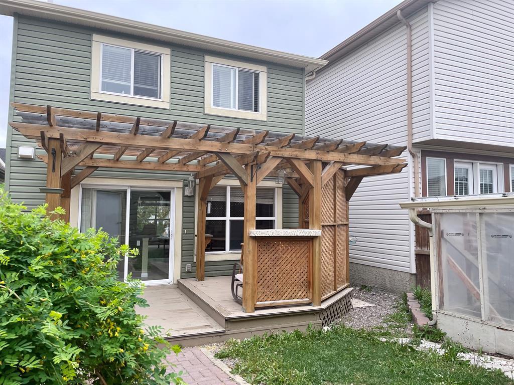 Welcome to this delightful family-friendly home in the highly sought-after community of New Brighton. This charming residence offers three levels of comfortable living space, including three bedrooms, three and a half baths, an oversized double detached garage, central air conditioning, and situated a quiet street location within walking distance to a junior high school. Step inside and discover over 1930 square feet of beautifully designed living space with modern upgrades throughout. The kitchen features ceiling-height cabinets, newer stainless-steel appliances, a breakfast bar, and ample storage. The open concept floor plan fills the main floor with natural light, creating a bright and inviting atmosphere. The living area is spacious and perfect for relaxing, while the adjacent kitchen and nook area offer a stylish space for family meals and entertainment.Upstairs, you'll find a generous primary suite with a four-piece en-suite and a walk-in closet. Two additional bedrooms share another four-piece bathroom, making it ideal for growing families. The fully finished basement adds even more living space with a large recreational room, a three-piece bathroom with a tiled shower, a laundry room, and plenty of storage. There's even potential to create a fourth bedroom.Outside, the tranquil backyard is perfect for outdoor enjoyment. You'll find a pergola with a privacy wall and built-in seating, a spacious composite deck, a greenhouse for gardening enthusiasts, and a fully finished oversized detached garage complete with a workbench, 220 Volt wiring, and built-in shelving.Located on a quiet street, this home is just minutes away from shopping, restaurants, schools, parks, and Calgary transit. The New Brighton community offers a vibrant lifestyle with its amenities, including parks, playgrounds, and walking paths.Don't miss the opportunity to make this warm and welcoming home your own. Contact us today to schedule a private viewing and experience the comfort and conv enience it has to offer. (id:22211)