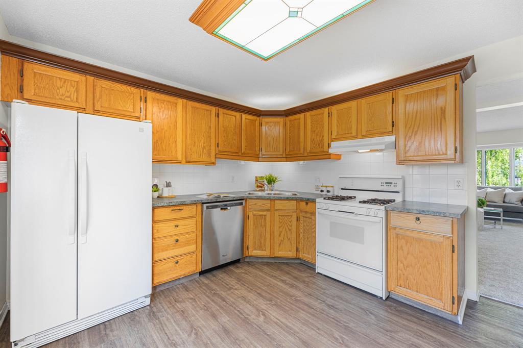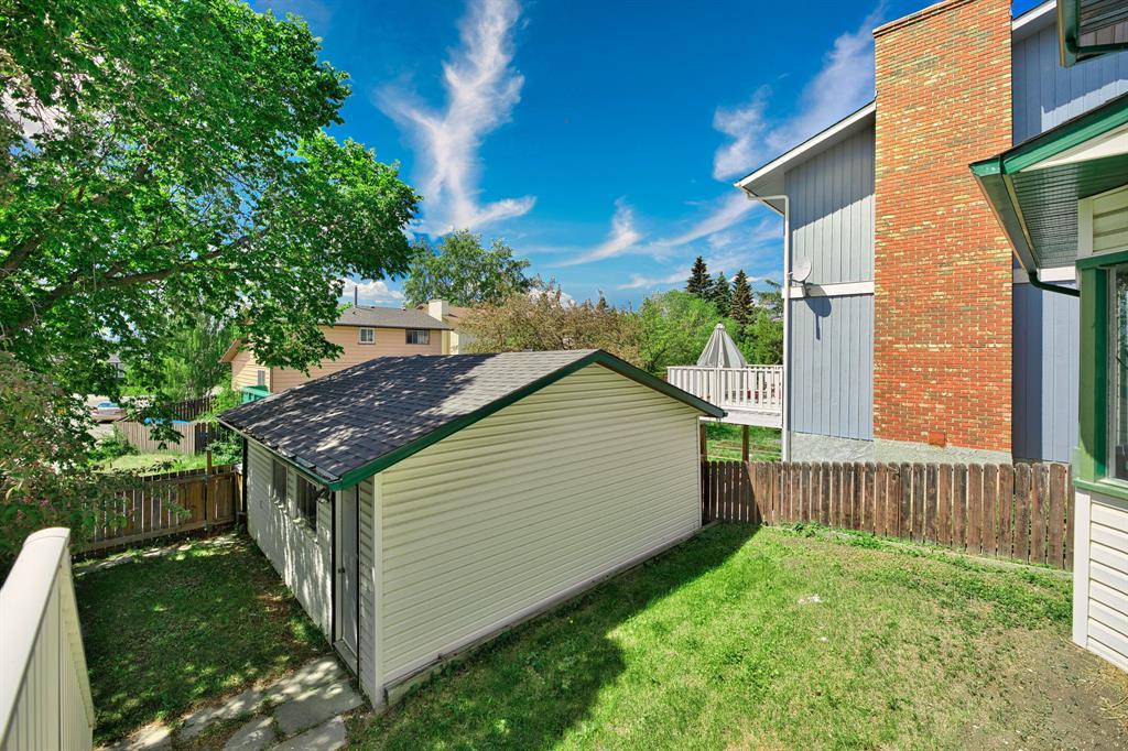 Hello, Gorgeous! You won't want to pass up living in the established mature northwest community of Hawkwood. This 4 bedroom, 1737 SQFT home located on a large corner lot has been refreshed and ready for you! Entering the home you have your spindle staircase leading you up to the second level and a large closet. To the right you have the dining and living room combo with vaulted ceilings and a large bay window overlooking the front of the home. Around the back of the home you will find your kitchen with a corner sink, gas stove, wall to wall cabinetry as well as a large window overlooking your sunny backyard. Down the hallway is your powder room, convenient for guests, and a laundry room with added cabinetry. The hallway leads to your great room with wood burning fireplace, another large window and access to your rear vinyl covered deck through sliding glass doors.Heading upstairs the primary bedroom is located on the west side of the home and features a large mirrored double closet and 3 piece ensuite. The entire home has been recently painted, new floors and carpets installed with a nice neutral colour perfect for any decor. Two additional bedrooms are located on the upper level, one having a large walk-in closet, and your main 4-piece bath. Heading down to the walk-up basement, at the bottom of the stairs you have the large 4th bedroom and a flex room perfect for a home office, gym or storage. A large rec room can be found on the other side of the lower level with two additional storage spaces. Walk-up from your basement to your backyard and access to your double detached garage.Additional features include:-Central air conditioning-New roof (2022)-Lane with detached garage and RV parking -220 volt wiring in detached garage-Separate entrance to basementThis home is in a phenomenal location with schools, pathways, numerous parks, an ice rink, nearby amenities and grocery stores mere minutes away at Crowfoot Crossing plus not to mention the YMCA an d the LRT station. You just can't find a community better than this! (id:22211)