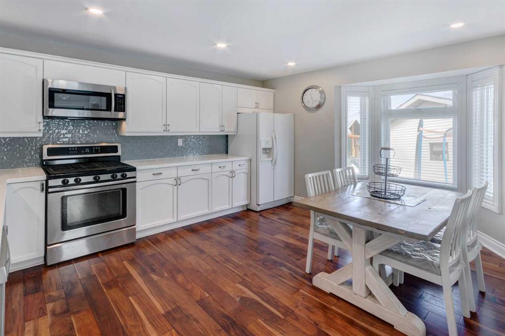 Lovingly maintained this updated immaculate 2-Storey family home in one of Calgary's most desired communities is just steps to the Bow River pathway and Carburn Park. Major Upgrades include Triple Pane Windows on main and upper levels (2018), Furnace (2017), HWT - 50 Gallon (2018), House Shingles (2014), Garage Shingles (2019), Deck (2018), Carpet (2020). This beautifully upgraded home with modern finishes glows with natural light throughout featuring 3 bedrooms, fully developed basement, heated detached oversized double garage and more! . The inviting entry way highlights hardwood flooring throughout the main floor featuring a large front living room adjoining a cheery spacious kitchen with ample crisp white cabinetry, stainless steel gas top range and plenty of counter space for food prep overlooking the eating nook. The well placed 2-piece bath and side door lead to a spacious deck perfect for BBQing leading to the picturesque backyard space for the kids and pets to enjoy. The bright upper level is complete with 2 well-appointed bedrooms, large primary bedroom and 4-piece bath with heated tile flooring. The options are endless in the fully developed basement; enjoy movie nights with the family and create a playroom for the kids or workout space or home office in the oversized developed recreation room and there is plenty of extra storage space in the designated organized storage room and mechanical room. The backyard offers outdoor fun and convenience with a private fully fenced yard and oversized heated double garage and a handy utility gate leading to the paved alley. Walking distance to Riverbend School (K-6), Holy Angels (K-6), community parks, playgrounds and local shops. This home is priced to sell! Call today to view. (id:22211)