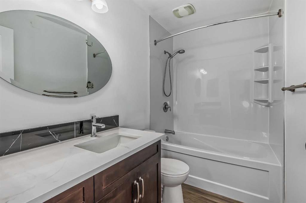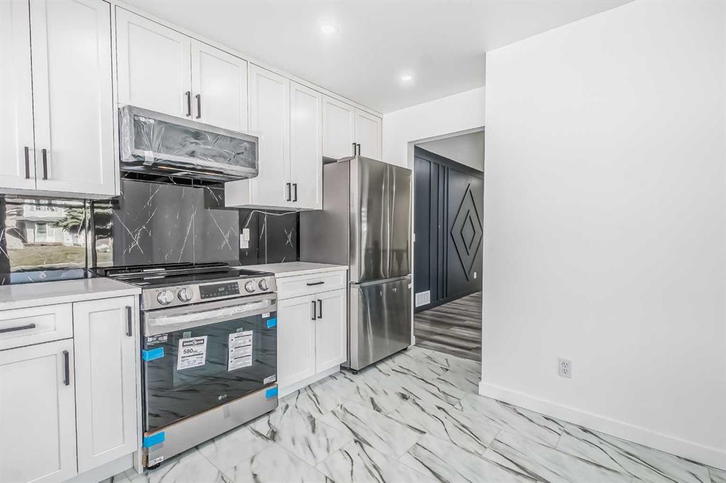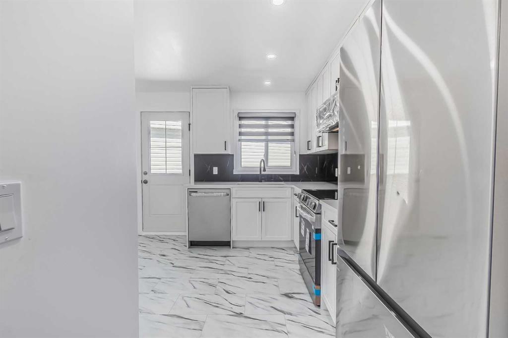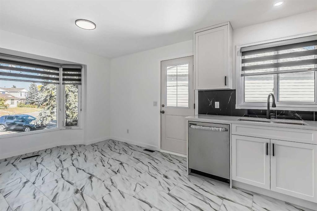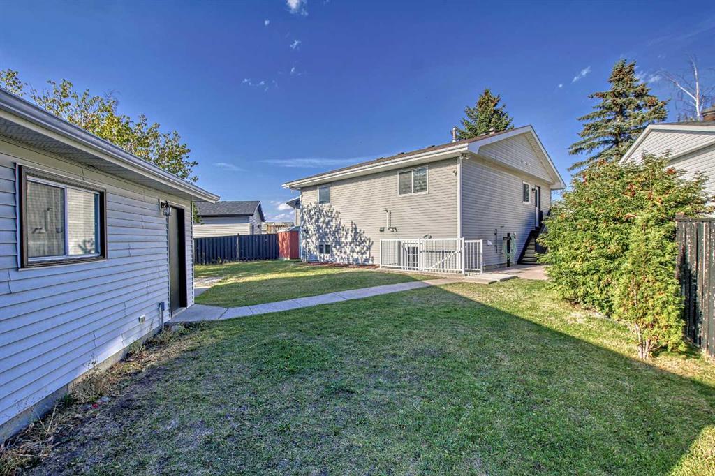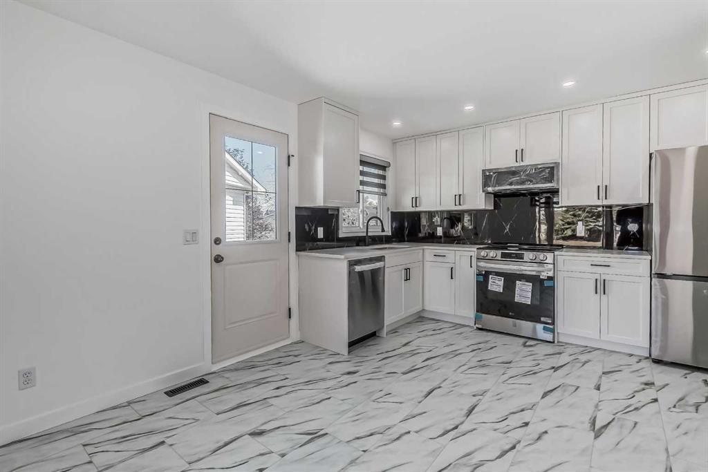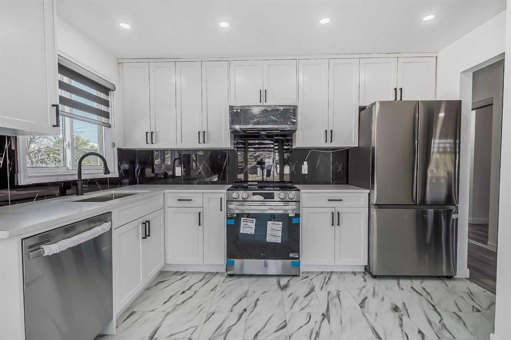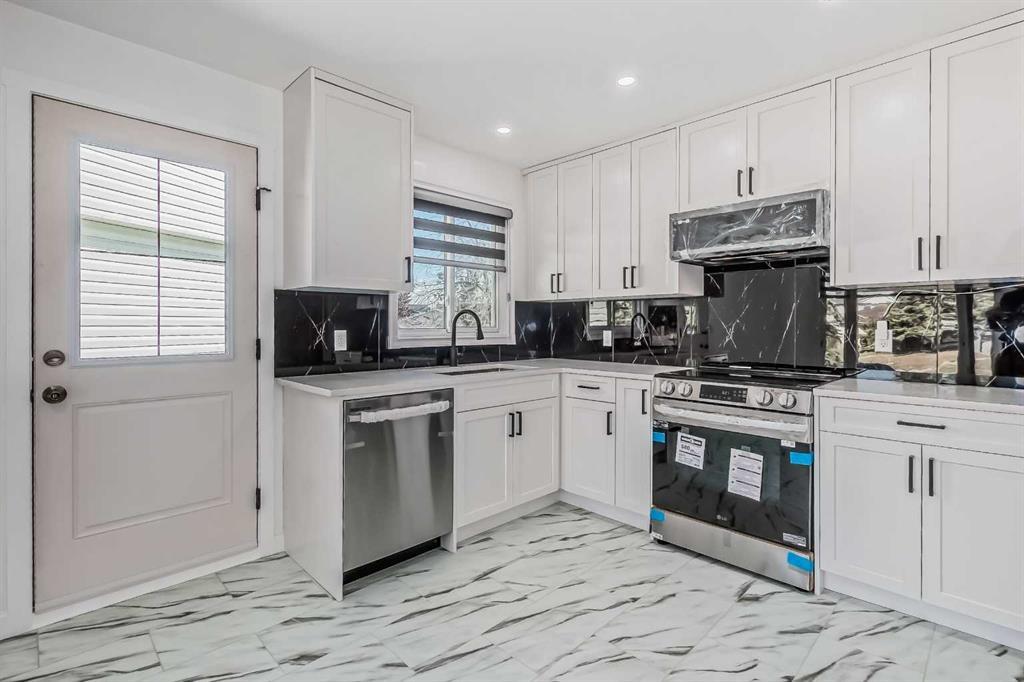 RARE OPPORTUNITY in this fully developed bi-level 5 bed, 2 bath home on a HUGE 6566 sq ft PIE-shaped LOT on a QUIET CUL-DE-SAC with a SW-facing backyard & RV parking! Incredible LOCATION; Close to schools, parks, & shops plus easy access to Stoney Trail. Fully renovated with brand new appliances, new flooring, quartz countertops, new doors- cabinets, new plumbing fixtures, new lighting fixtures and new blinds. UPDATES include NEW hot water tank 2019, NEW FURNACE & WINDOWS 2015, & NEW SHINGLES in 2017. This spacious bi-level offers a large living room with a bay window and a BRIGHT kitchen with a large eating area. Three large bedrooms on the main floor plus an UPDATED 4-pce bath with newer tub, vanity, & mirror. Illegal Basement suite has its own separate entrance, new kitchen with brand new appliances, separate laundry, Beautiful rec room plus TWO additional large bedrooms & another UPDATED 4-pce bath with tub, tile surround, vanity, & toilet. Spectacular SOUTHWEST facing back yard has a fire pit area, storage shed, and plenty of space to add a garden. OVERSIZED & HEATED double garage is 24.5 ft x 25.7 ft with upgraded wiring. Brick siding offers excellent curb appeal. Live up and rent down. (id:22211)