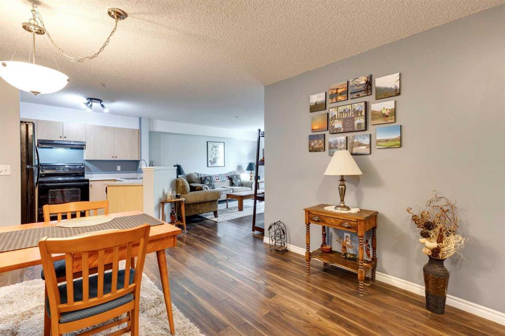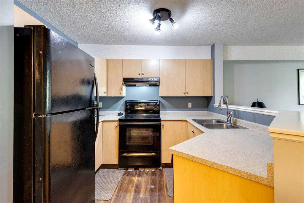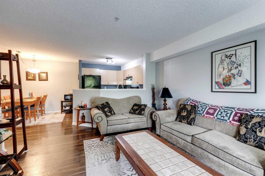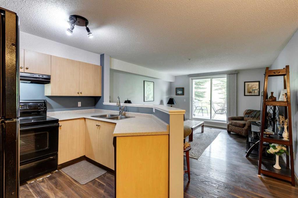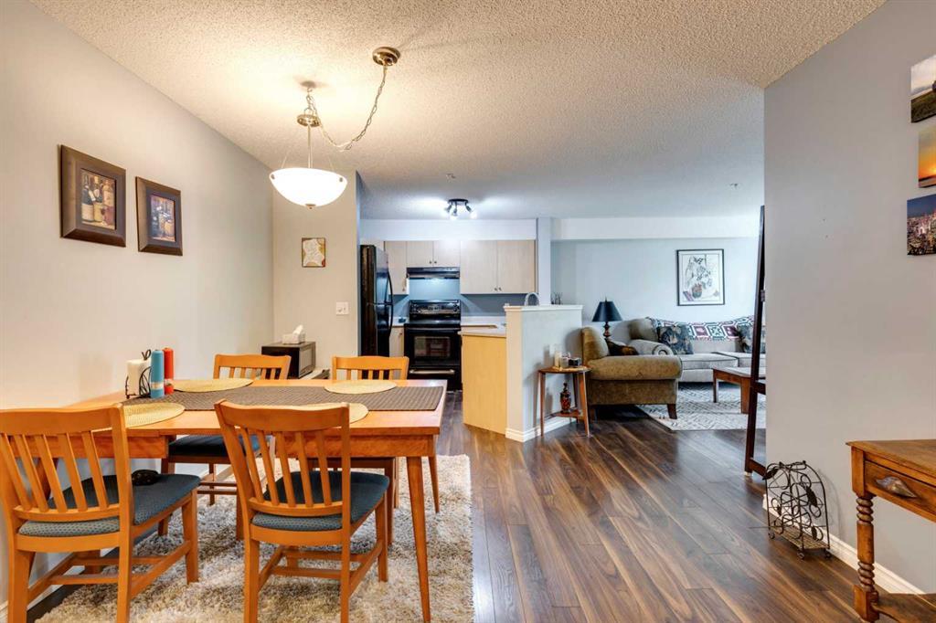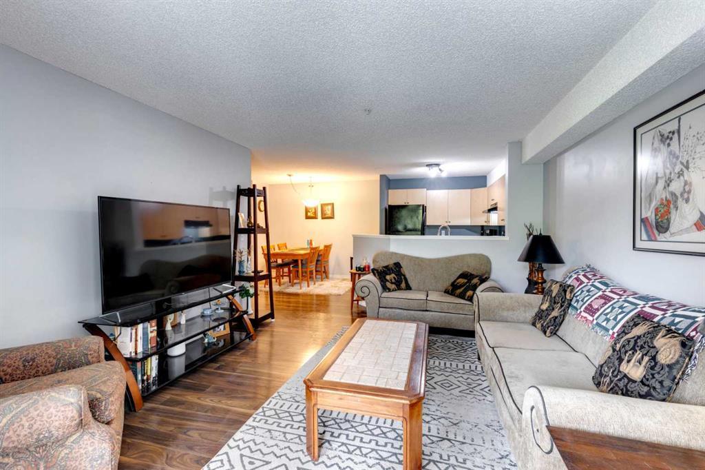 Excellent opportunity for investors or first-time home buyers! Upon entry, you will immediately notice the large open concept floorplan with laminate flooring throughout. The kitchen is equipped with loads of cabinetry, laminate countertops, and a black appliance package, leading into a separate dining area. The living room boasts large glass sliding patio doors, leading out to your private, quiet, serene, tree lined patio with no neighbours behind. The spacious master bedroom includes a large deep closet and a large window. The second bedroom is a good size, also with a large window and a deep closet. 4-piece bath includes a deep tub and full height tile surround. This great unit is located on the main floor for easy accessibility. This suite also includes one TITLED UNDERGROUND PARKING. This home is move-in ready, close to all amenities, schools & shopping. Enjoy the walking and bike paths close by in this serene and beautifully landscaped community. Visitor parking available! Don’t miss out, book your showing today! (id:22211)