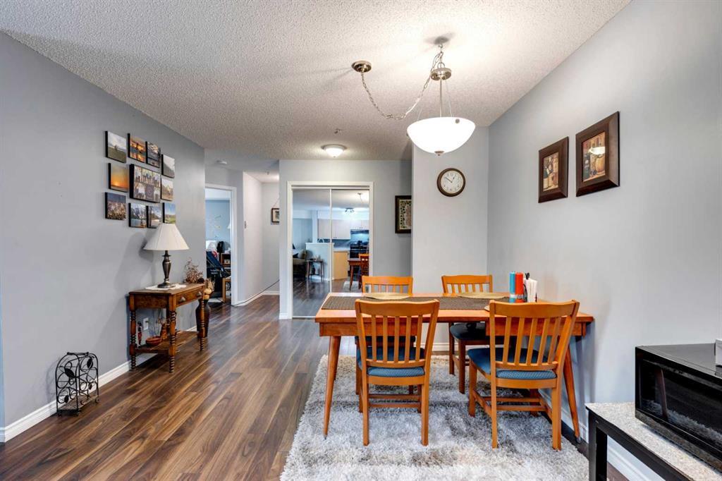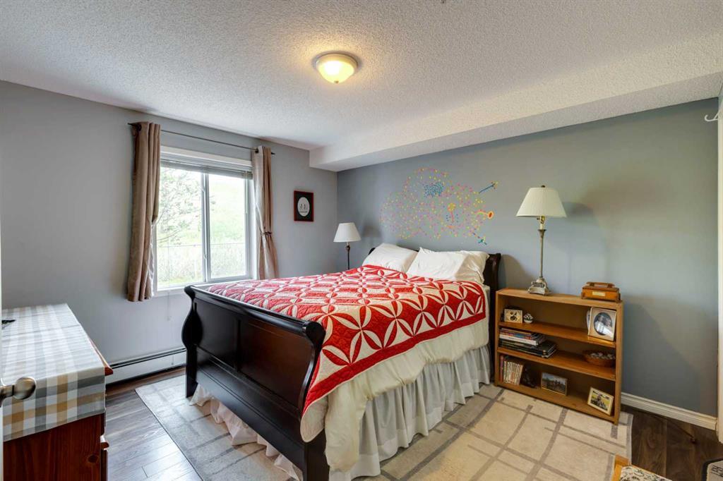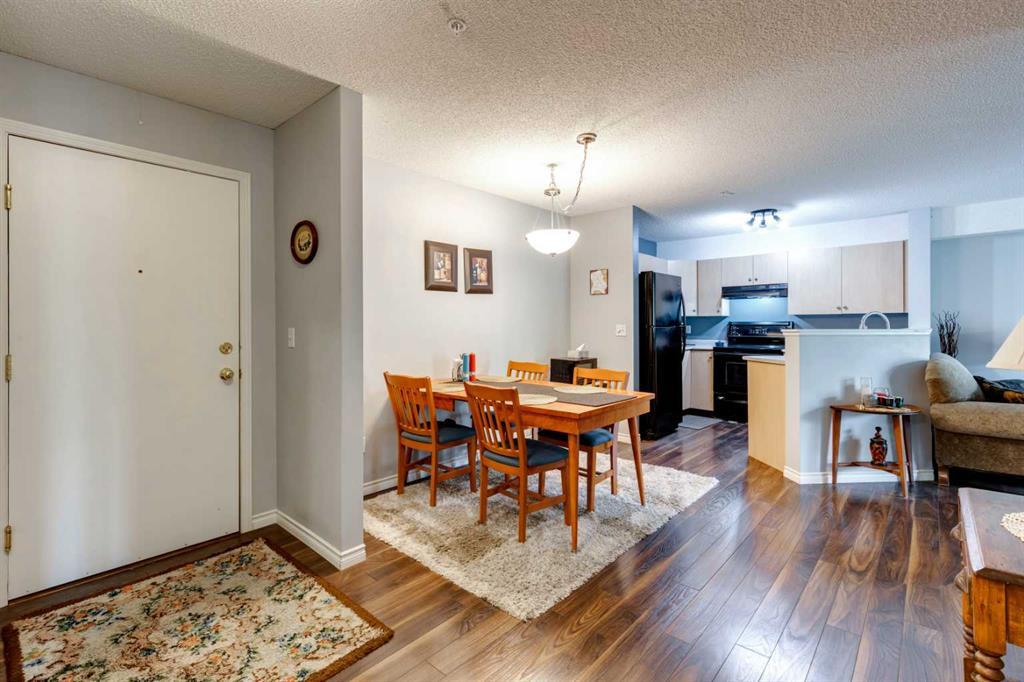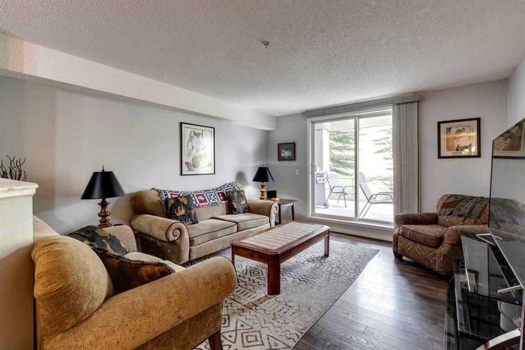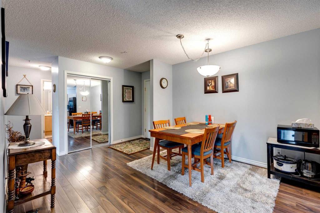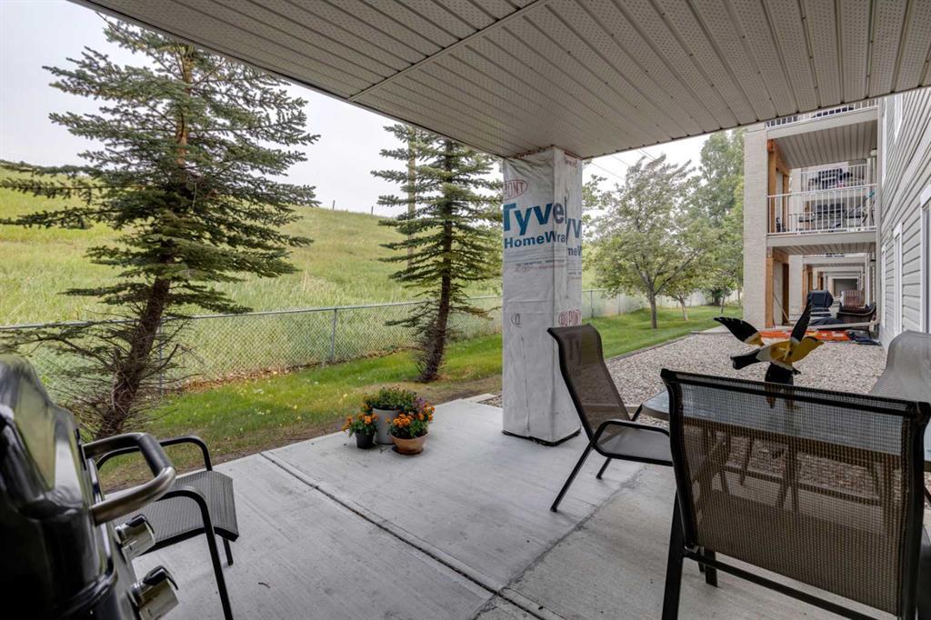 Excellent opportunity for investors or first-time home buyers! Upon entry, you will immediately notice the large open concept floorplan with laminate flooring throughout. The kitchen is equipped with loads of cabinetry, laminate countertops, and a black appliance package, leading into a separate dining area. The living room boasts large glass sliding patio doors, leading out to your private, quiet, serene, tree lined patio with no neighbours behind. The spacious master bedroom includes a large deep closet and a large window. The second bedroom is a good size, also with a large window and a deep closet. 4-piece bath includes a deep tub and full height tile surround. This great unit is located on the main floor for easy accessibility. This suite also includes one TITLED UNDERGROUND PARKING. This home is move-in ready, close to all amenities, schools & shopping. Enjoy the walking and bike paths close by in this serene and beautifully landscaped community. Visitor parking available! Don’t miss out, book your showing today! (id:22211)