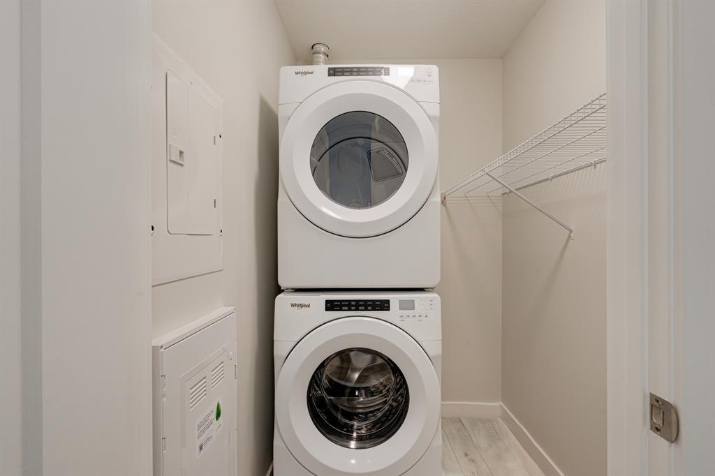 Welcome to Capella at University District! The ERI floor plan by Brookfield Residential features luxury vinyl plank floor throughout the open concept living space, full height kitchen cabinets with an oversized kitchen island, quartz countertops, beautiful gas range, window coverings and built-in desk. The main living areas provide the perfect space for entertaining with the dining area centering the living room and kitchen while the oversized patio adds over 100 sq. ft. of additional living space. The bedroom offers a peaceful space with picturesque views onto the Northwest Commons Park. The bathroom features quartz countertops, tile backsplash and a built-in floating shelf below the oversized mirror. With above and beyond sound attenuation methods, you will be able to enjoy some additional peace and quiet while soaking in the green space views. With Capella’s Built Green Gold certification, this high-efficiency home will have you enjoying monthly savings while living in luxury. University District has all the amenities an owner could desire with shopping, restaurants, banks, fitness studios and a movie theatre. (id:22211)