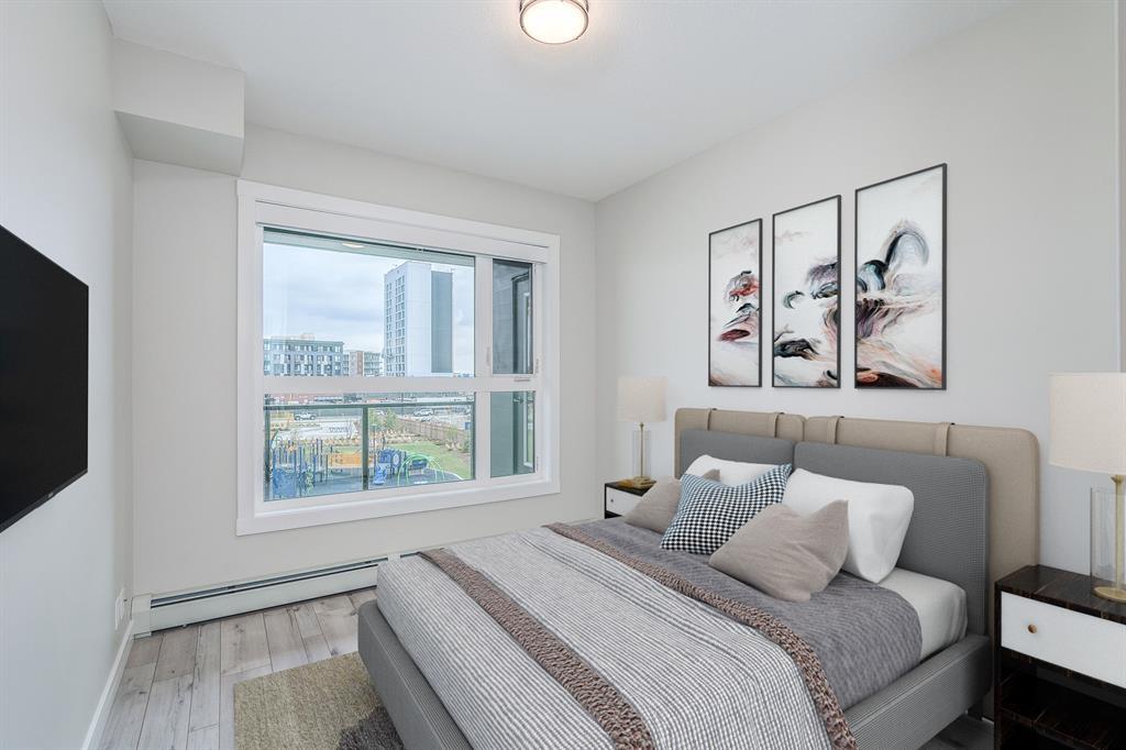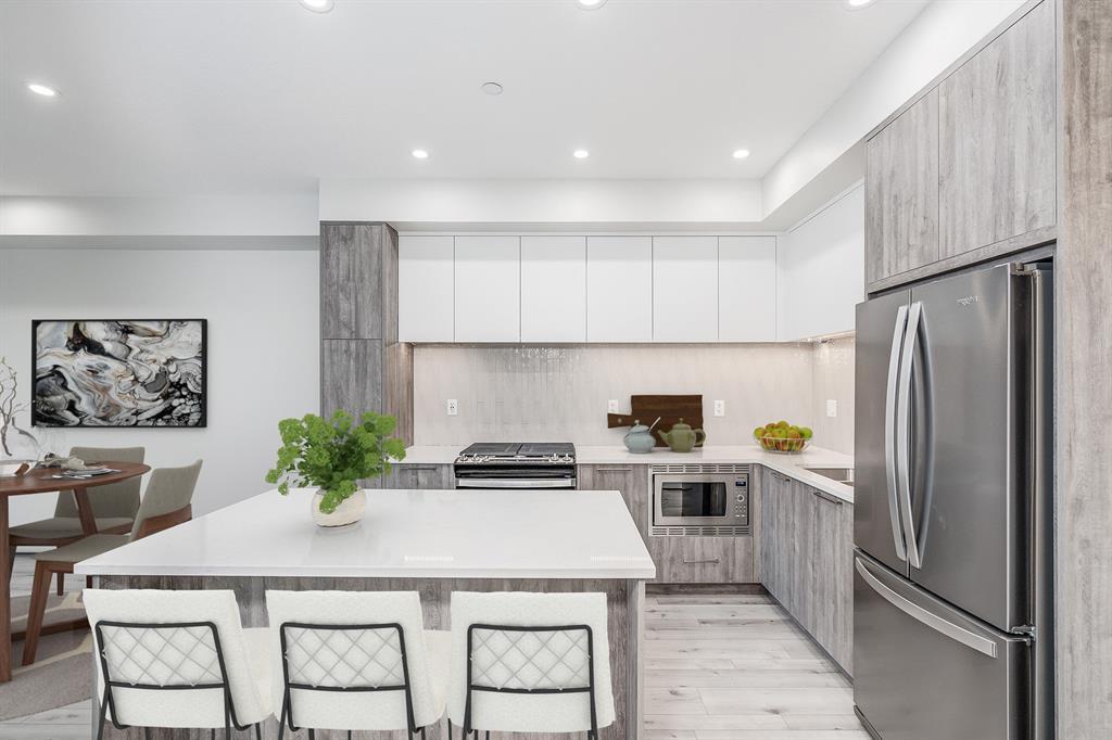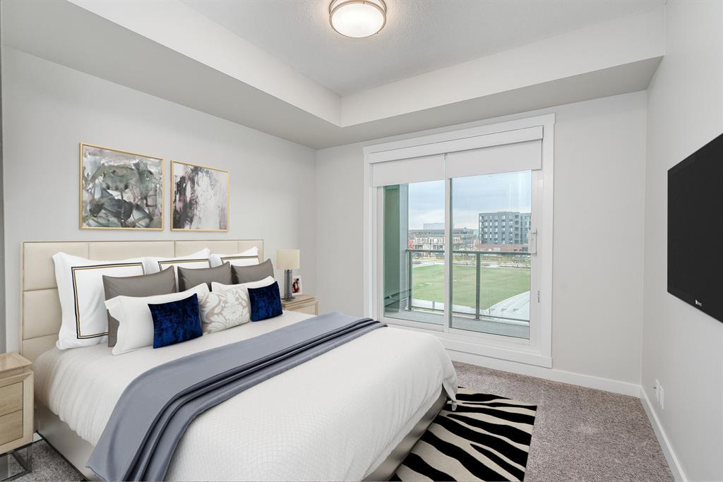 This two bedroom unit in the Capella building is in one of the most sought after buildings in the University District, with views to the east and over looks a park with a large playground, and a commercial district with plenty of amenities for your enjoyment. Capella has a Built Green Gold certification for using high-efficient materials throughout the building process. The unit has been well appointed with beautiful upgrades, 3 pc. Ensuite in the Primary bedroom and 4 pc. Bathroom for guests just outside the second bedroom. The sleek kitchen has a quartz island, gas stove and ample cabinetry and is wrapped in quartz countertops and tile backsplash. The dining and living room are open concept and lead to the very large patio (20’6” x 5’ ) with a gas hookup for those summer evening BBQ’s. This unit has a titled parking stall and assigned storage unit. Ceilings are 9 feet , Ecobee, keyless entry, whirlpool appliances, and triple pain glass and gym on the second floor. (id:22211)