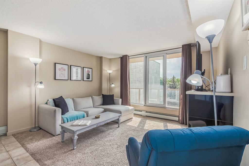 Welcome the VUE! CONCRETE building It so easy to fall in love with this wonderful home. It's a corner unit with a West facing balcony so there is plenty of natural light. Layout is everything you can imagine. The wide-open kitchen offers upgraded cabinets, granite counter tops, stainless steel appliances, and a raised island with tons of Cabinets space. Large living room with tons of windows throughout for that natural light. The suite is larger than most one-bedroom condos. 4pc bath like spa, This unit offers in-suite Laundry, Private storage room, and a Assigned Parking stall. The building itself is very clean well maintained. There is an elevator, you have 24 hours access to a good Gym, and bike storage. Amazing Inner-City location, Cross the street into Kensington, short walk or bike ride to Shops, Restaurants, River, Parks, Downtown and the Sunnyside train Station. And a short Bus/Train ride to University of Calgary. Great Location Come take a look!! (id:22211)