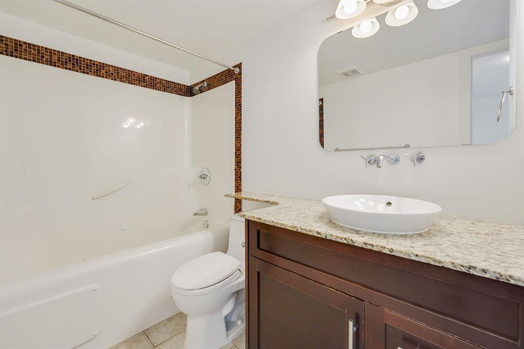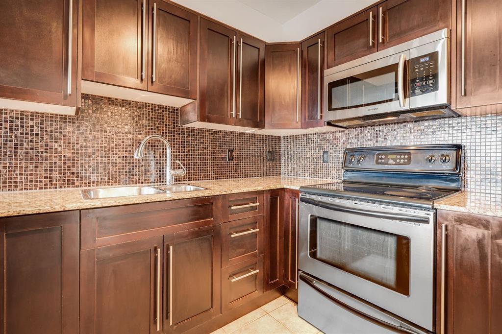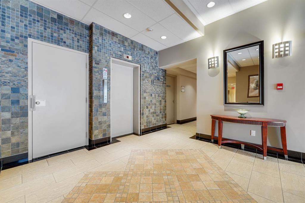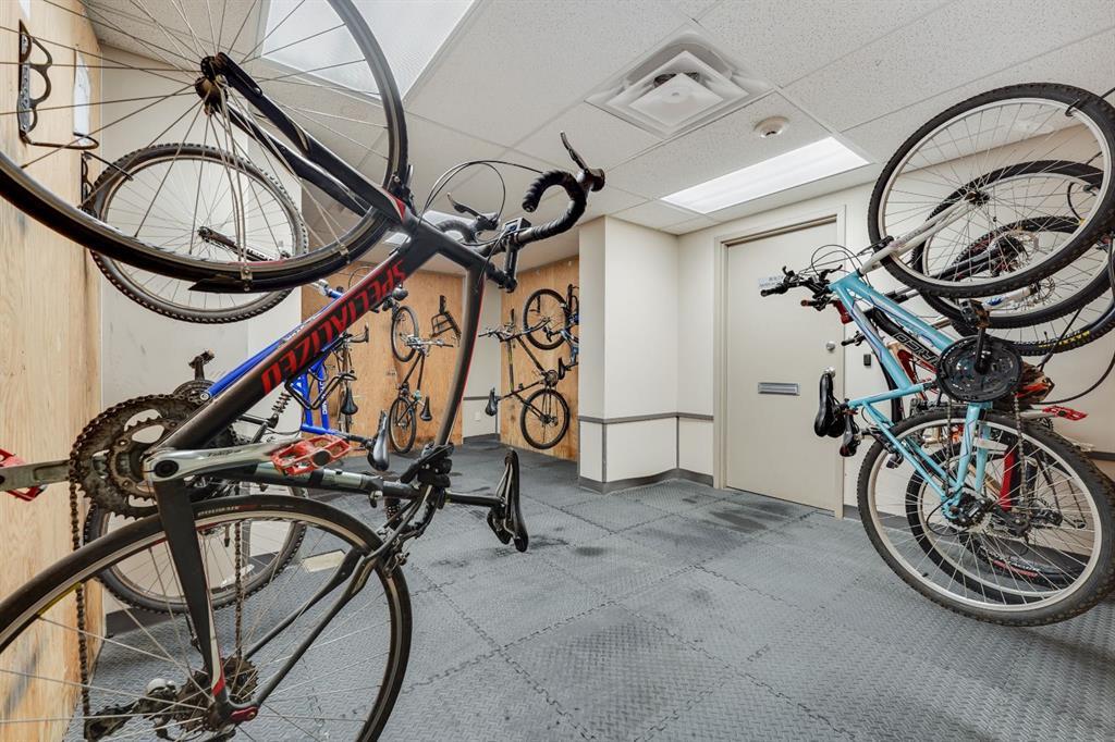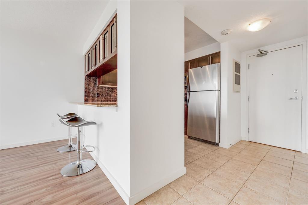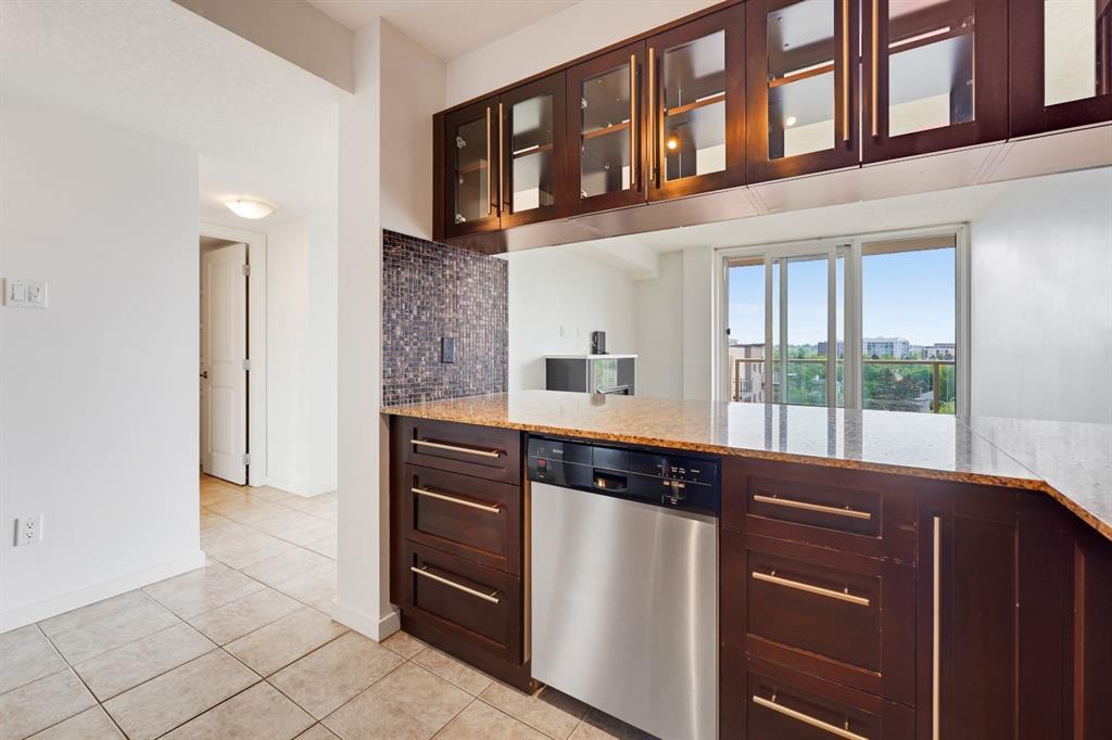 This immaculate TOP FLOOR unit showcases fantastic CITY SKYLINE VIEWS and must be seen. Very close to the downtown core in the heart of Hillhurst, and walking distance to the pubs, restaurants, and shops of Kensington. Stroll to the walking paths along the River, beautiful Riley Park and the Sunnyside LRT station and very close to SAIT! In a concrete building, this remodelled 1 bedroom condo features an amazing kitchen perfect for entertaining with eating bar, stainless steel appliances, granite countertops, mosaic tile backsplash, and darker stained cabinetry, a 5 piece bath with jetted tub, granite counters and Grohe fixtures, cozy living room with fireplace, IN-SUITE laundry, parking stall (#40) and separate private storage area (#66) . The building offers a fully equipped exercise room with newer equipment and bike storage! The very low condo fee ($315/month) includes heat and water and sewer. Experience the great location, style and convenience of this condo and the Kensington area. (id:22211)