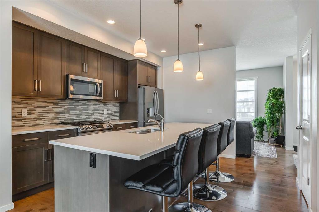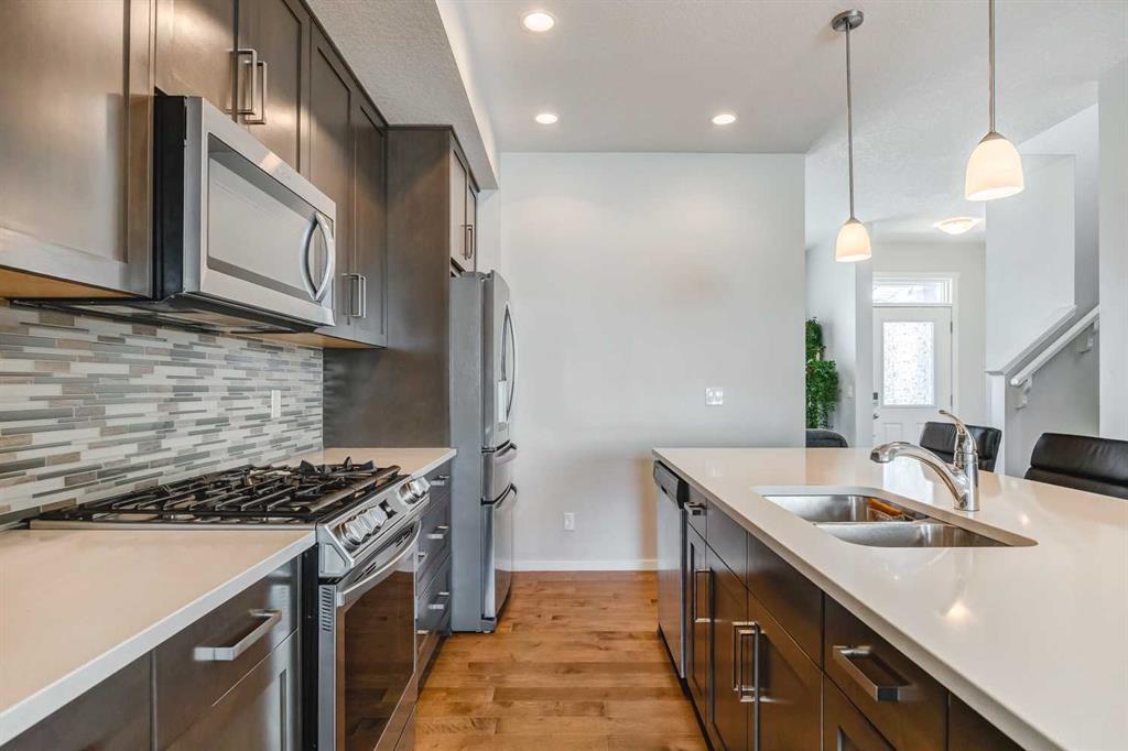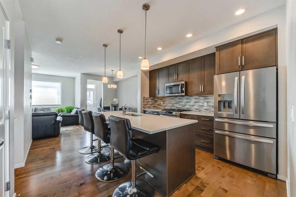 This stunning detached home is located in the desirable community of Savanna. This home is very well maintained. Built in 2017, 2 storey single family home features a beautiful upgraded kitchen with lots of cabinets, a large center island, quartz countertops, stylish backsplash, upgraded stainless steel appliances including a gas stove and water & ice fridge. Main floor also includes the living room, dining room, 2 piece guest bathroom, electric fireplace, hardwood floors, 9 foot knockdown ceilings, and a second living room/flex room at the entrance that can be used as you desire. Upstairs you'll find the spacious master bedroom that comes with an ensuite & a separate walk-in closet. There are 2 additional bedrooms, a full bathroom, and laundry room (Washer & Dryer Included) that completes this floor. Enjoy the hot summers with AIR CONDITIONING and beautiful pie-shape back yard with a deck ready to host your friends and family. Basement comes with a Separate Entrance, roughed-in bathroom that is ready for you to build your dream space. Original owners, No smoking home, No pet home, New Roof & Sidings installed in 2021, Easy access to LRT, Metis Trail, Stoney Trail, Mcknight Blvd, and Deerfoot Trail. Savanna community brings together timeless style and classic home design and is a go-to neighbourhood for home buyers searching for the perfect family home that combines style and function, or their dream home. Welcome Home! (id:22211)